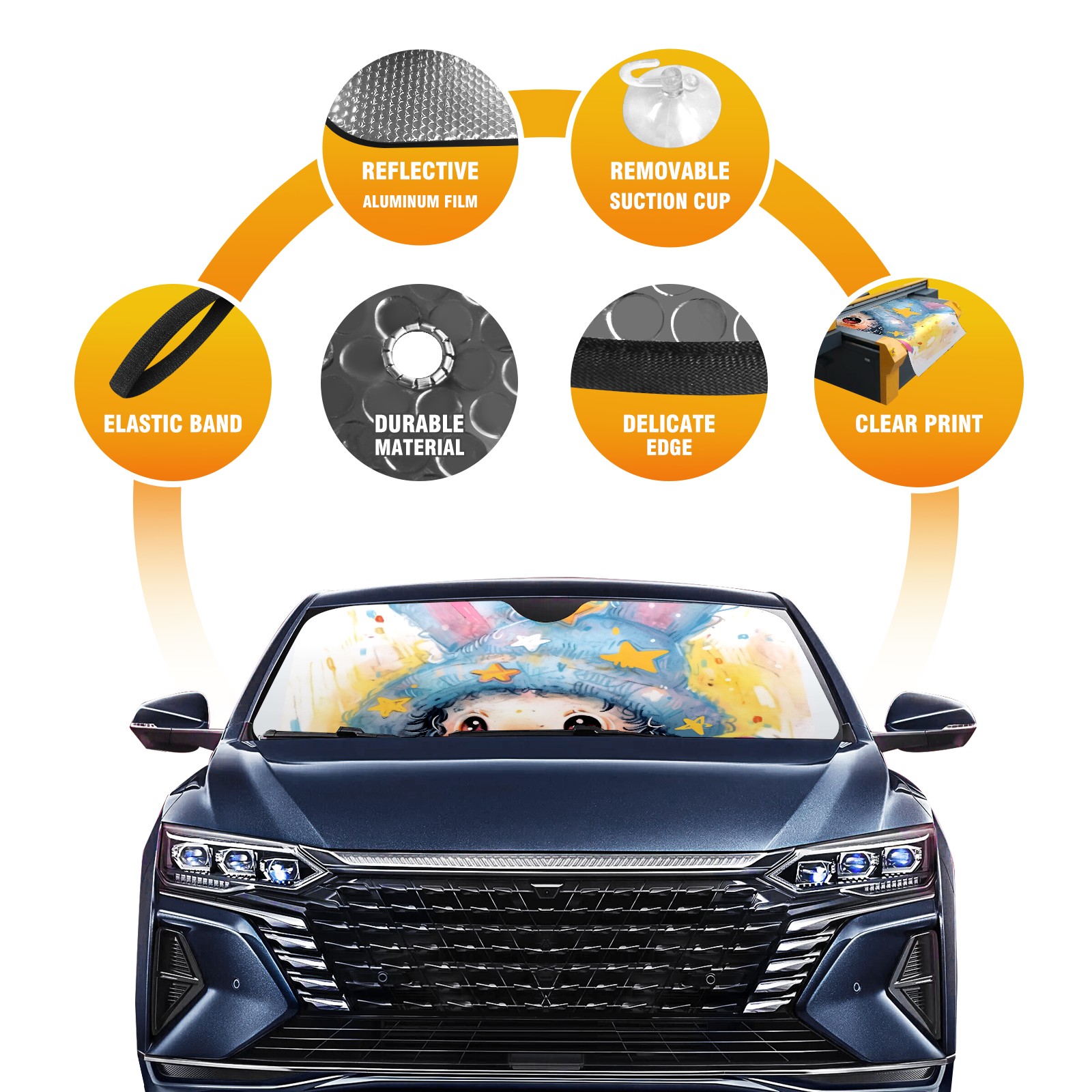Car Windshield Sun Shade For Front Window Watercolor Rabbit Foldable Vehicle Windshield Car Sun Visor Covers Automotive Window Protector Car Camping Privacy Sun Blocker