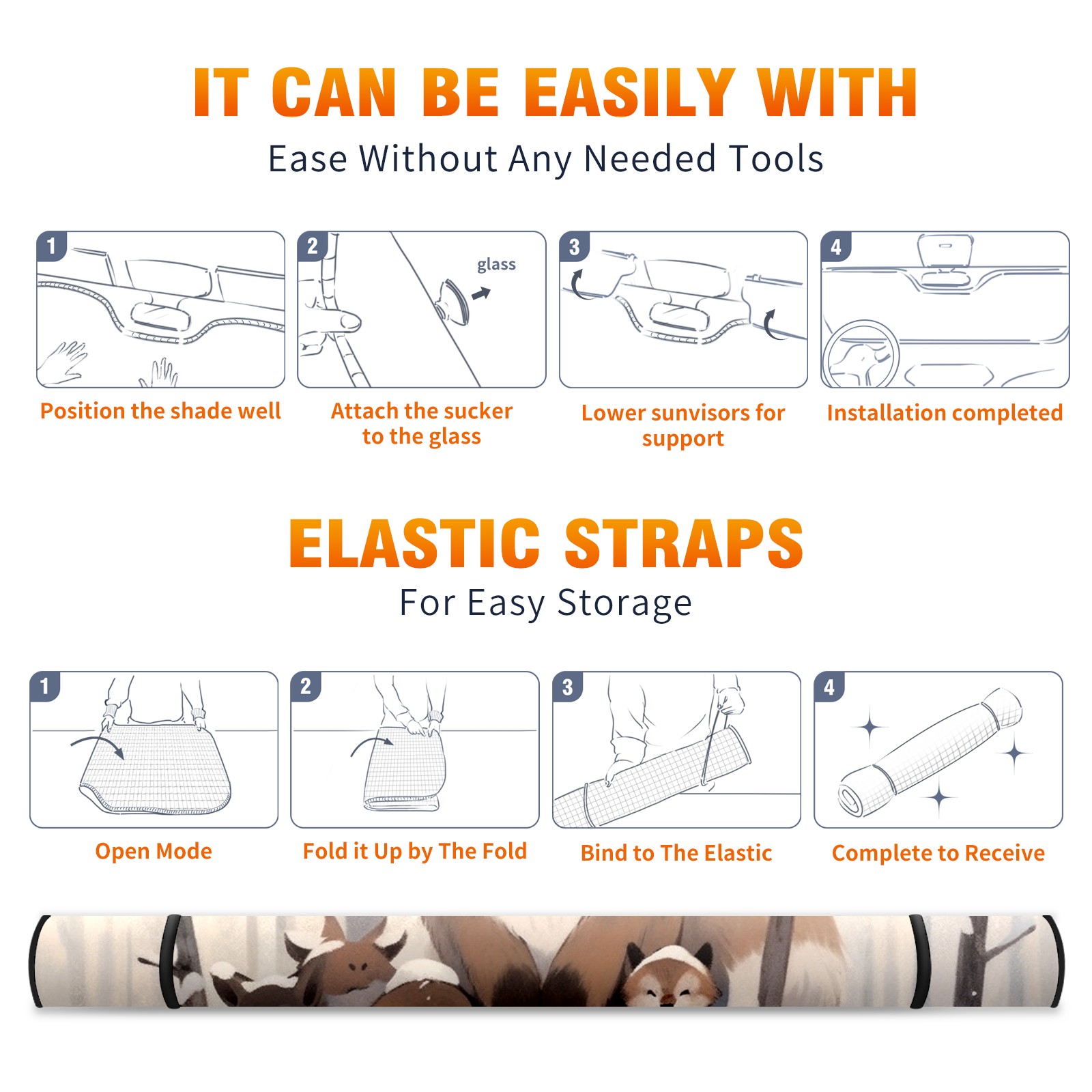 Car Windshield Sun Shade For Front Window Animals Foldable Vehicle Windshield Car Sun Visor Covers Automotive Window Protector Car Camping Privacy Sun Blocker