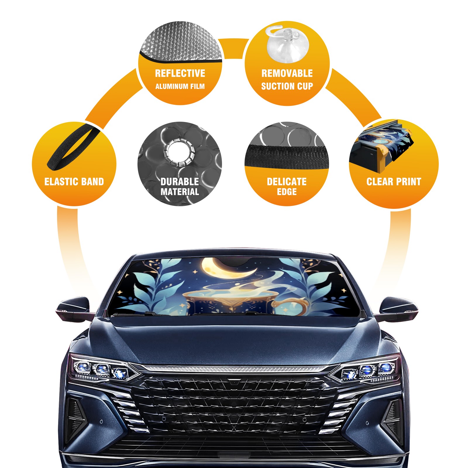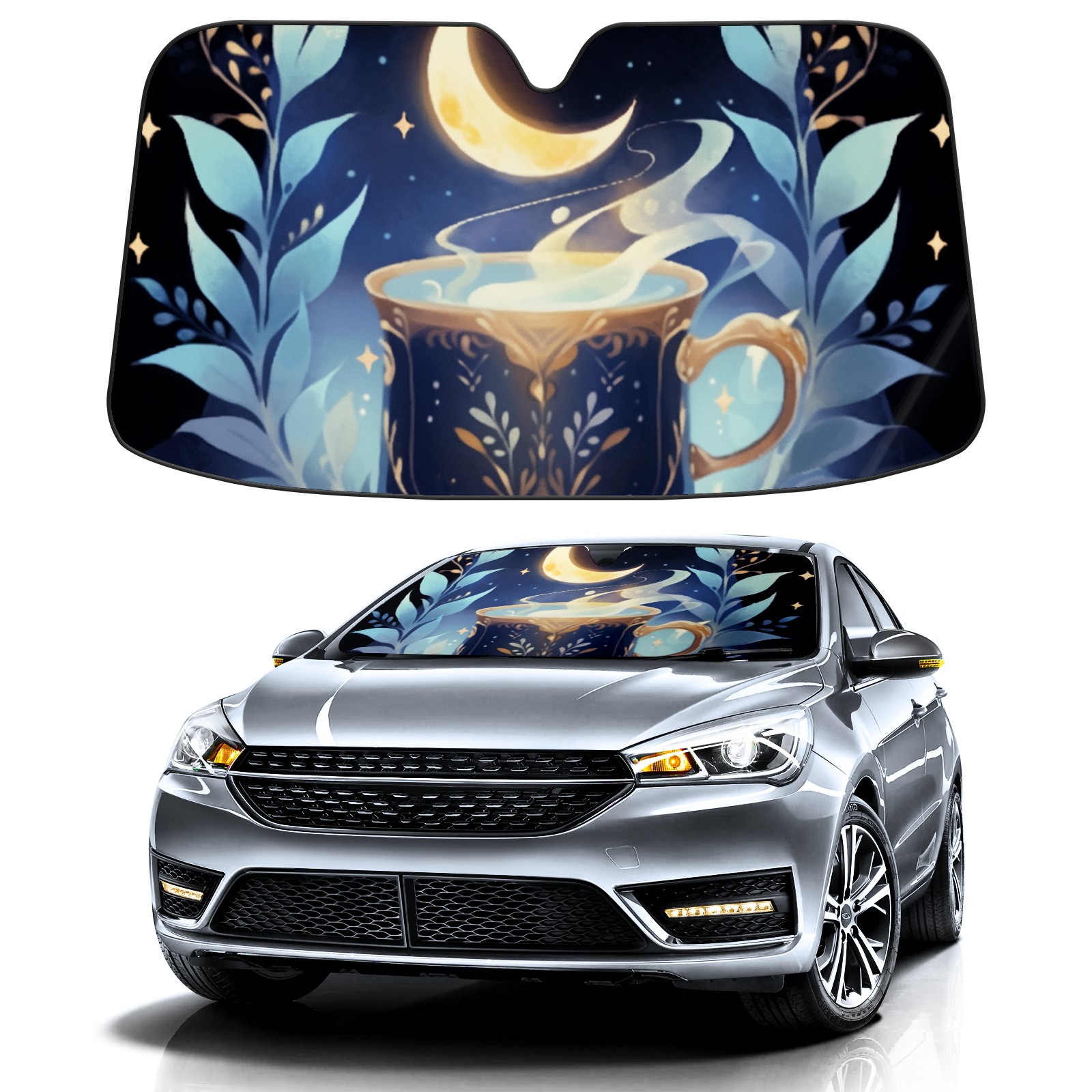Car Windshield Sun Shade For Front Window Flowers Under The Moon Foldable Vehicle Windshield Car Sun Visor Covers Automotive Window Protector Car Camping Privacy Sun Blocker
