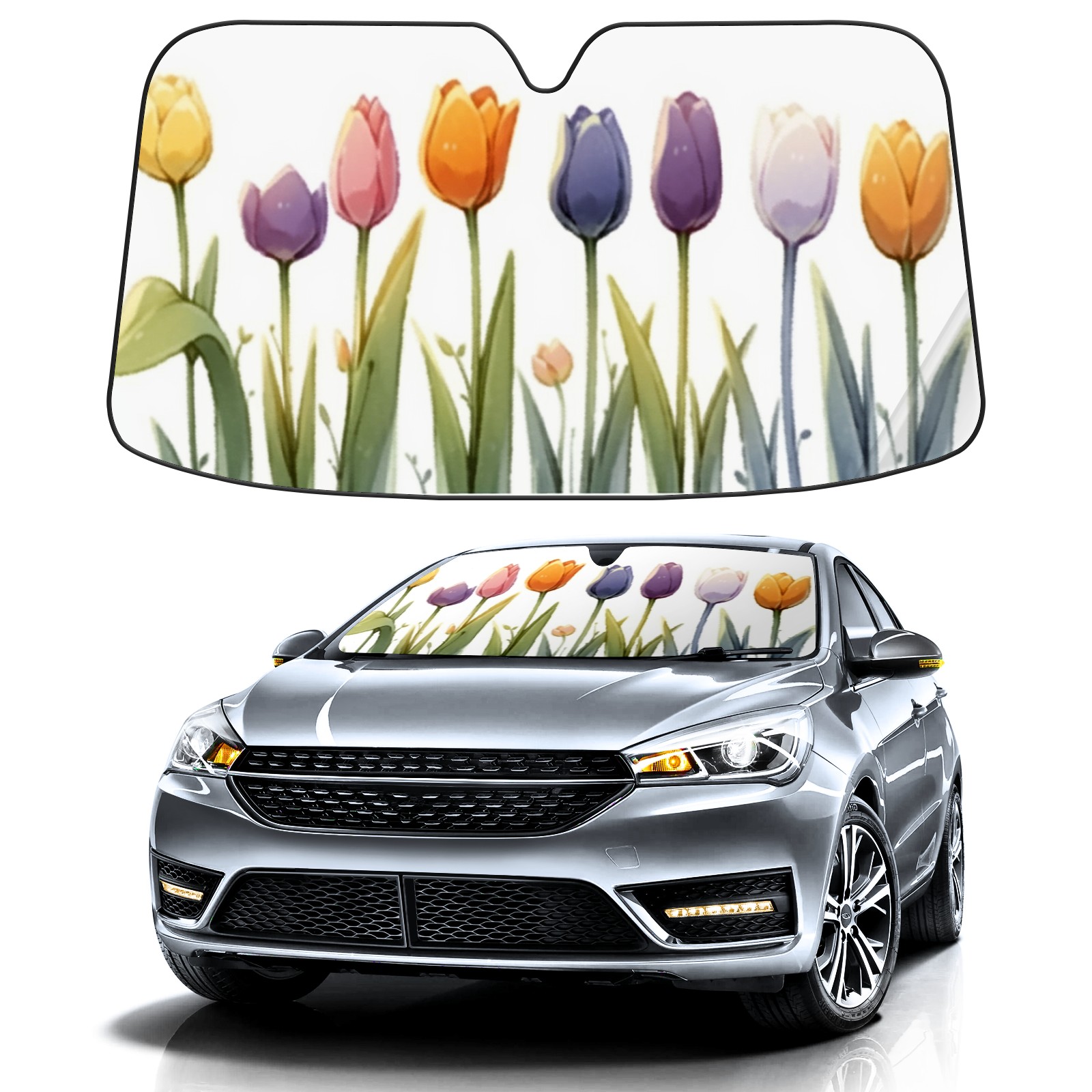 Car Windshield Sun Shade For Front Window Colorful Flower Foldable Vehicle Windshield Car Sun Visor Covers Automotive Window Protector Car Camping Privacy Sun Blocker