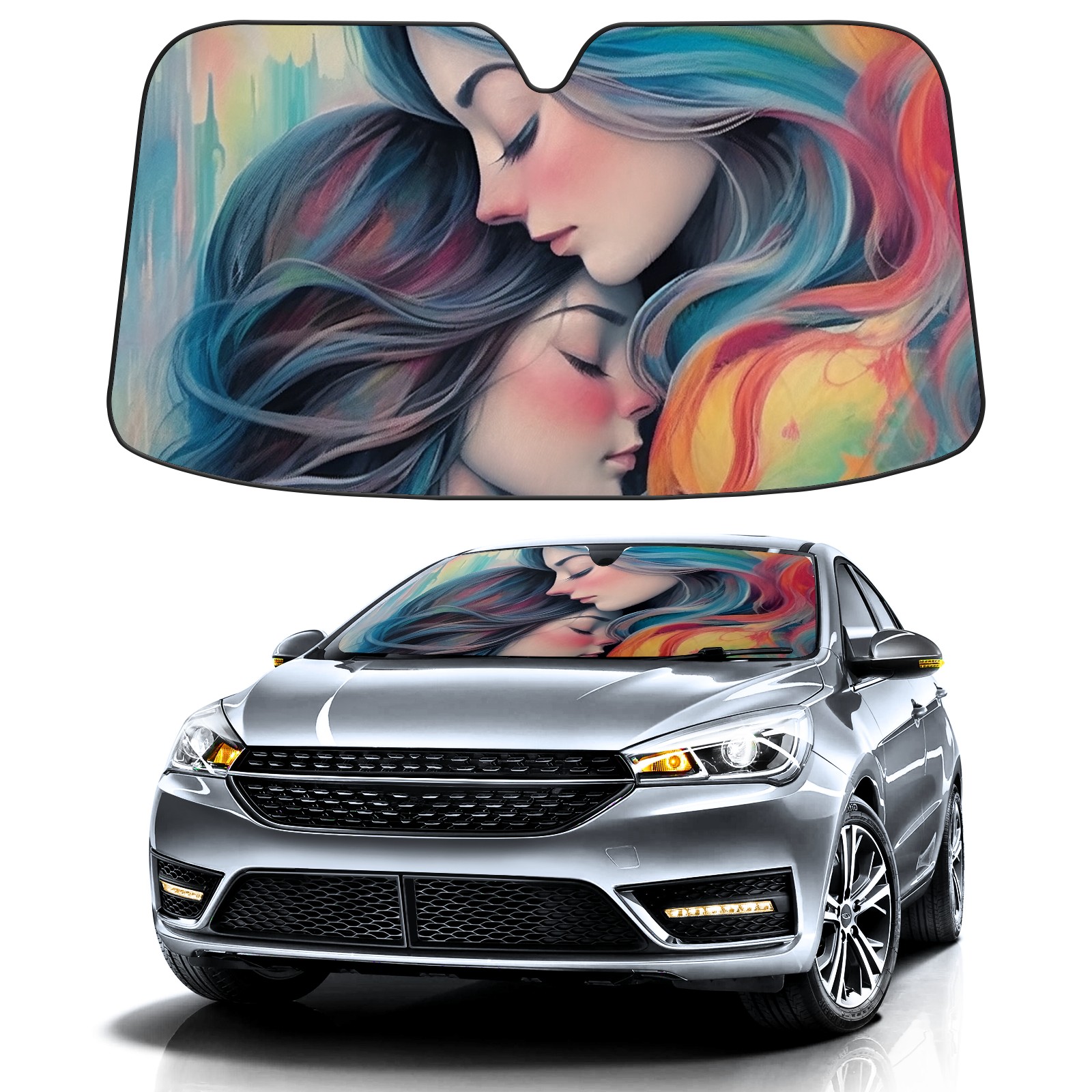 Car Windshield Sun Shade For Front Window Same Sex Girls Foldable Vehicle Windshield Car Sun Visor Covers Automotive Window Protector Car Camping Privacy Sun Blocker