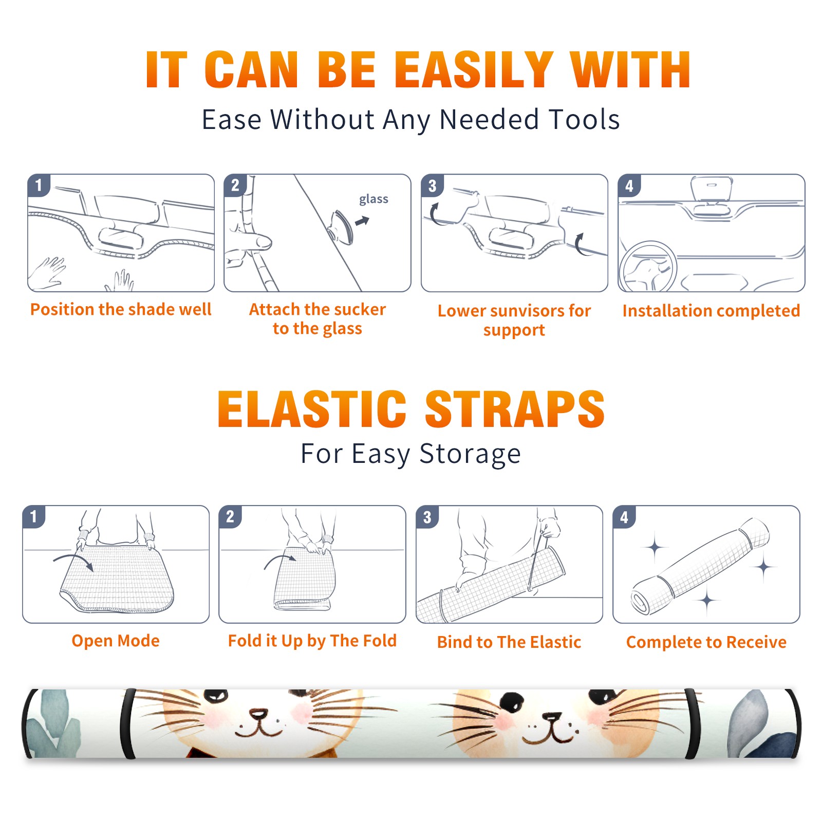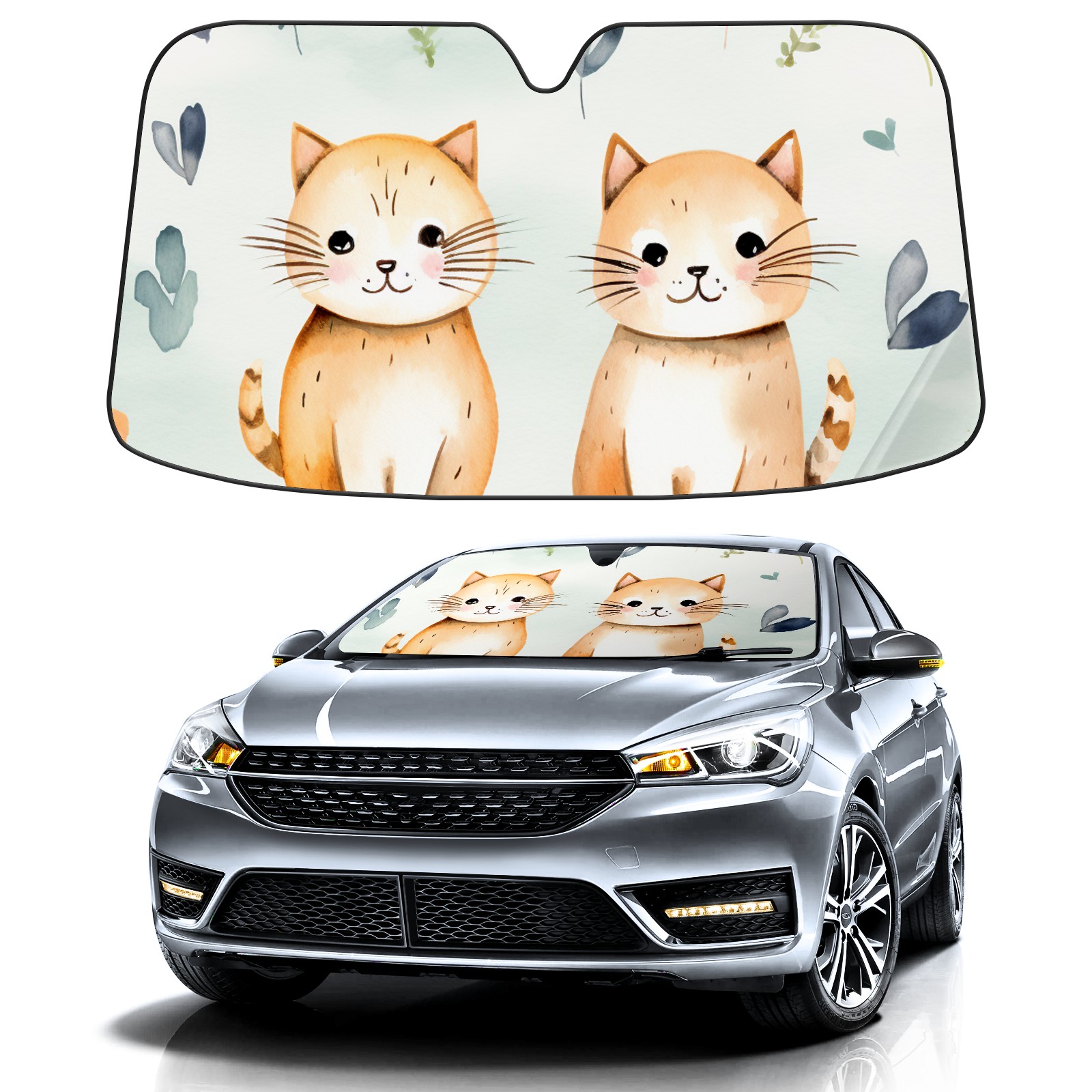 Car Windshield Sun Shade For Front Window Cute Cat Foldable Vehicle Windshield Car Sun Visor Covers Automotive Window Protector Car Camping Privacy Sun Blocker