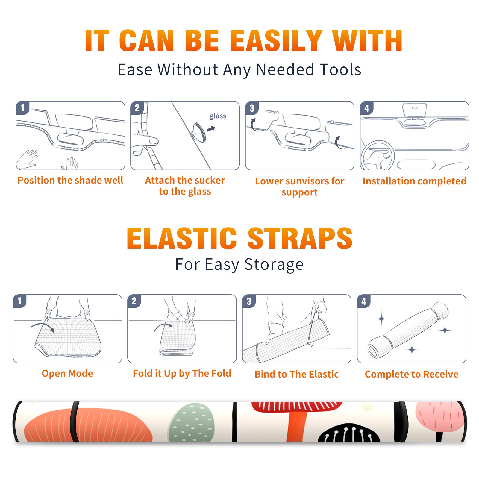 Car Windshield Sun Shade For Front Window Cute Illustration Mushroom (3) Foldable Vehicle Windshield Car Sun Visor Covers Automotive Window Protector Car Camping Privacy Sun Blocker