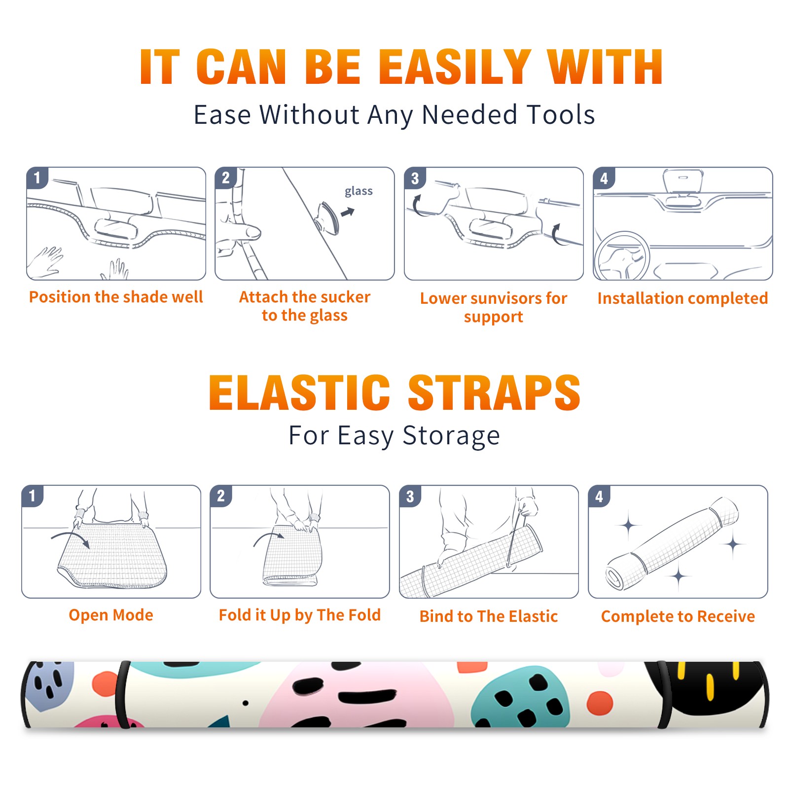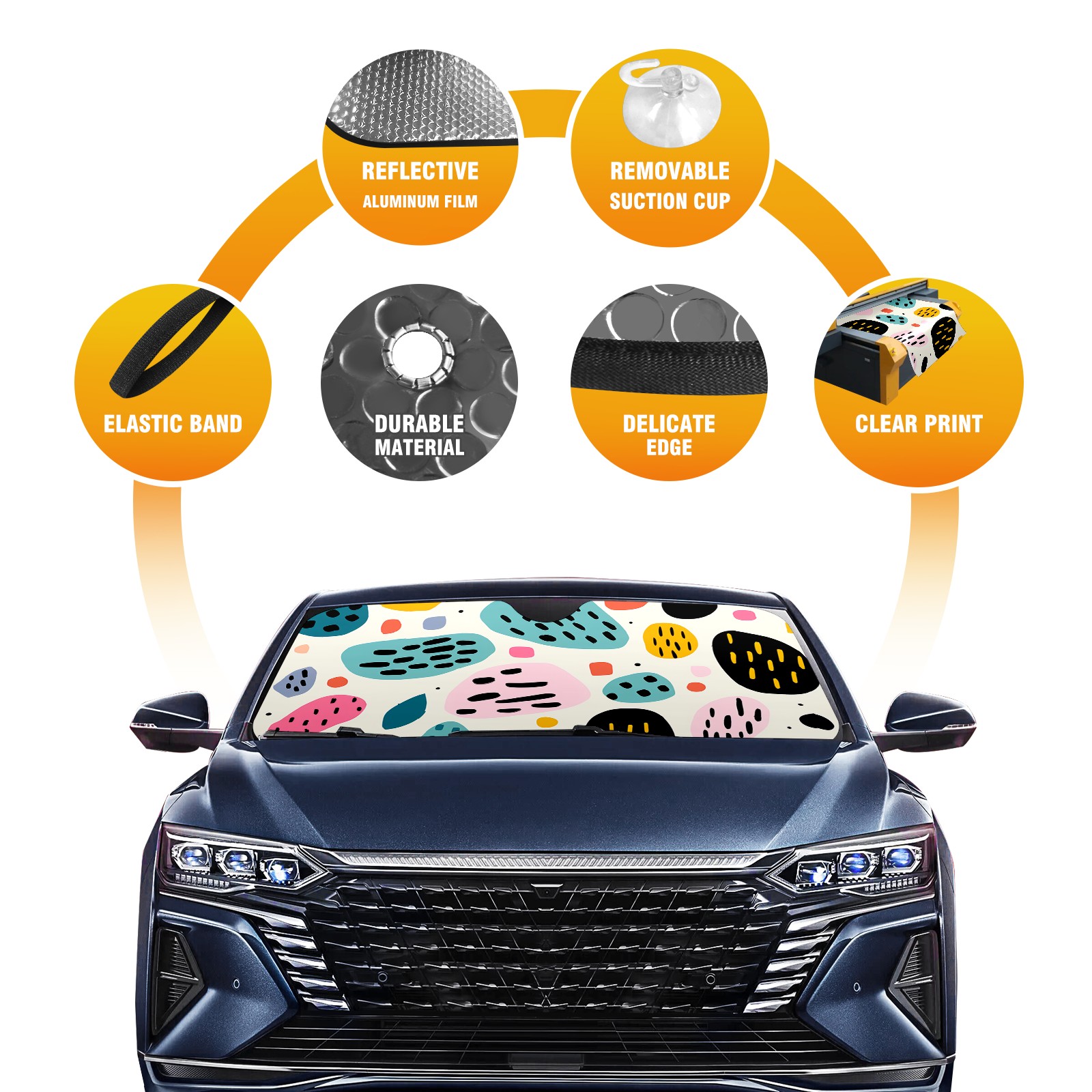 Car Windshield Sun Shade For Front Window Cute Illustration (1) Foldable Vehicle Windshield Car Sun Visor Covers Automotive Window Protector Car Camping Privacy Sun Blocker