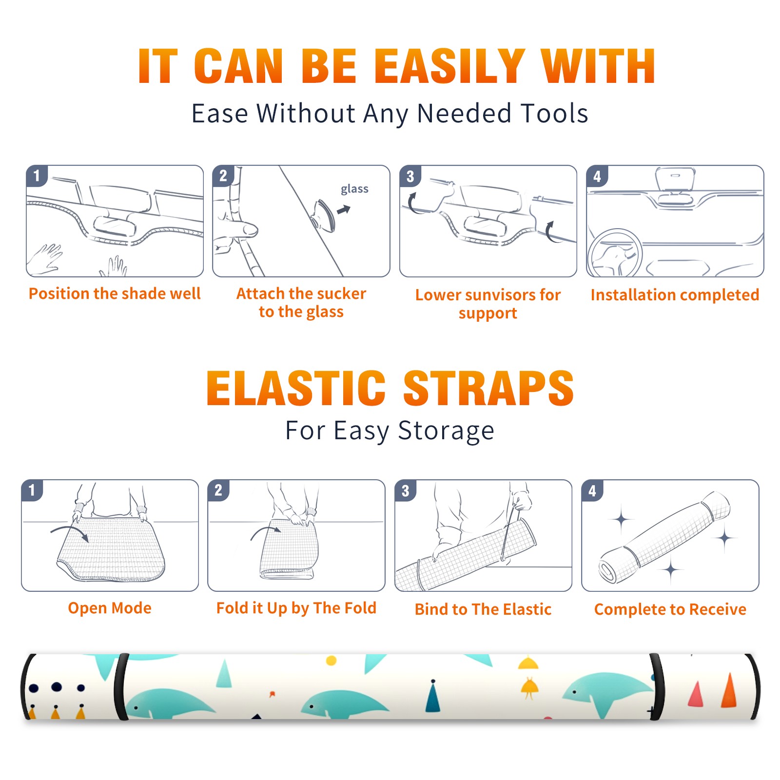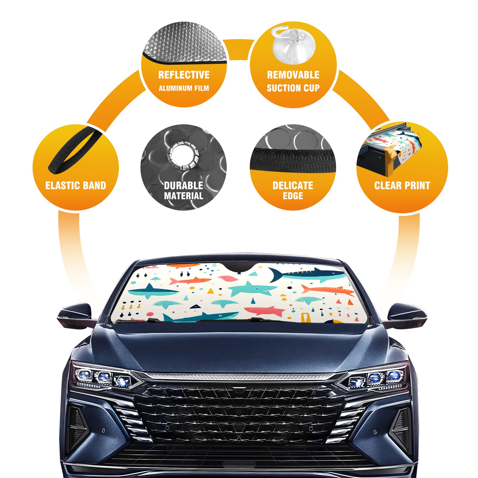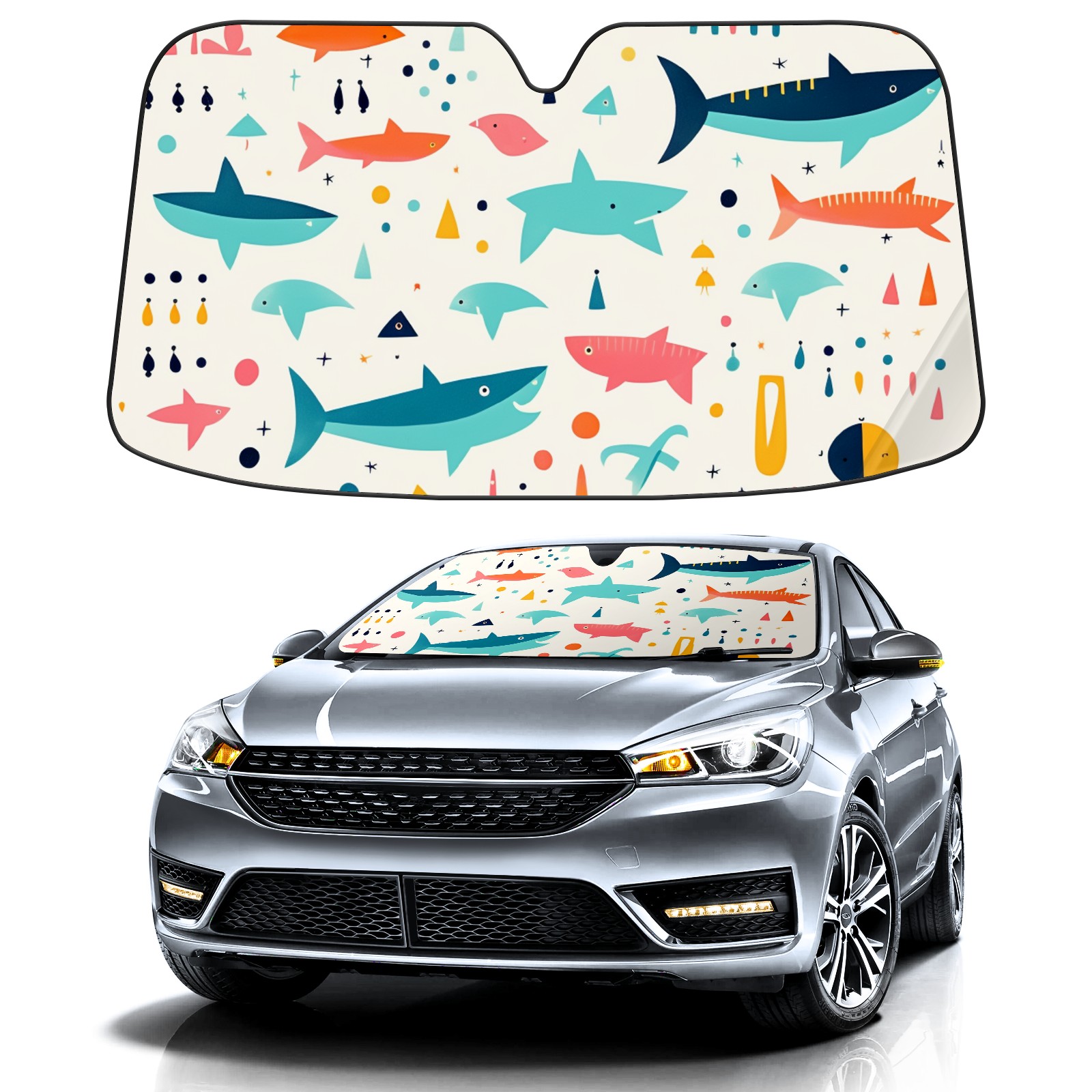 Car Windshield Sun Shade For Front Window Cute Illustration Shark (3) Foldable Vehicle Windshield Car Sun Visor Covers Automotive Window Protector Car Camping Privacy Sun Blocker
