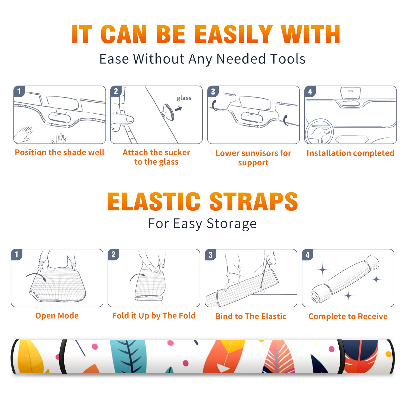 Car Windshield Sun Shade For Front Window Cute Illustration Feather (3) Foldable Vehicle Windshield Car Sun Visor Covers Automotive Window Protector Car Camping Privacy Sun Blocker