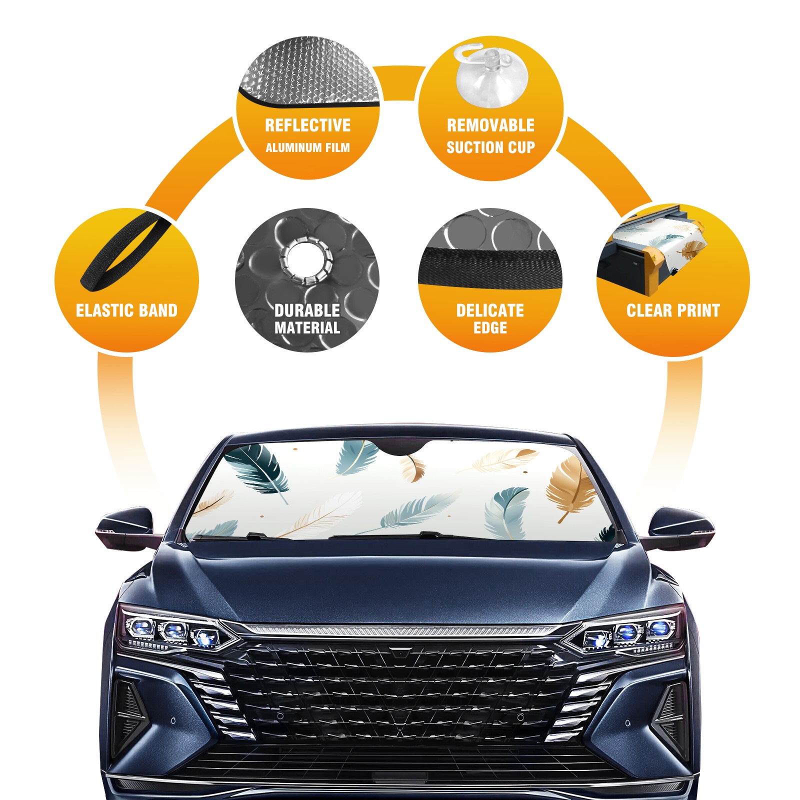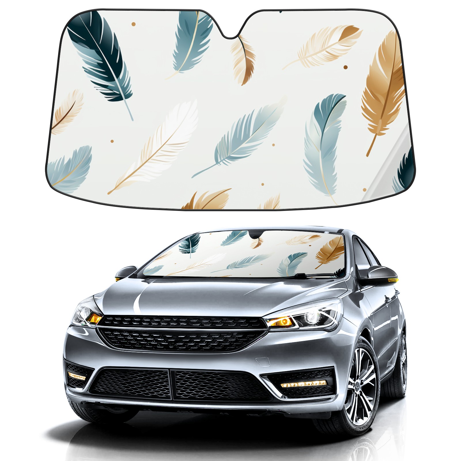 Car Windshield Sun Shade For Front Window Cute Feather (23) Foldable Vehicle Windshield Car Sun Visor Covers Automotive Window Protector Car Camping Privacy Sun Blocker