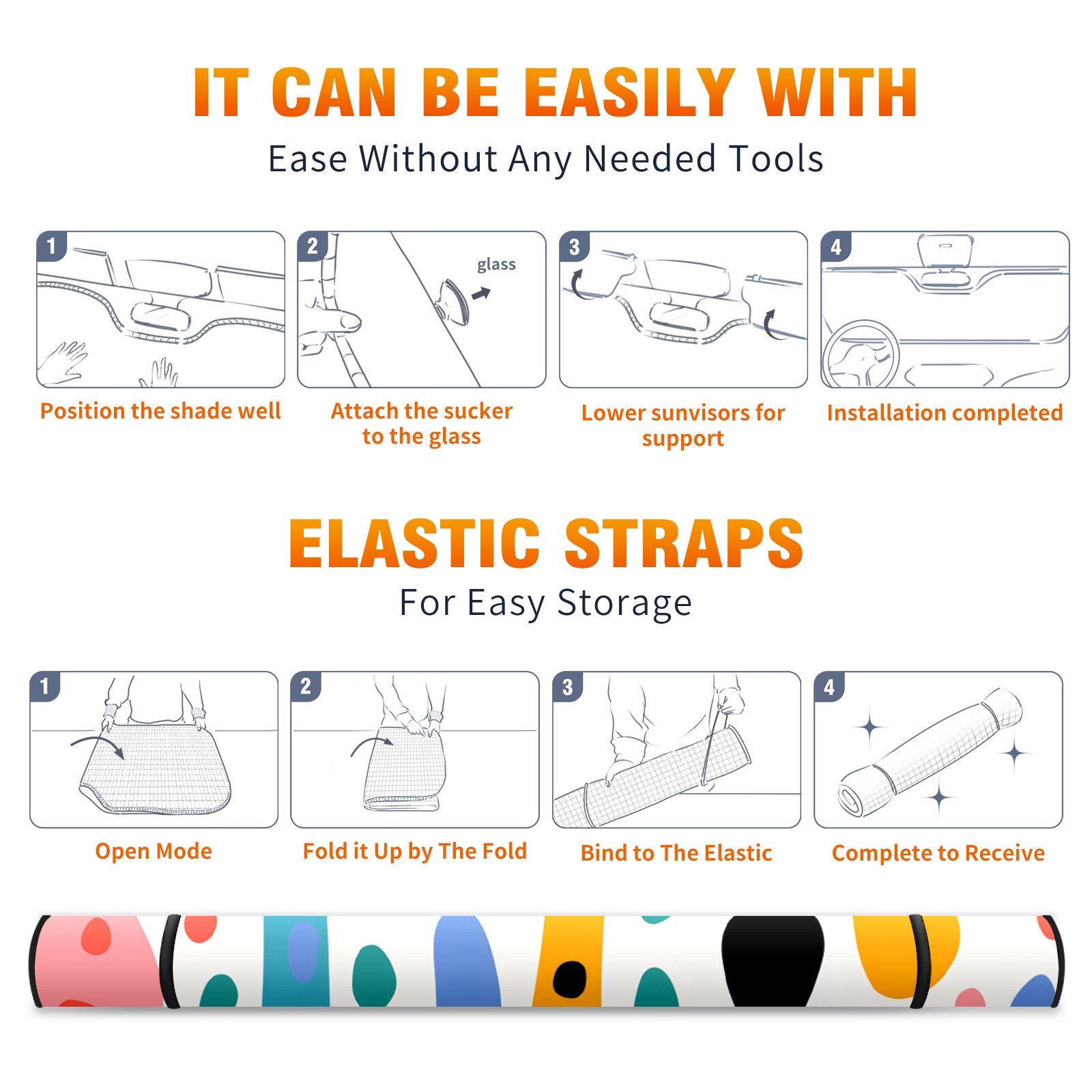 • Diameter /Size 63"L x 33.5"W Made from excellent materials which makes it sturdy and protects the car from the sun. Easy to use and pack. Makes the interior of the car cooler.You can easily stash the sunshade in the storage bag or store long term.It open and closes easy. Also the leather storage bag is durable and easy to put the umbrella back into.This windshield sunshade provides complete coverage and keeps your car interior cool under direct sun. It is easy to open and position under the windshield and around the rear-view mirror. Makes Your Car Easy To Identify, Perfect For Finding Your Car In Crowded Parking Lots And Garages.Great Choice: It Is A Great Gift For Dad, Boyfriend, Brother, Brother And Uncle, Friends, Classmates, Family And So On. Notice: Due To Difference Computer Monitors, The Color Maybe Slightly Different From Picture. As Different Measurement Methods, Measurement Data Will Float Within 2%.I Hope You Understand. If You Have Any Question About The Item Please Do Not Hesitate To Contact Us Immediately And We Will Give You A Satisfactory Reply Within 24 Hours.