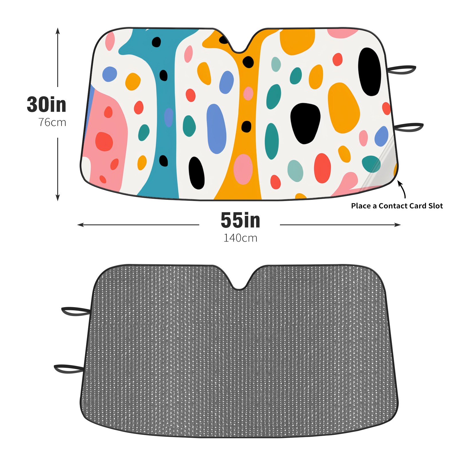 Diameter /Size 63"L x 33.5"W Made from excellent materials which makes it sturdy and protects the car from the sun. Easy to use and pack. Makes the interior of the car cooler.You can easily stash the sunshade in the storage bag or store long term.It open and closes easy. Also the leather storage bag is durable and easy to put the umbrella back into.This windshield sunshade provides complete coverage and keeps your car interior cool under direct sun. It is easy to open and position under the windshield and around the rear-view mirror. Makes Your Car Easy To Identify, Perfect For Finding Your Car In Crowded Parking Lots And Garages.Great Choice: It Is A Great Gift For Dad, Boyfriend, Brother, Brother And Uncle, Friends, Classmates, Family And So On. Notice: Due To Difference Computer Monitors, The Color Maybe Slightly Different From Picture. As Different Measurement Methods, Measurement Data Will Float Within 2%.I Hope You Understand. If You Have Any Question About The Item Please Do Not Hesitate To Contact Us Immediately And We Will Give You A Satisfactory Reply Within 24 Hours.