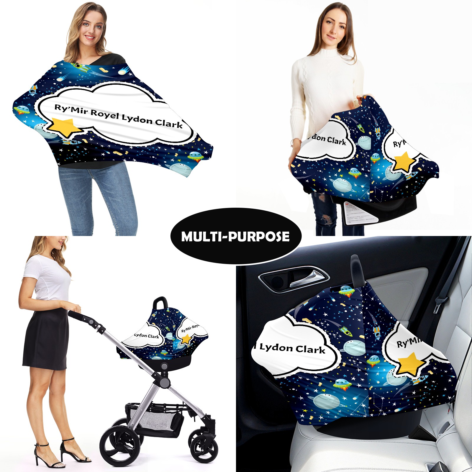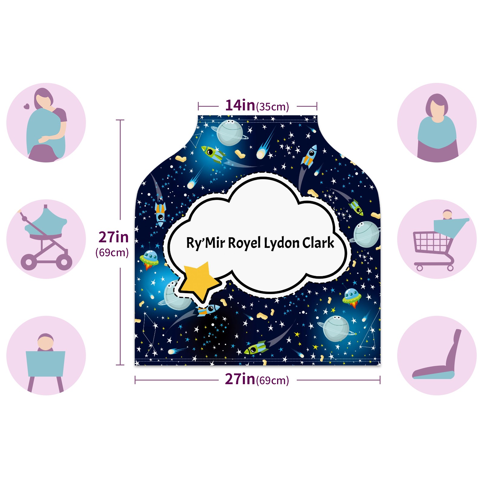 Baby Car Seat Stroller Covers Custom Name Outer Space Planet Rockets3.18 Nursing Cover Breastfeeding Scarf Soft Breathable Stretchy Coverage Carseat Canopy Cover for Boys and Girls Multi Use