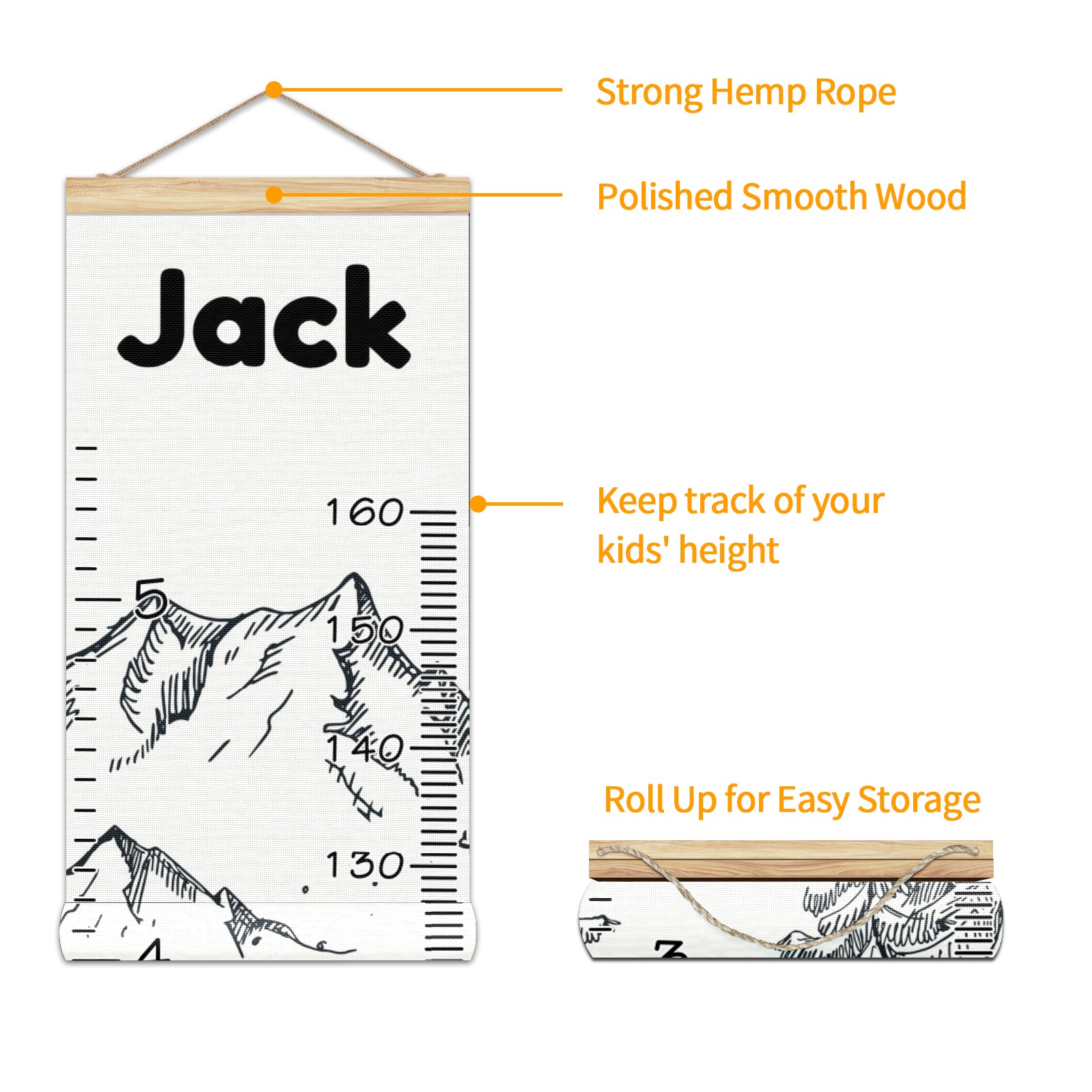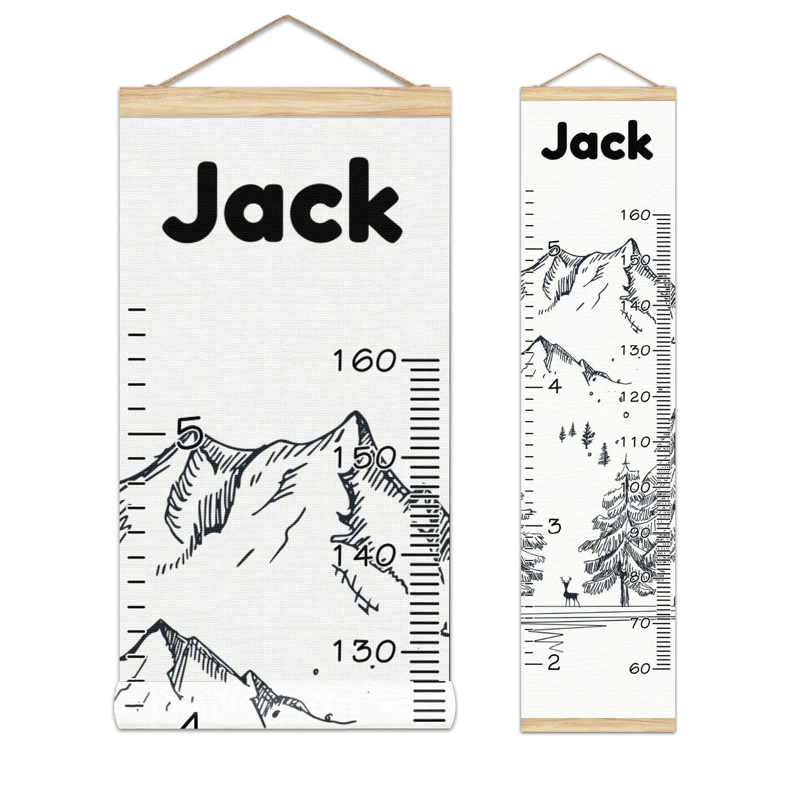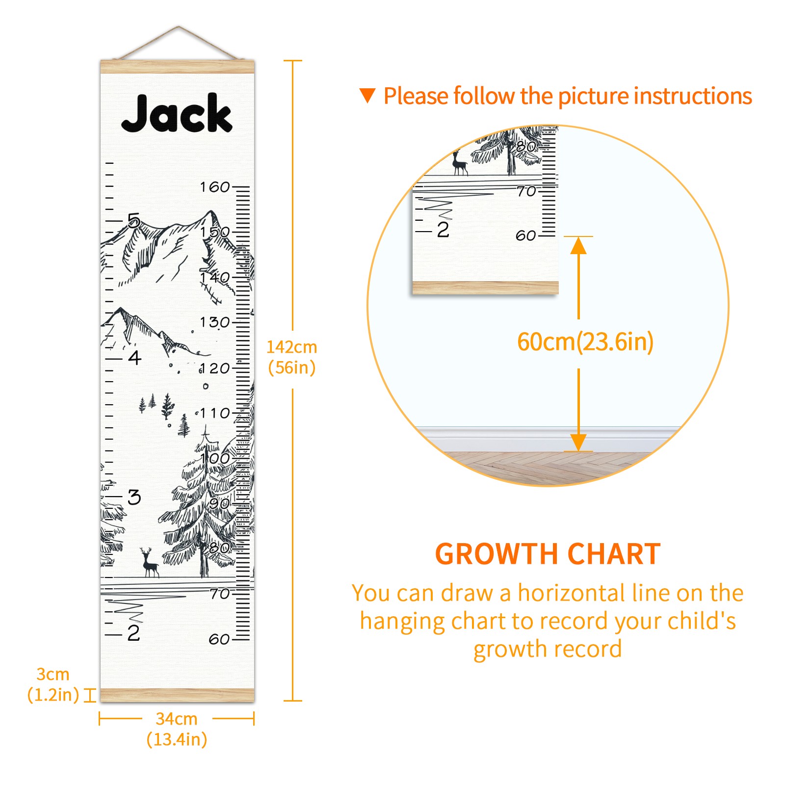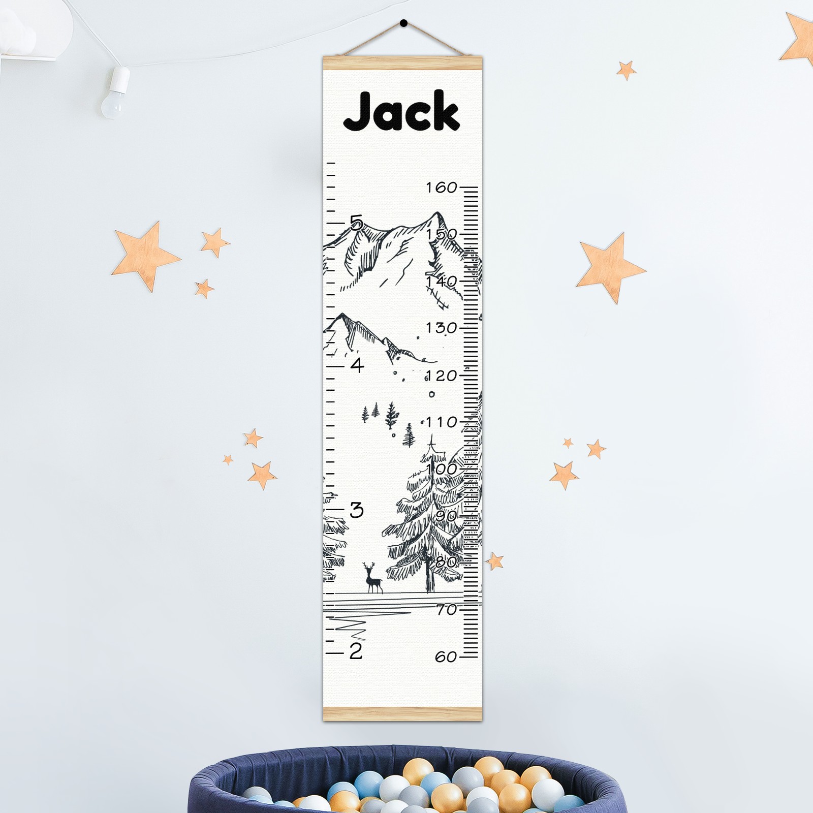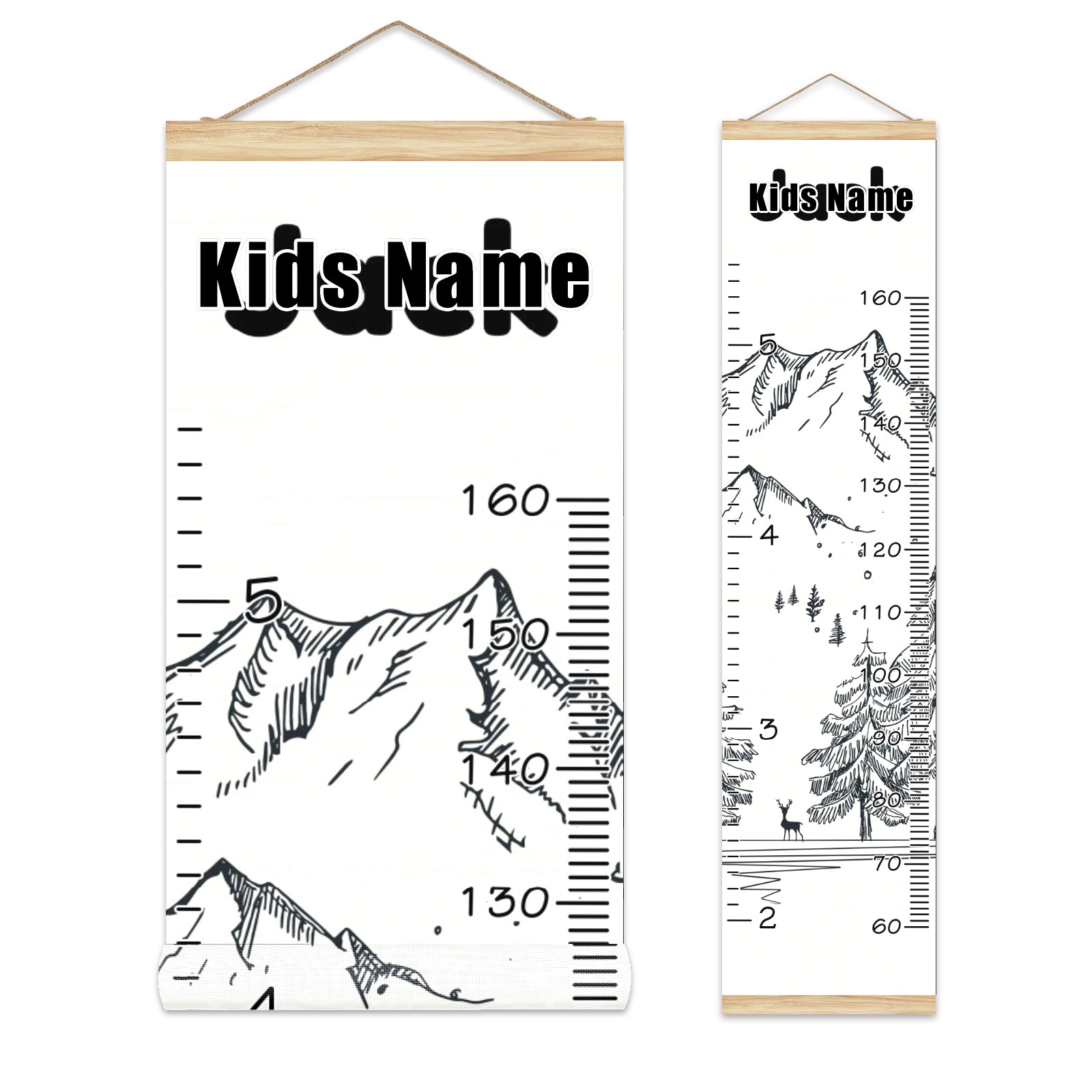 Personalized Kids Name Growth Chart Ruler for Wall Wood Frame Height Measure Chart 13.4x56 in Linen Hanging Height Growth Chart Winter Mountain3.18 Kids Room Decor