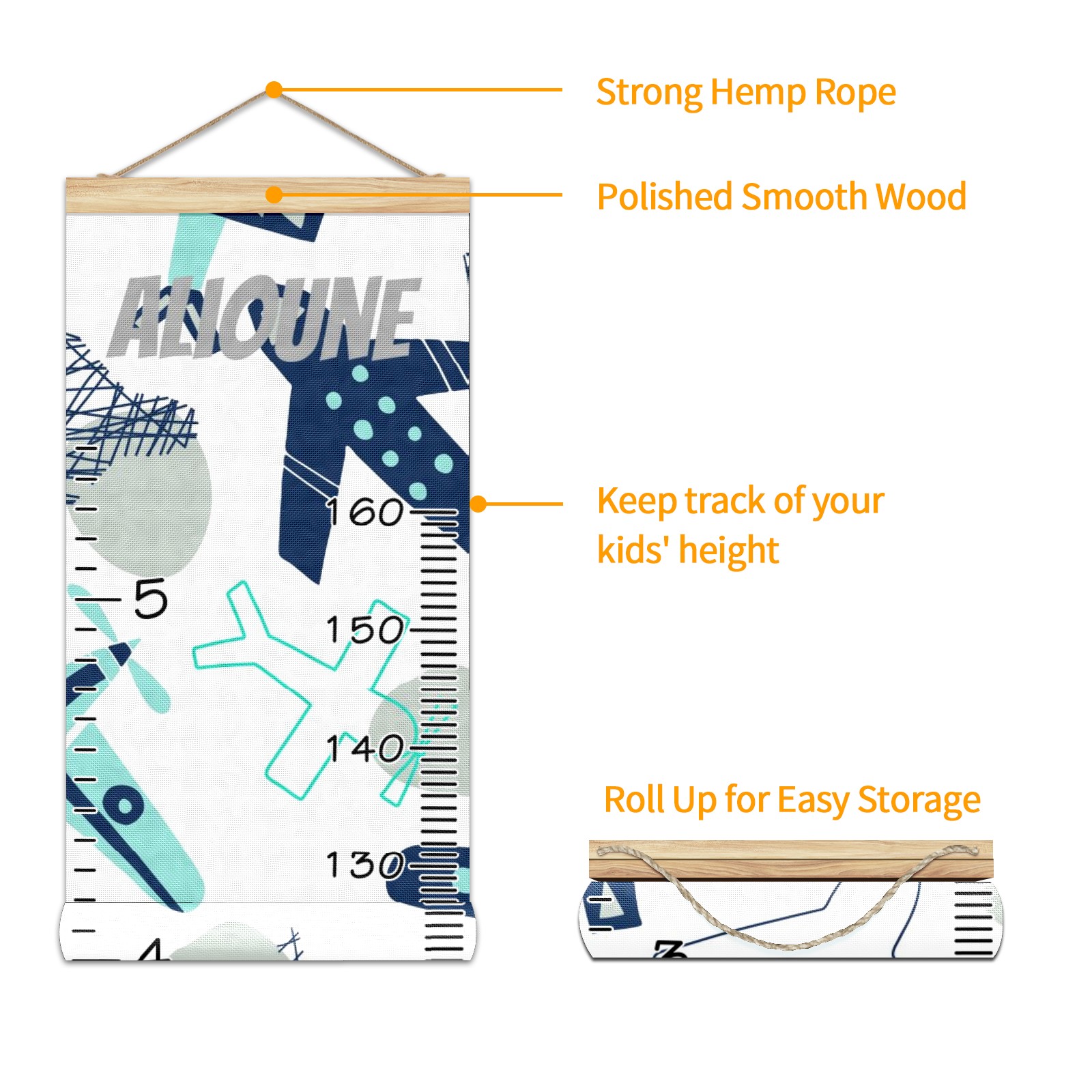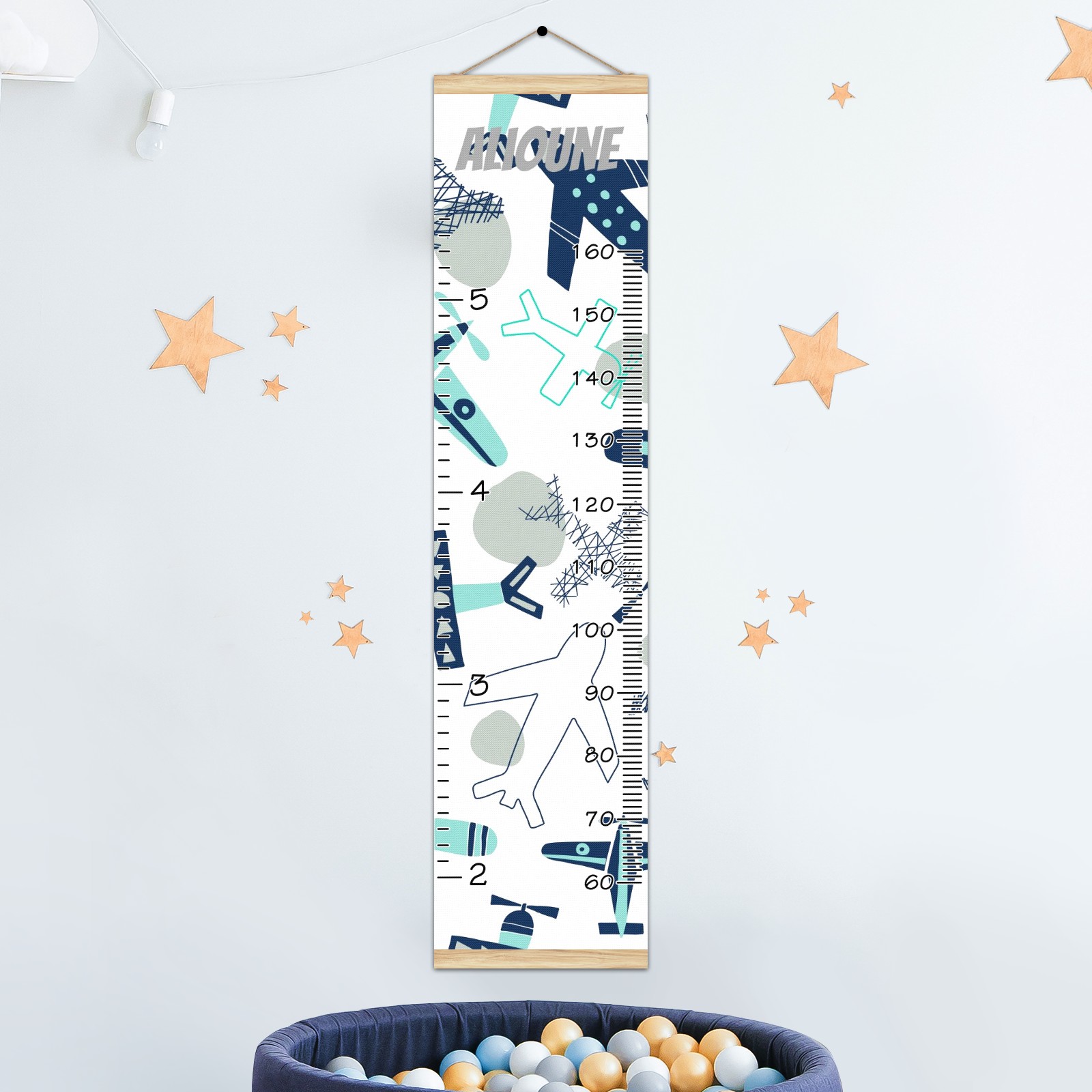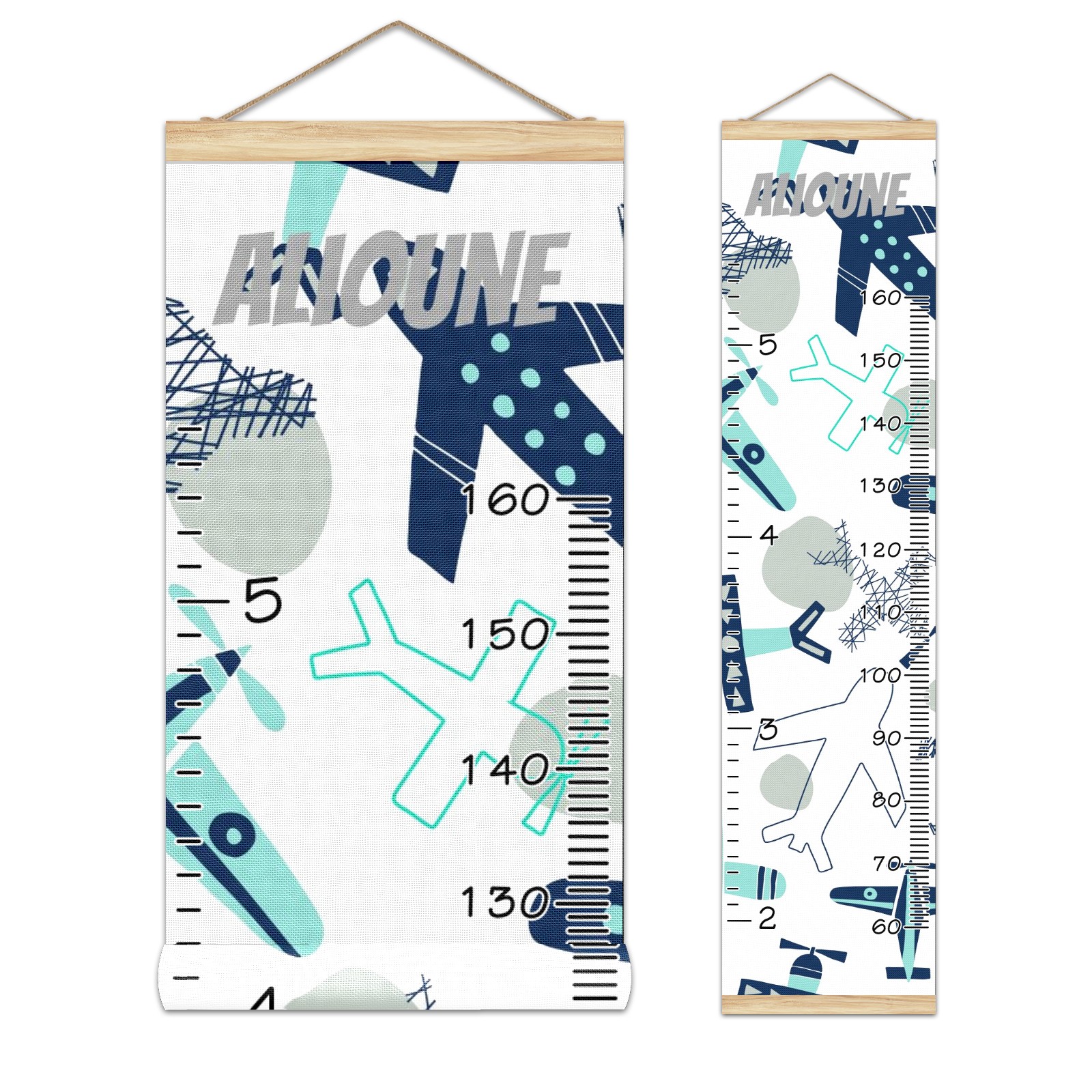 Personalized Kids Name Growth Chart Ruler for Wall Wood Frame Height Measure Chart 13.4x56 in Linen Hanging Height Growth Chart Airplane Collection3.18 Kids Room Decor