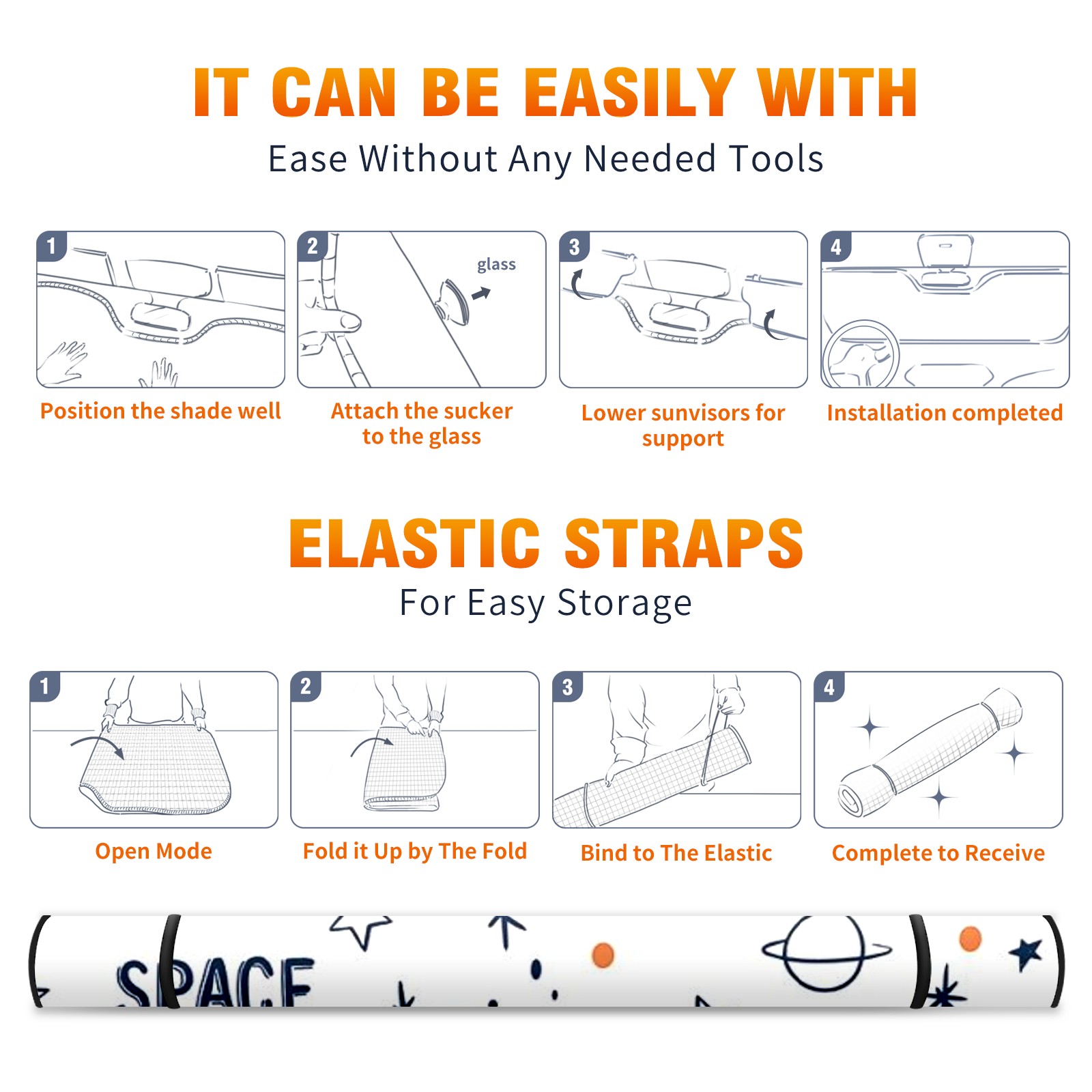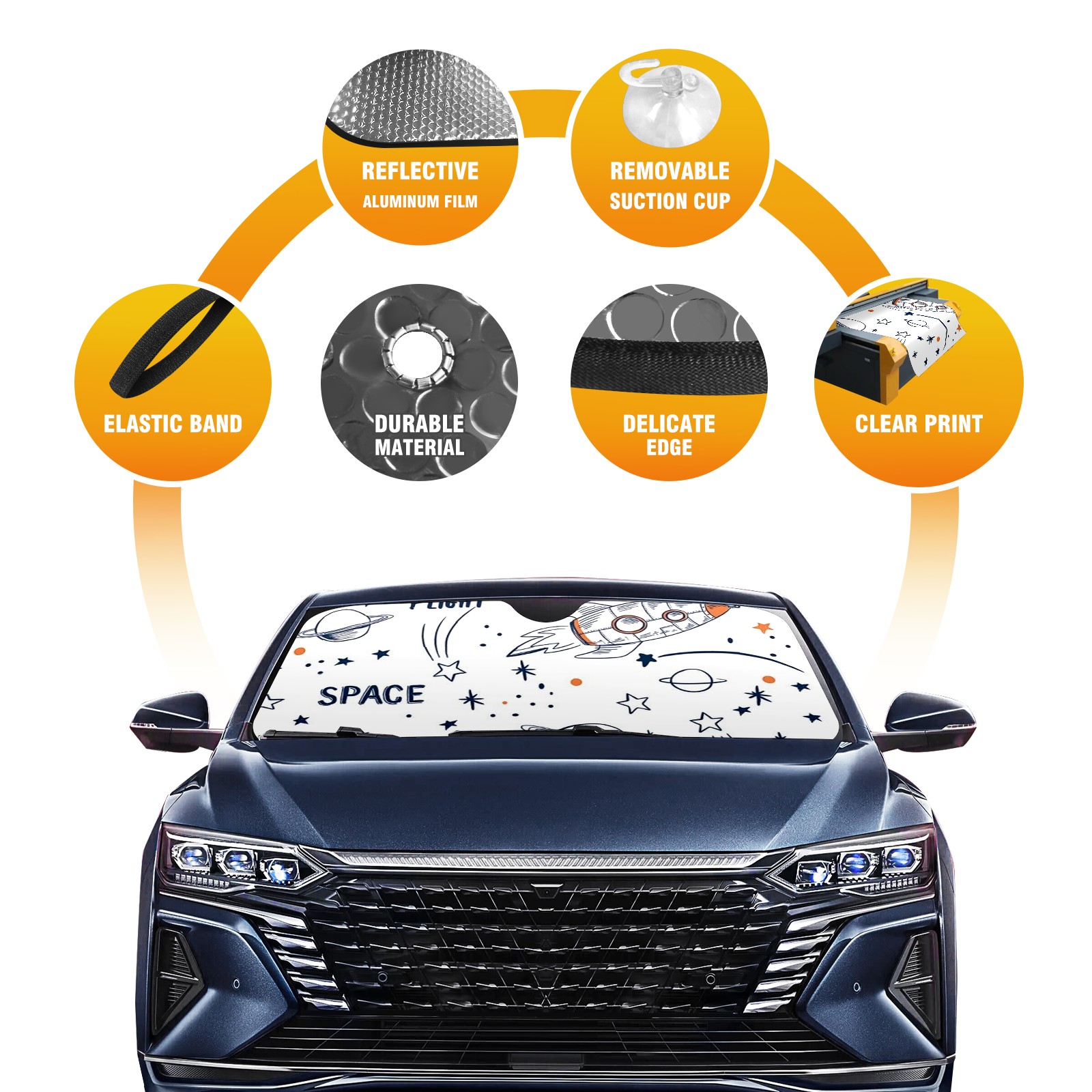 Car Windshield Sun Shade For Front Window Outer Space Foldable Vehicle Windshield Car Sun Visor Covers Automotive Window Protector Car Camping Privacy Sun Blocker