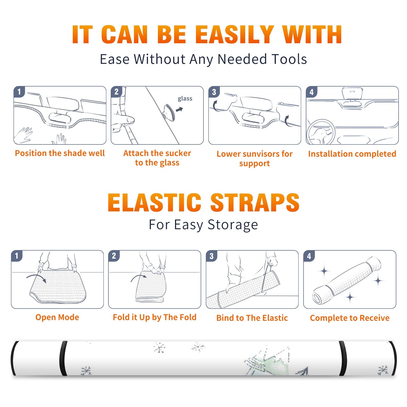 • Diameter /Size 63"L x 33.5"W Made from excellent materials which makes it sturdy and protects the car from the sun. Easy to use and pack. Makes the interior of the car cooler.You can easily stash the sunshade in the storage bag or store long term.It open and closes easy. Also the leather storage bag is durable and easy to put the umbrella back into.This windshield sunshade provides complete coverage and keeps your car interior cool under direct sun. It is easy to open and position under the windshield and around the rear-view mirror. Makes Your Car Easy To Identify, Perfect For Finding Your Car In Crowded Parking Lots And Garages.Great Choice: It Is A Great Gift For Dad, Boyfriend, Brother, Brother And Uncle, Friends, Classmates, Family And So On. Notice: Due To Difference Computer Monitors, The Color Maybe Slightly Different From Picture. As Different Measurement Methods, Measurement Data Will Float Within 2%.I Hope You Understand. If You Have Any Question About The Item Please Do Not Hesitate To Contact Us Immediately And We Will Give You A Satisfactory Reply Within 24 Hours.