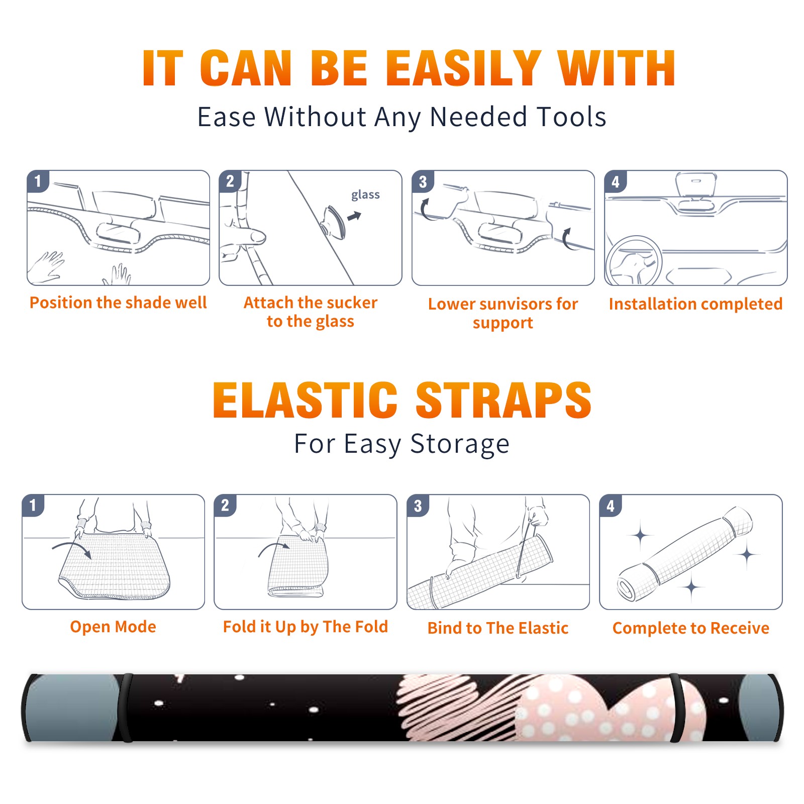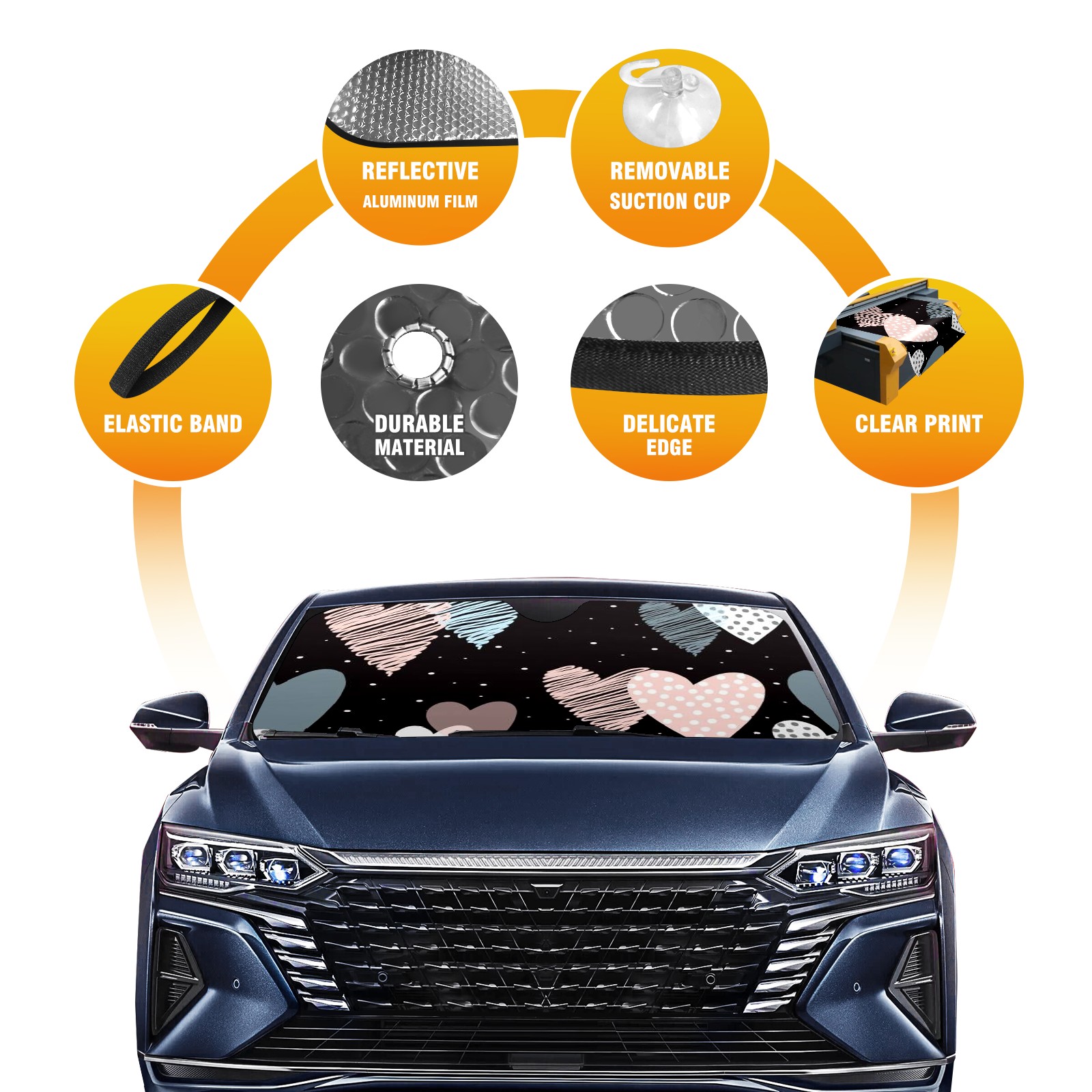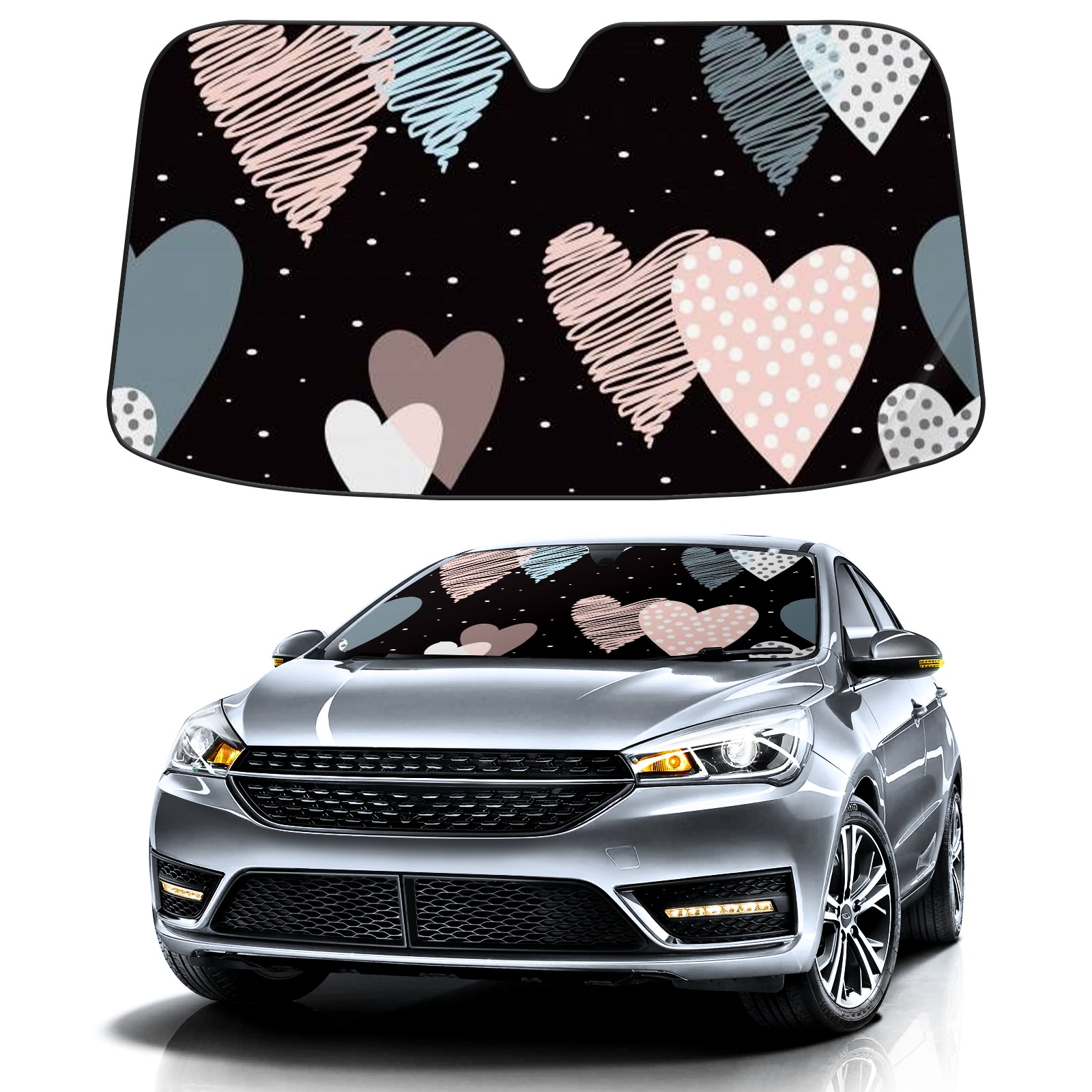 Car Windshield Sun Shade For Front Window Love Foldable Vehicle Windshield Car Sun Visor Covers Automotive Window Protector Car Camping Privacy Sun Blocker