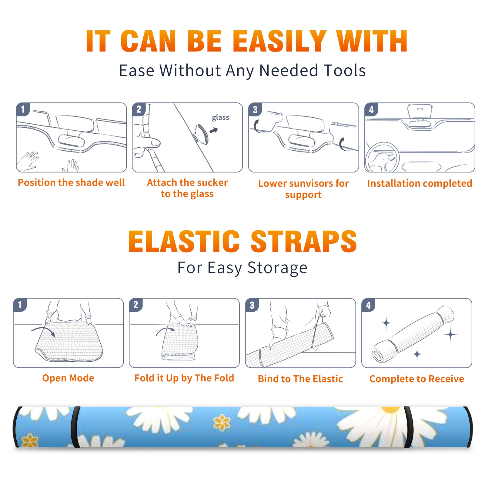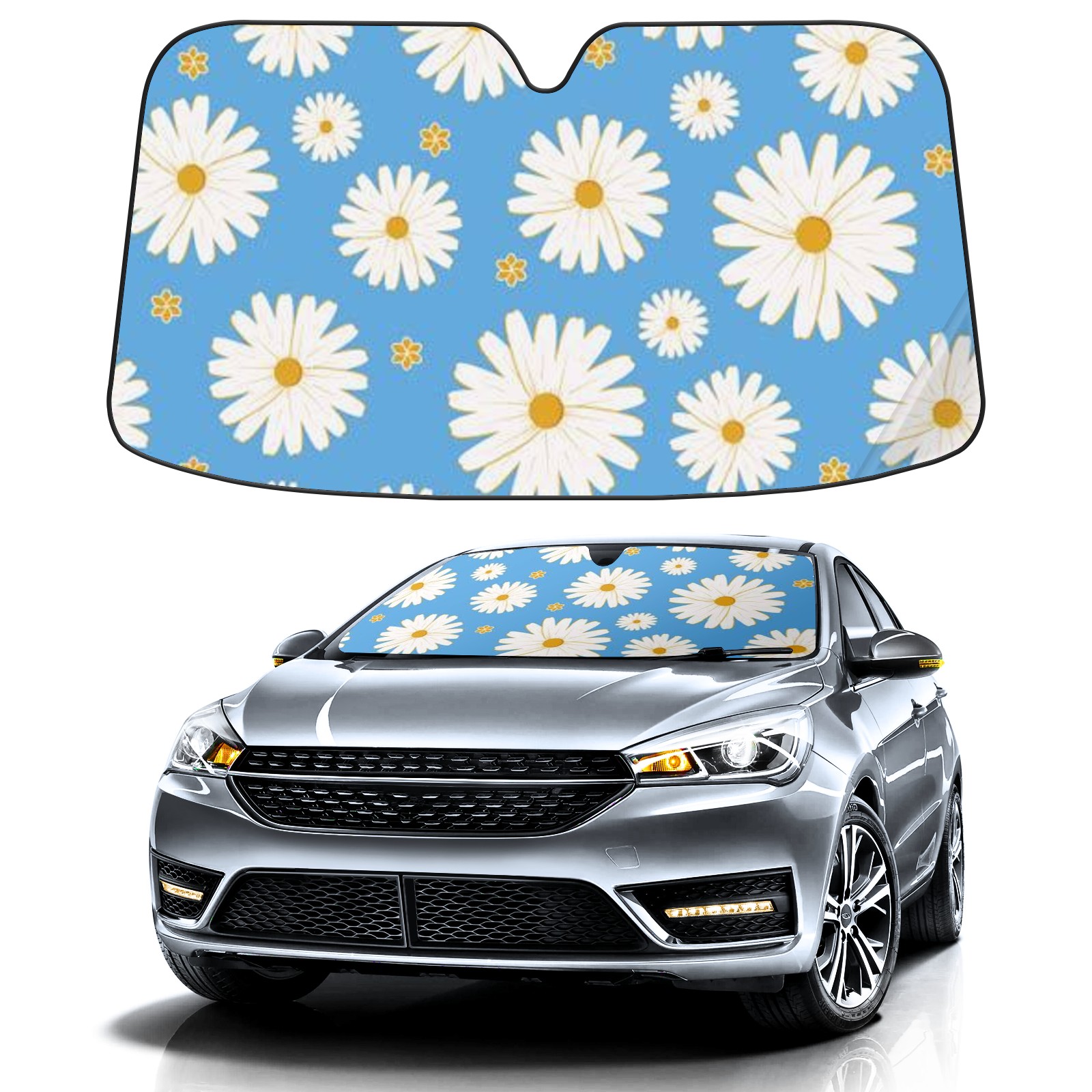 Car Windshield Sun Shade For Front Window Sunflower Foldable Vehicle Windshield Car Sun Visor Covers Automotive Window Protector Car Camping Privacy Sun Blocker
