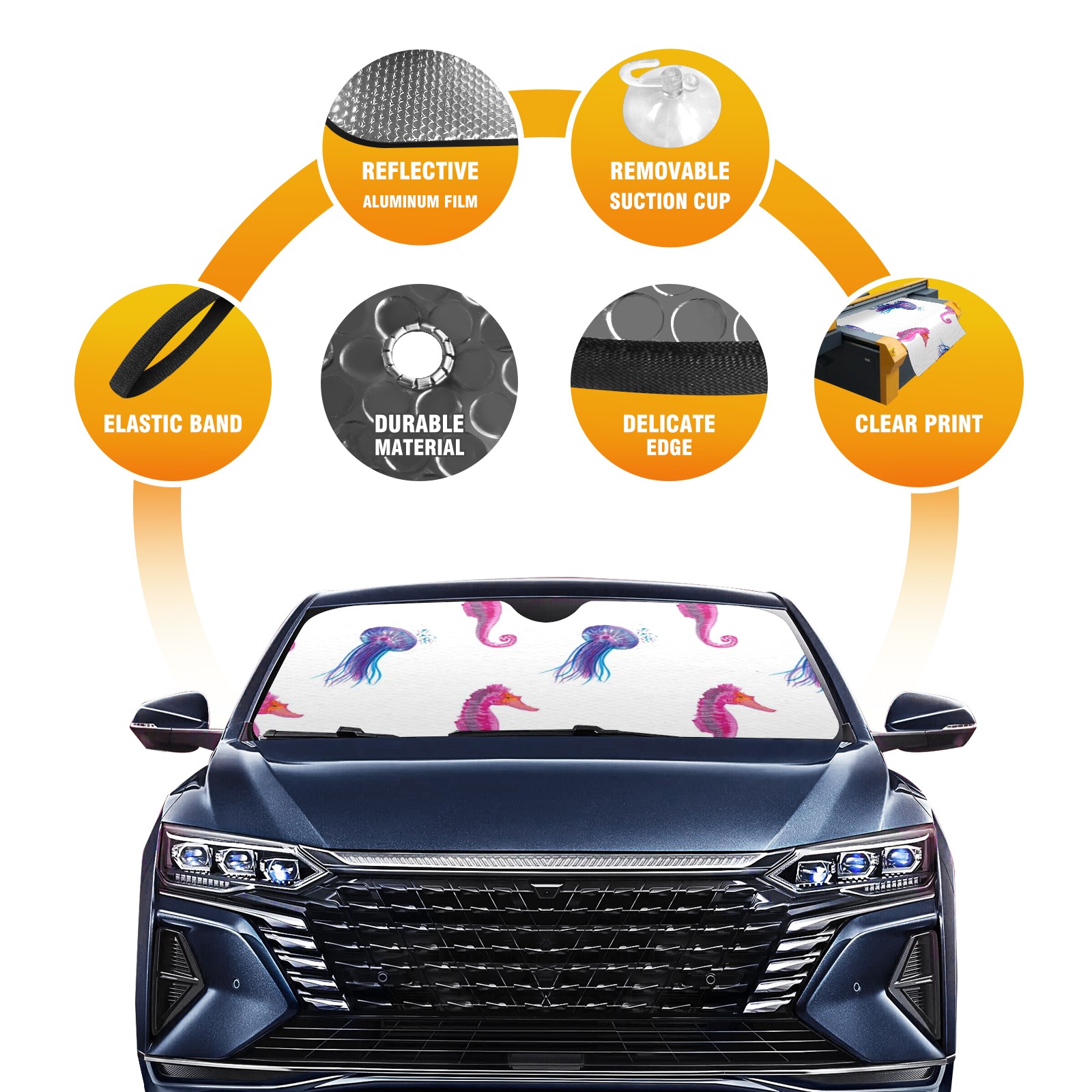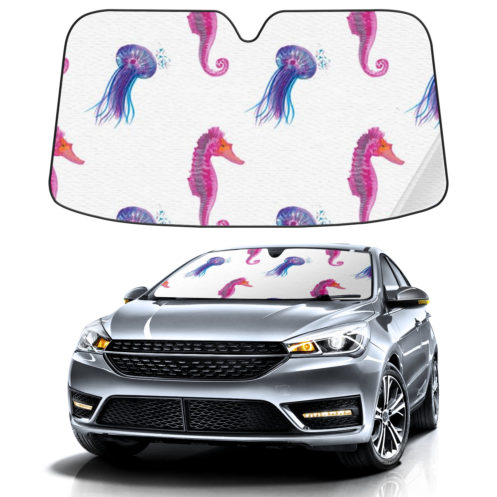 Car Windshield Sun Shade For Front Window Jellyfish Foldable Vehicle Windshield Car Sun Visor Covers Automotive Window Protector Car Camping Privacy Sun Blocker
