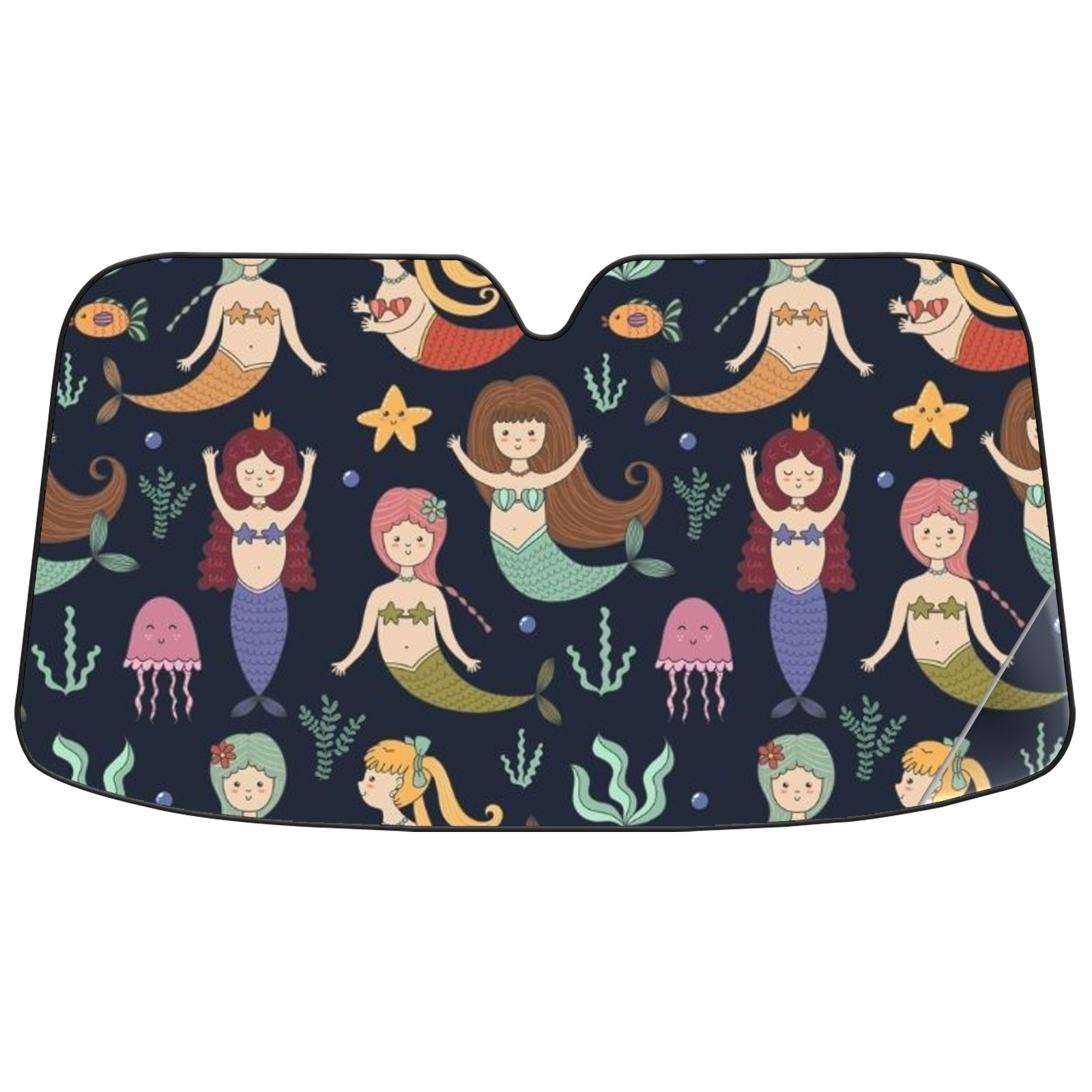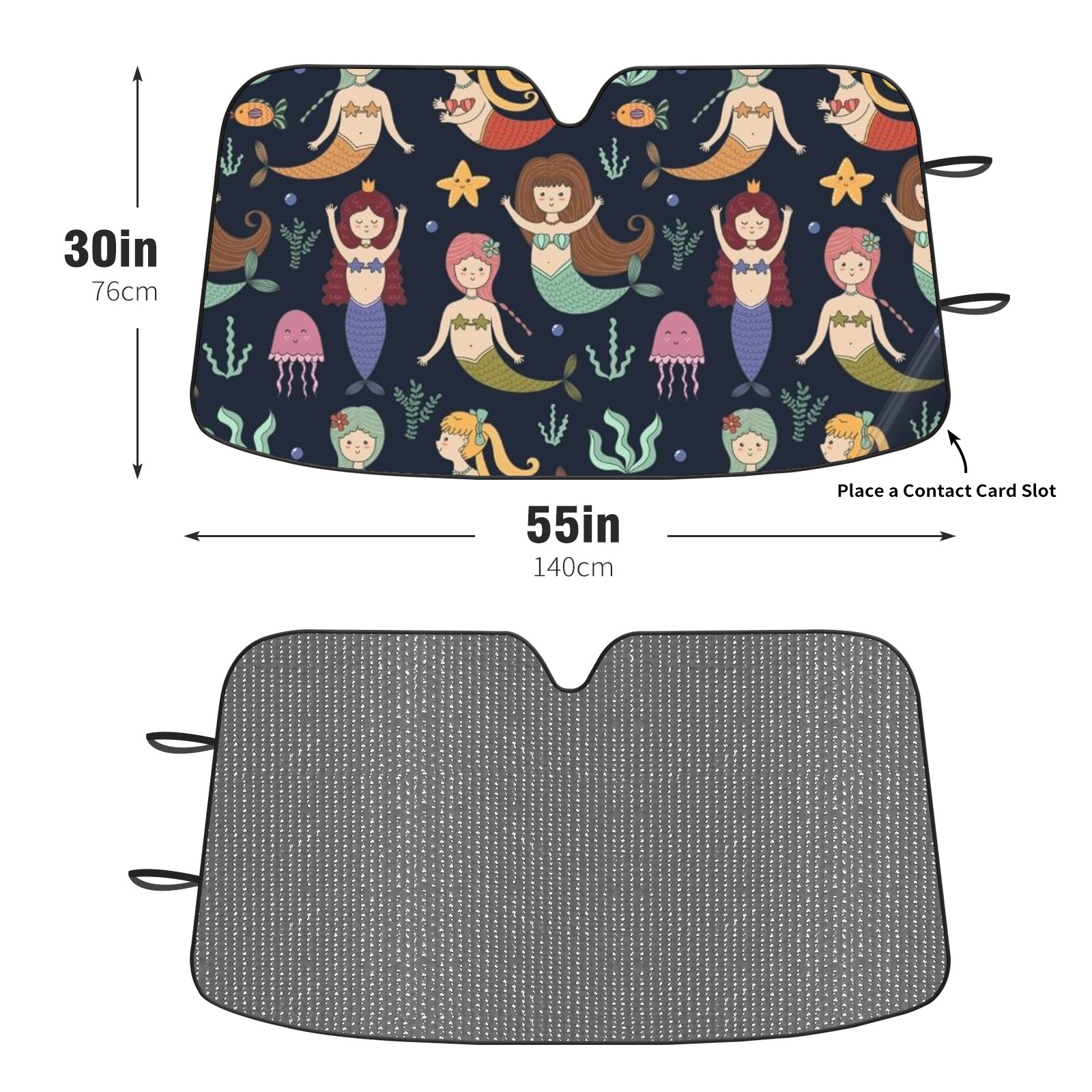 Car Windshield Sun Shade For Front Window Mermaid Foldable Vehicle Windshield Car Sun Visor Covers Automotive Window Protector Car Camping Privacy Sun Blocker