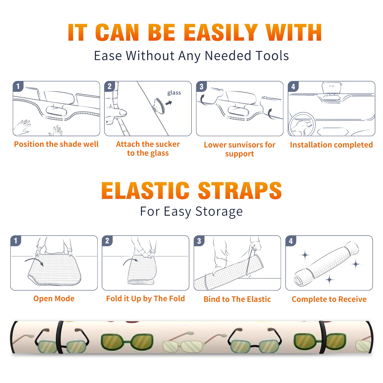 • Diameter /Size 63"L x 33.5"W Made from excellent materials which makes it sturdy and protects the car from the sun. Easy to use and pack. Makes the interior of the car cooler.You can easily stash the sunshade in the storage bag or store long term.It open and closes easy. Also the leather storage bag is durable and easy to put the umbrella back into.This windshield sunshade provides complete coverage and keeps your car interior cool under direct sun. It is easy to open and position under the windshield and around the rear-view mirror. Makes Your Car Easy To Identify, Perfect For Finding Your Car In Crowded Parking Lots And Garages.Great Choice: It Is A Great Gift For Dad, Boyfriend, Brother, Brother And Uncle, Friends, Classmates, Family And So On. Notice: Due To Difference Computer Monitors, The Color Maybe Slightly Different From Picture. As Different Measurement Methods, Measurement Data Will Float Within 2%.I Hope You Understand. If You Have Any Question About The Item Please Do Not Hesitate To Contact Us Immediately And We Will Give You A Satisfactory Reply Within 24 Hours.