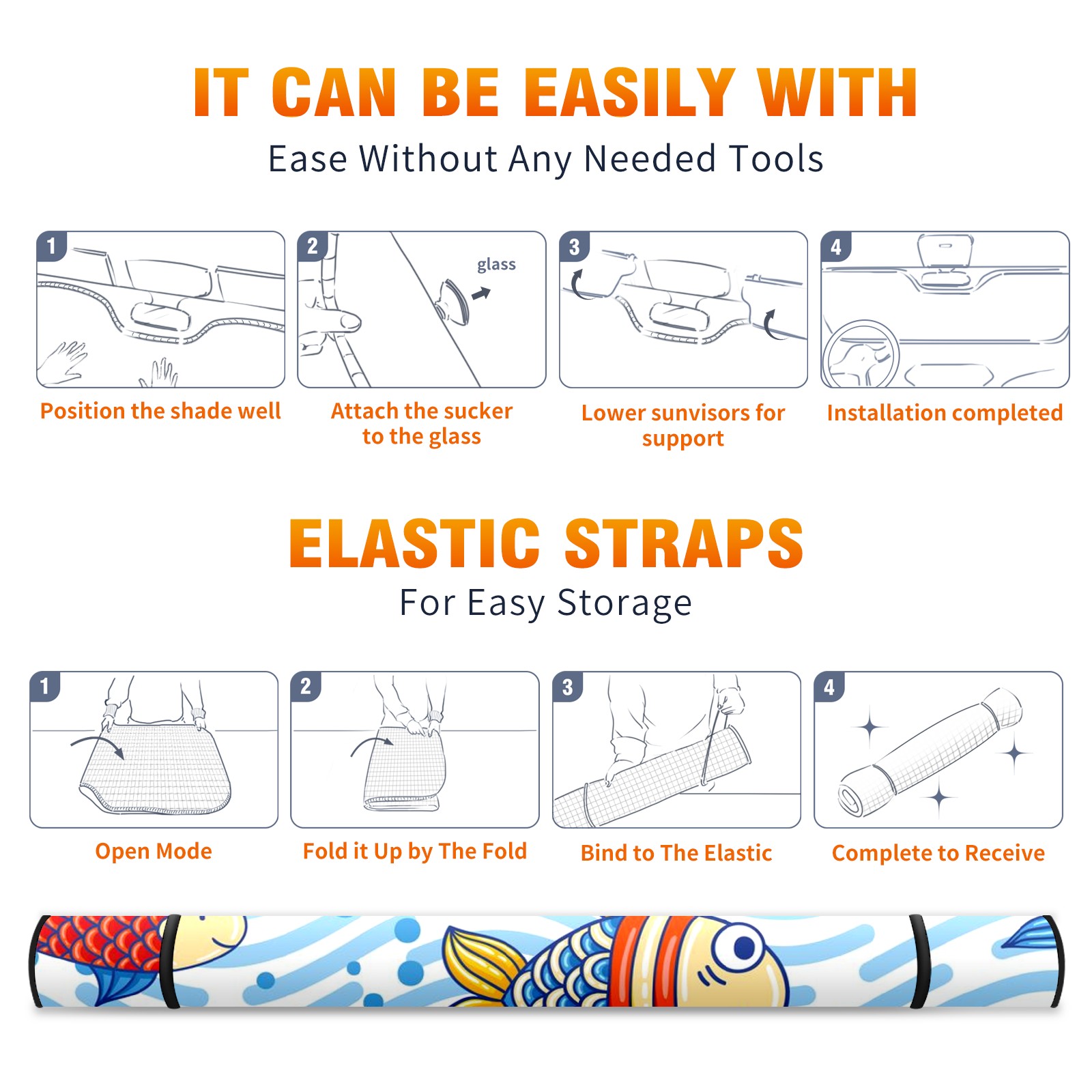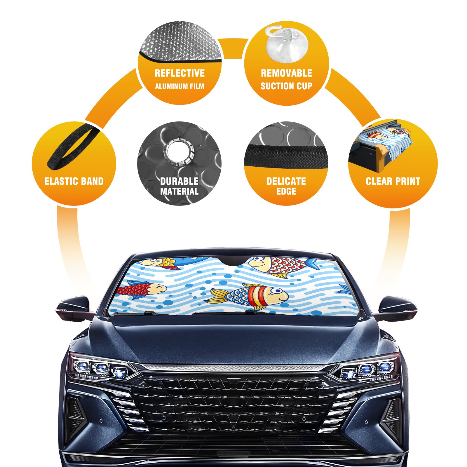 Car Windshield Sun Shade For Front Window Fish Foldable Vehicle Windshield Car Sun Visor Covers Automotive Window Protector Car Camping Privacy Sun Blocker