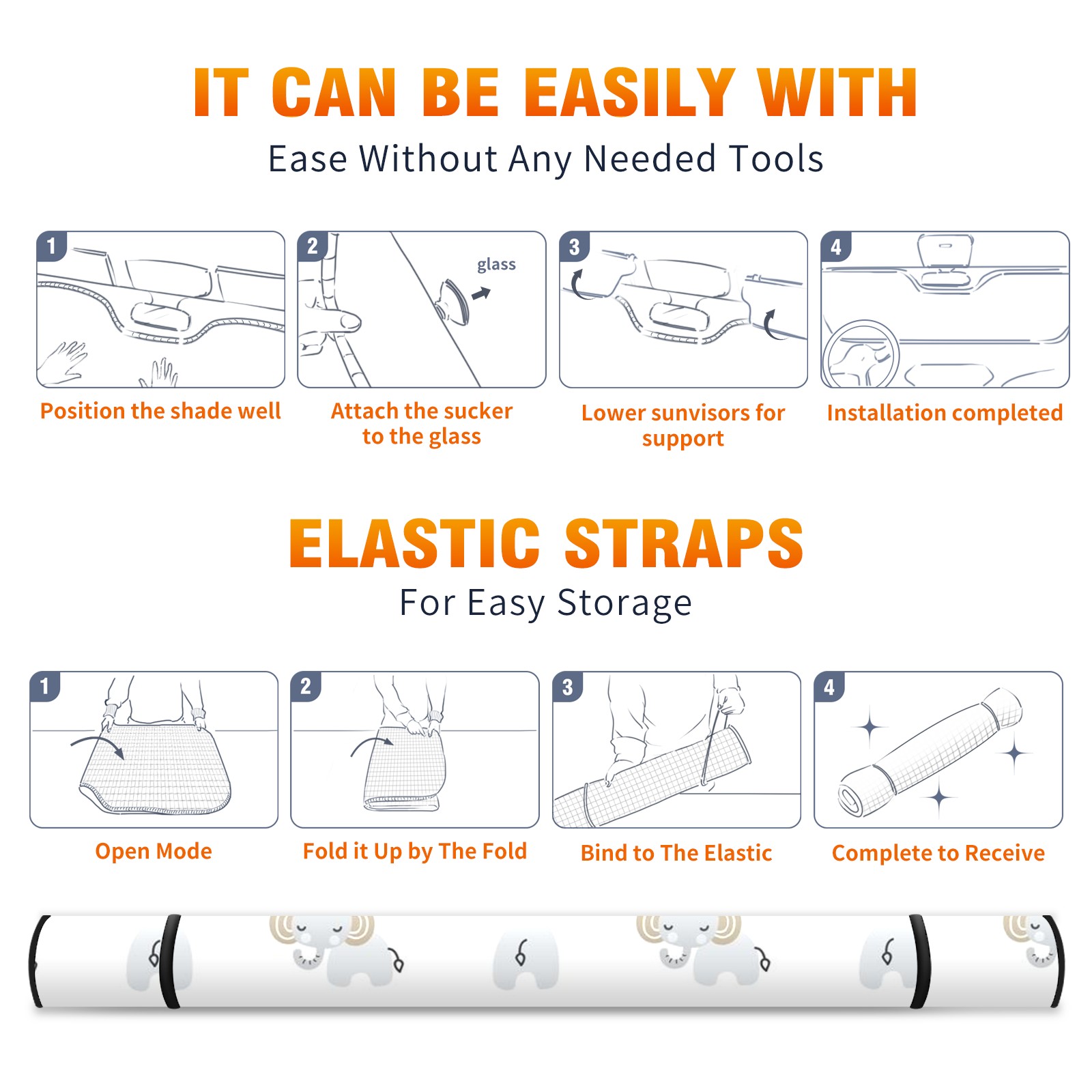 Car Windshield Sun Shade For Front Window Elephant Foldable Vehicle Windshield Car Sun Visor Covers Automotive Window Protector Car Camping Privacy Sun Blocker