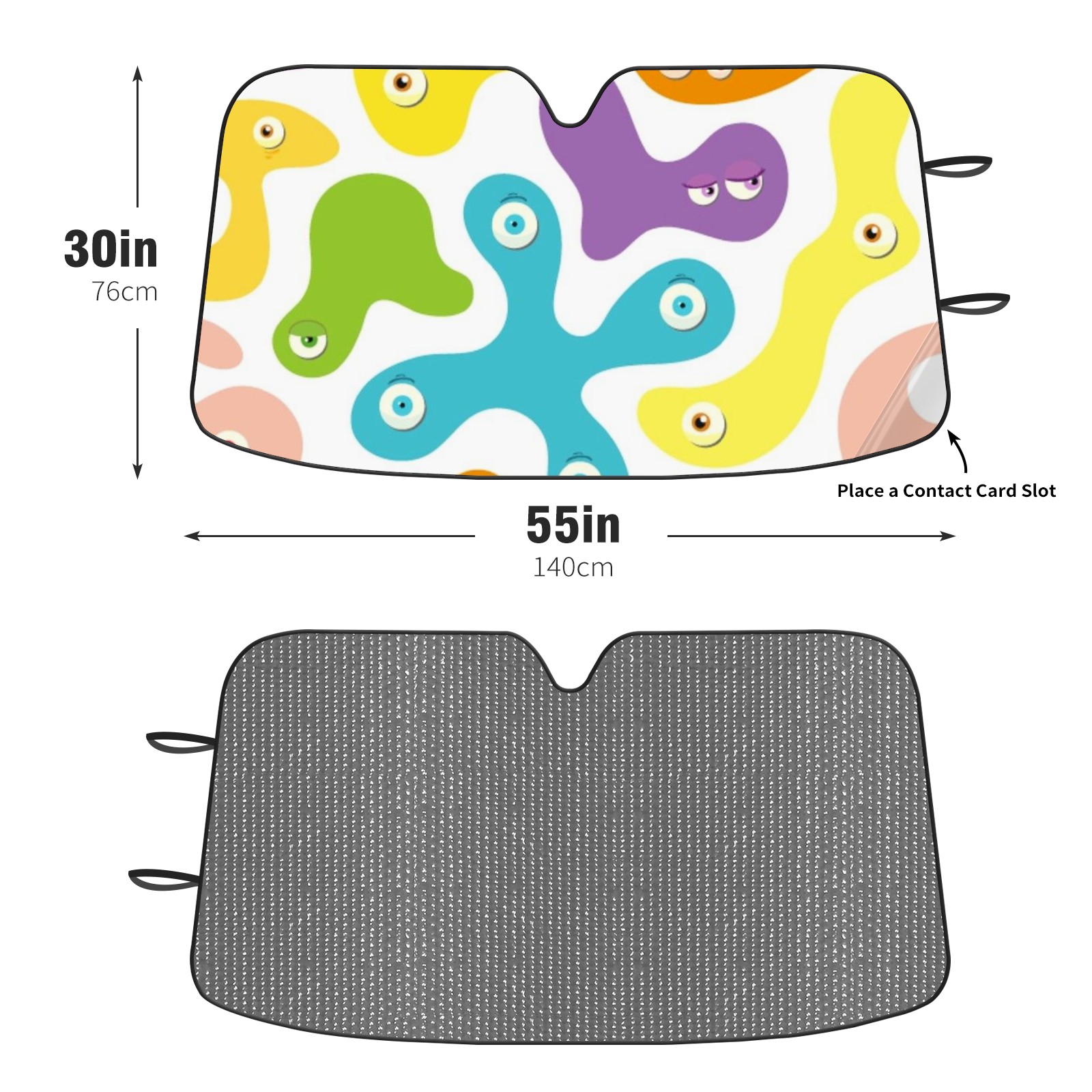 Diameter /Size 63"L x 33.5"W Made from excellent materials which makes it sturdy and protects the car from the sun. Easy to use and pack. Makes the interior of the car cooler.You can easily stash the sunshade in the storage bag or store long term.It open and closes easy. Also the leather storage bag is durable and easy to put the umbrella back into.This windshield sunshade provides complete coverage and keeps your car interior cool under direct sun. It is easy to open and position under the windshield and around the rear-view mirror. Makes Your Car Easy To Identify, Perfect For Finding Your Car In Crowded Parking Lots And Garages.Great Choice: It Is A Great Gift For Dad, Boyfriend, Brother, Brother And Uncle, Friends, Classmates, Family And So On. Notice: Due To Difference Computer Monitors, The Color Maybe Slightly Different From Picture. As Different Measurement Methods, Measurement Data Will Float Within 2%.I Hope You Understand. If You Have Any Question About The Item Please Do Not Hesitate To Contact Us Immediately And We Will Give You A Satisfactory Reply Within 24 Hours.