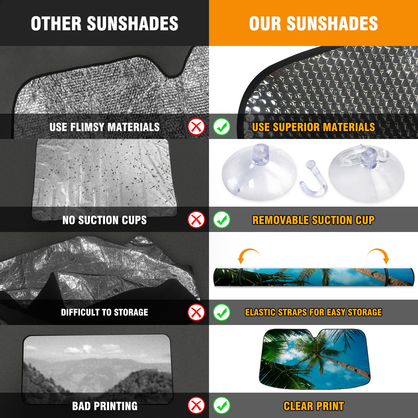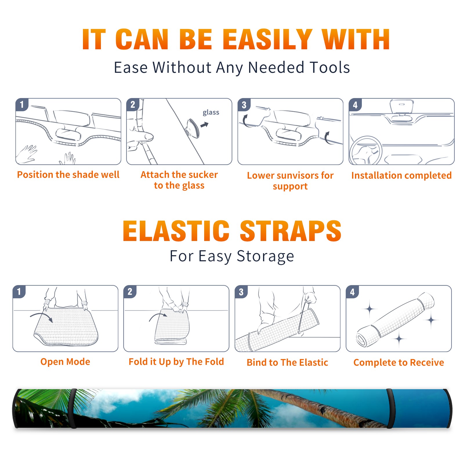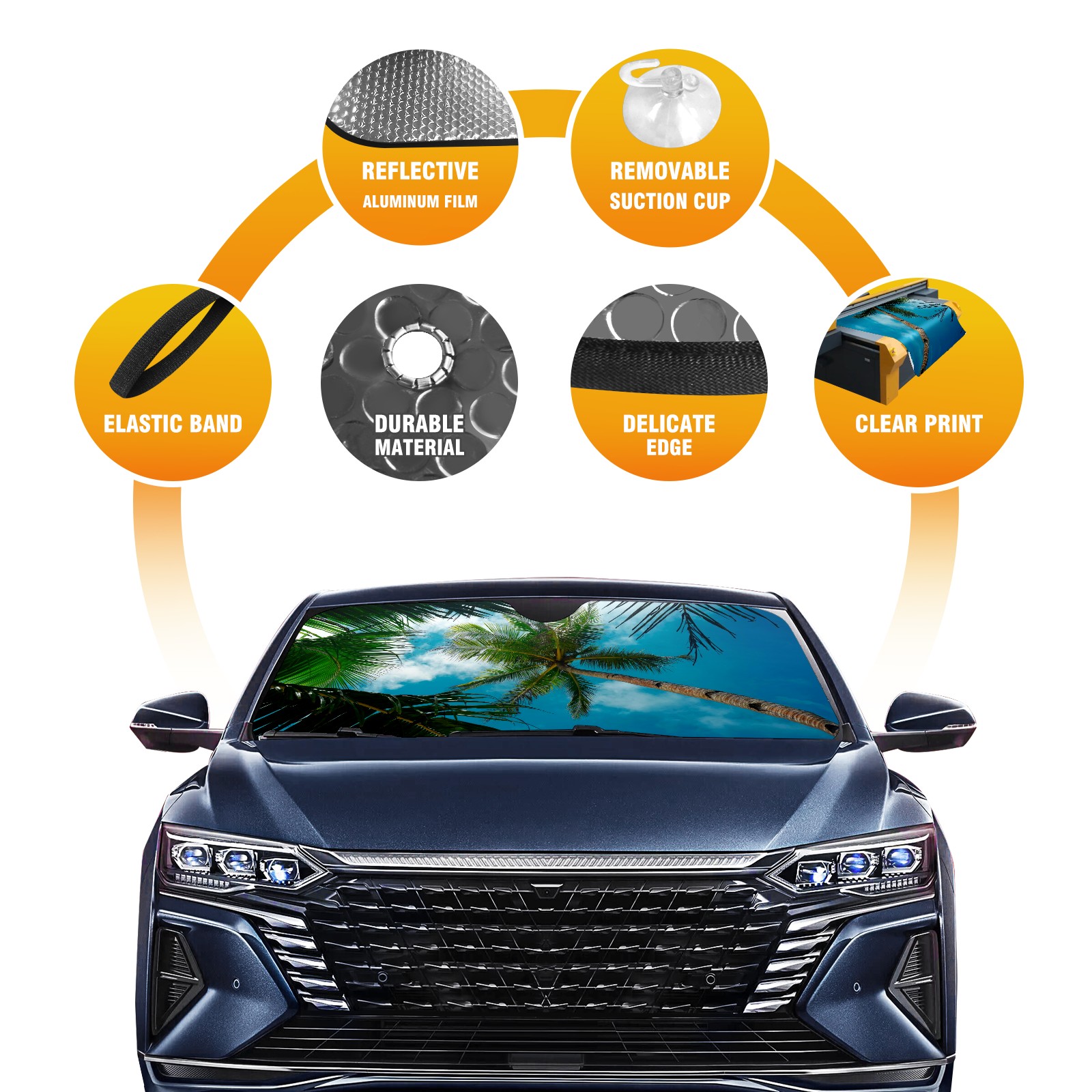 • Diameter /Size 63"L x 33.5"W Made from excellent materials which makes it sturdy and protects the car from the sun. Easy to use and pack. Makes the interior of the car cooler.You can easily stash the sunshade in the storage bag or store long term.It open and closes easy. Also the leather storage bag is durable and easy to put the umbrella back into.This windshield sunshade provides complete coverage and keeps your car interior cool under direct sun. It is easy to open and position under the windshield and around the rear-view mirror. Makes Your Car Easy To Identify, Perfect For Finding Your Car In Crowded Parking Lots And Garages.Great Choice: It Is A Great Gift For Dad, Boyfriend, Brother, Brother And Uncle, Friends, Classmates, Family And So On. Notice: Due To Difference Computer Monitors, The Color Maybe Slightly Different From Picture. As Different Measurement Methods, Measurement Data Will Float Within 2%.I Hope You Understand. If You Have Any Question About The Item Please Do Not Hesitate To Contact Us Immediately And We Will Give You A Satisfactory Reply Within 24 Hours.