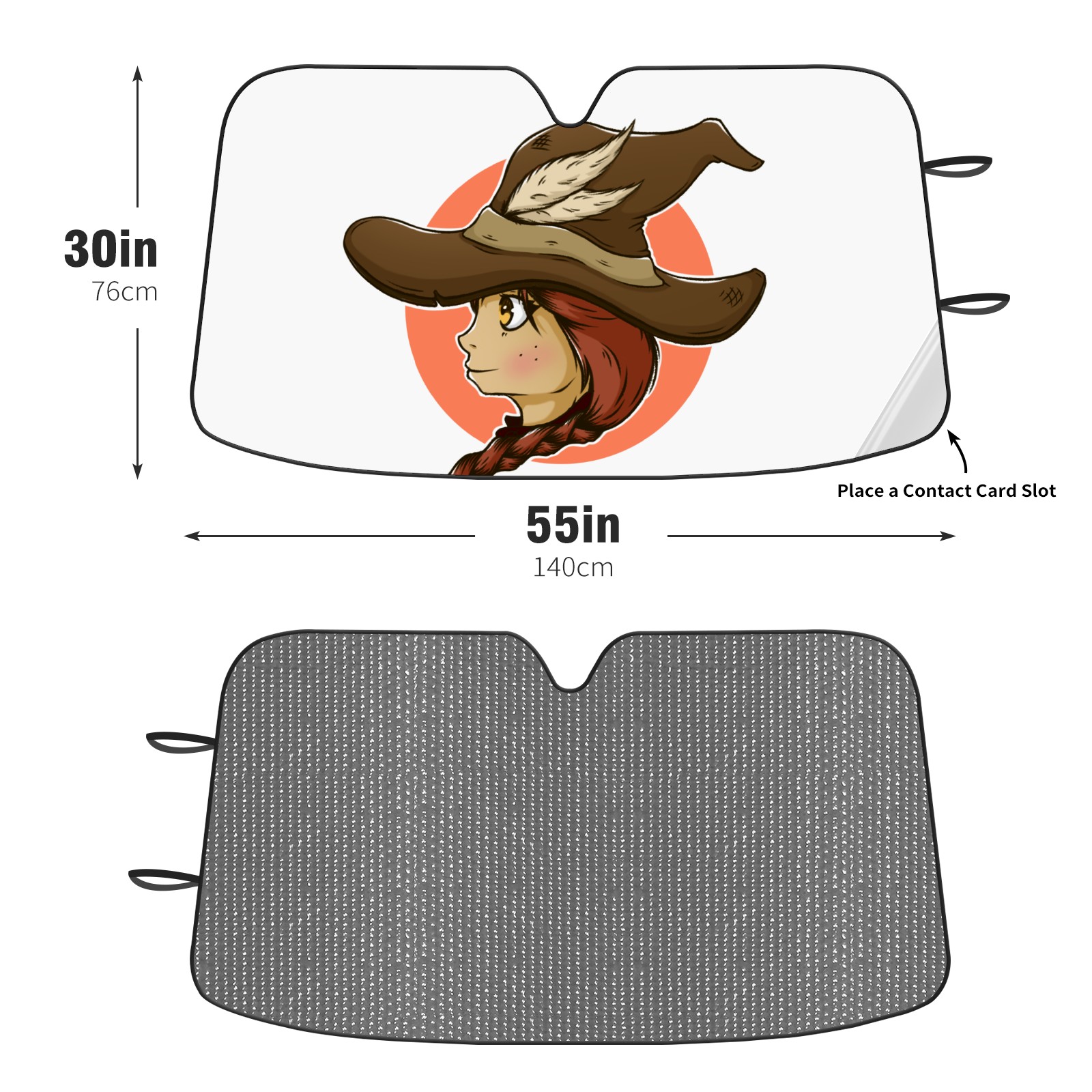 Diameter /Size 63"L x 33.5"W Made from excellent materials which makes it sturdy and protects the car from the sun. Easy to use and pack. Makes the interior of the car cooler.You can easily stash the sunshade in the storage bag or store long term.It open and closes easy. Also the leather storage bag is durable and easy to put the umbrella back into.This windshield sunshade provides complete coverage and keeps your car interior cool under direct sun. It is easy to open and position under the windshield and around the rear-view mirror. Makes Your Car Easy To Identify, Perfect For Finding Your Car In Crowded Parking Lots And Garages.Great Choice: It Is A Great Gift For Dad, Boyfriend, Brother, Brother And Uncle, Friends, Classmates, Family And So On. Notice: Due To Difference Computer Monitors, The Color Maybe Slightly Different From Picture. As Different Measurement Methods, Measurement Data Will Float Within 2%.I Hope You Understand. If You Have Any Question About The Item Please Do Not Hesitate To Contact Us Immediately And We Will Give You A Satisfactory Reply Within 24 Hours.