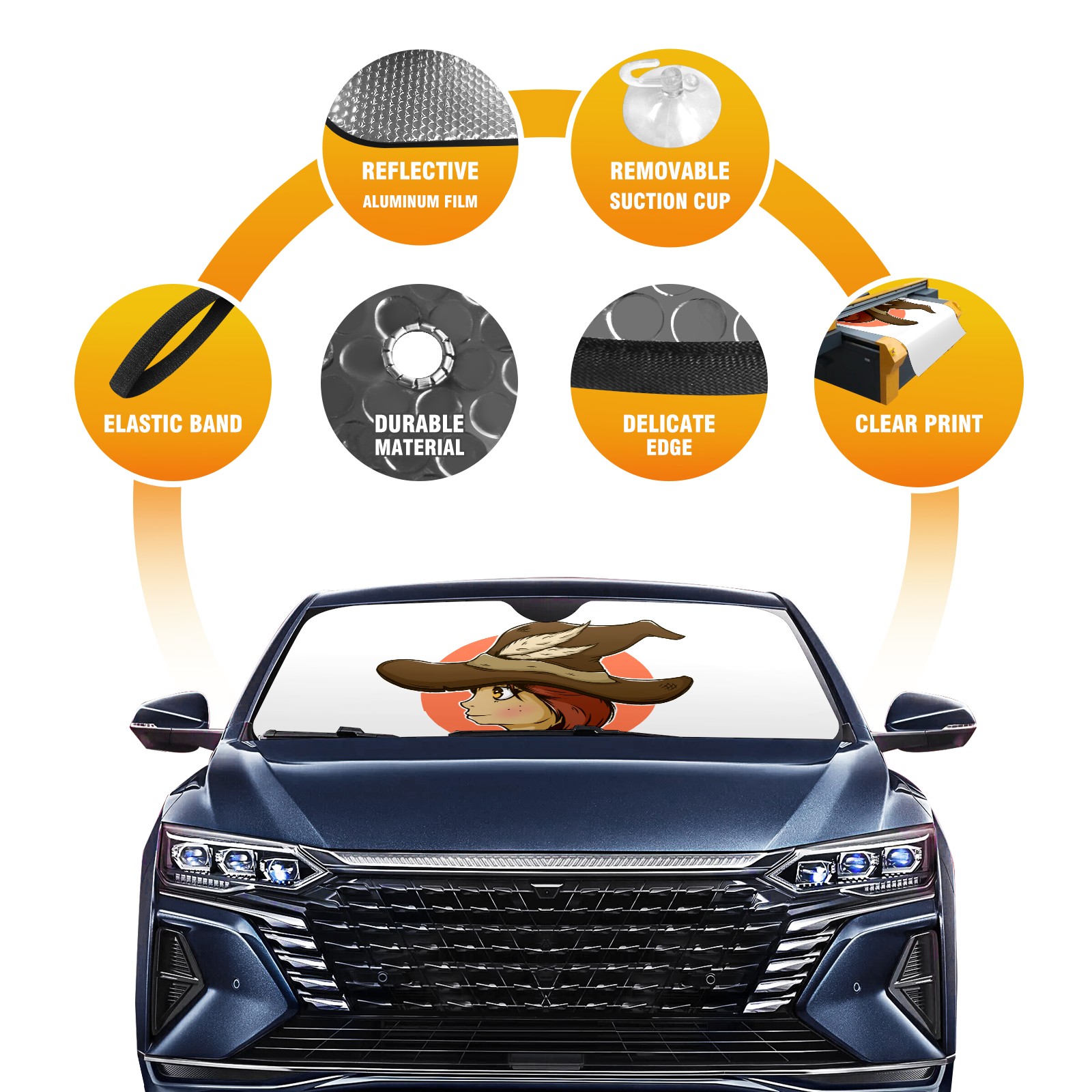 Car Windshield Sun Shade For Front Window Cowboy (13) Foldable Vehicle Windshield Car Sun Visor Covers Automotive Window Protector Car Camping Privacy Sun Blocker