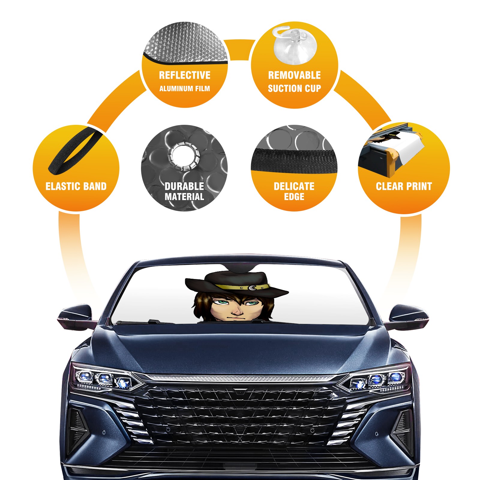 Car Windshield Sun Shade For Front Window Cowboy (9) Foldable Vehicle Windshield Car Sun Visor Covers Automotive Window Protector Car Camping Privacy Sun Blocker