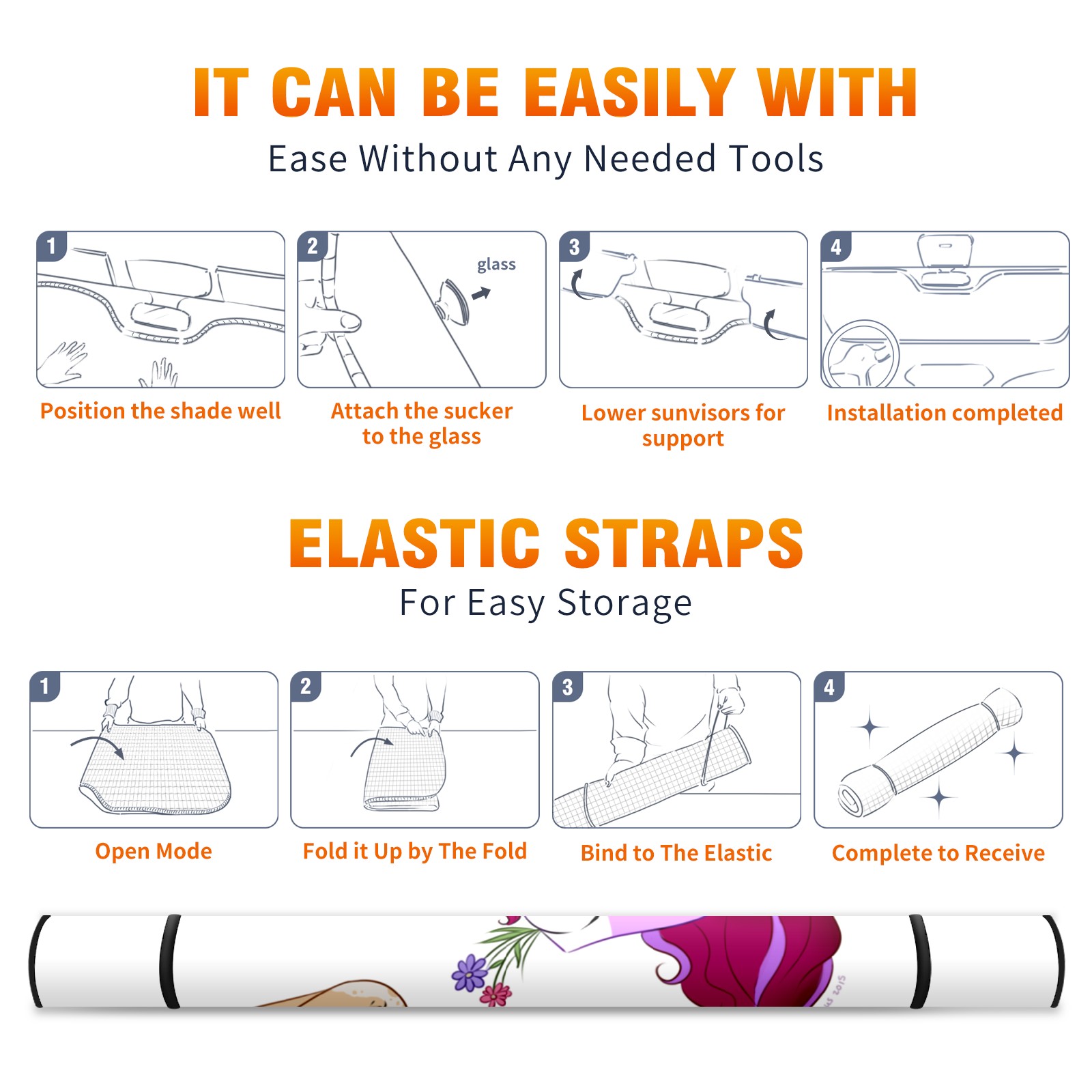 • Diameter /Size 63"L x 33.5"W Made from excellent materials which makes it sturdy and protects the car from the sun. Easy to use and pack. Makes the interior of the car cooler.You can easily stash the sunshade in the storage bag or store long term.It open and closes easy. Also the leather storage bag is durable and easy to put the umbrella back into.This windshield sunshade provides complete coverage and keeps your car interior cool under direct sun. It is easy to open and position under the windshield and around the rear-view mirror. Makes Your Car Easy To Identify, Perfect For Finding Your Car In Crowded Parking Lots And Garages.Great Choice: It Is A Great Gift For Dad, Boyfriend, Brother, Brother And Uncle, Friends, Classmates, Family And So On. Notice: Due To Difference Computer Monitors, The Color Maybe Slightly Different From Picture. As Different Measurement Methods, Measurement Data Will Float Within 2%.I Hope You Understand. If You Have Any Question About The Item Please Do Not Hesitate To Contact Us Immediately And We Will Give You A Satisfactory Reply Within 24 Hours.