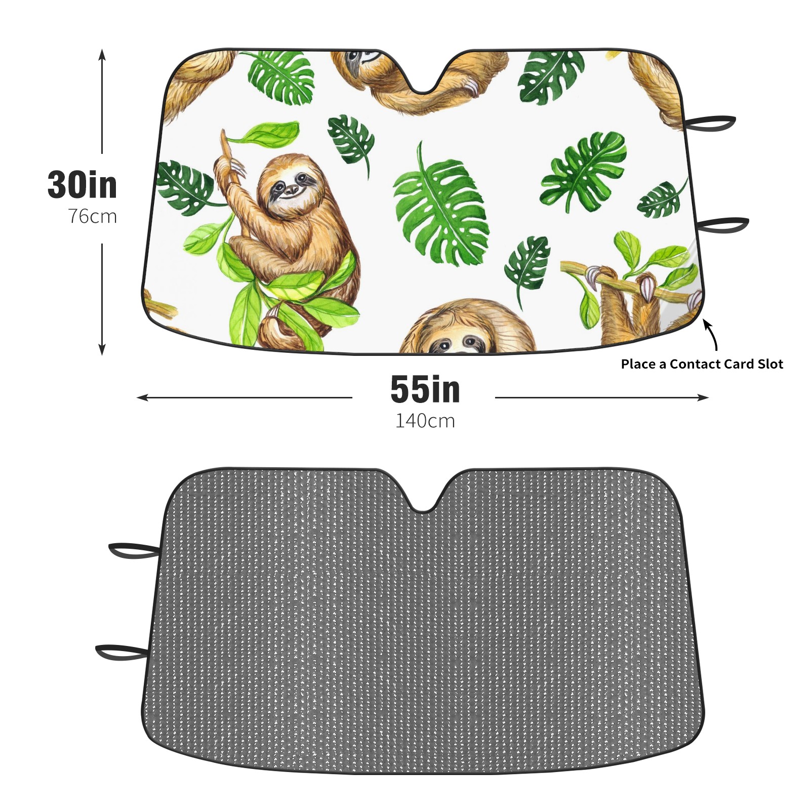 Car Windshield Sun Shade For Front Window Sloth Tropic Monstera Leaves Foldable Vehicle Windshield Car Sun Visor Covers Automotive Window Protector Car Camping Privacy Sun Blocker