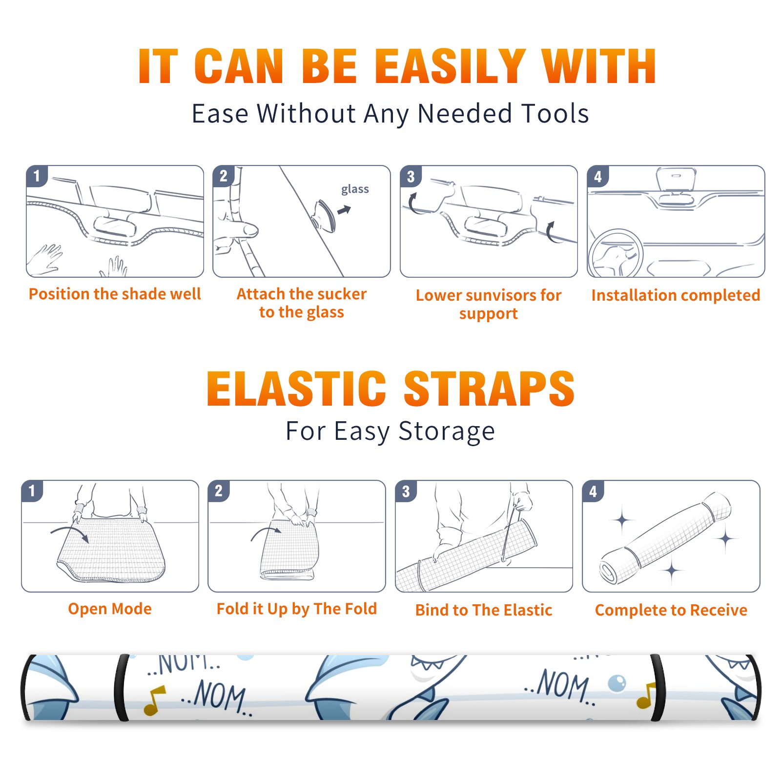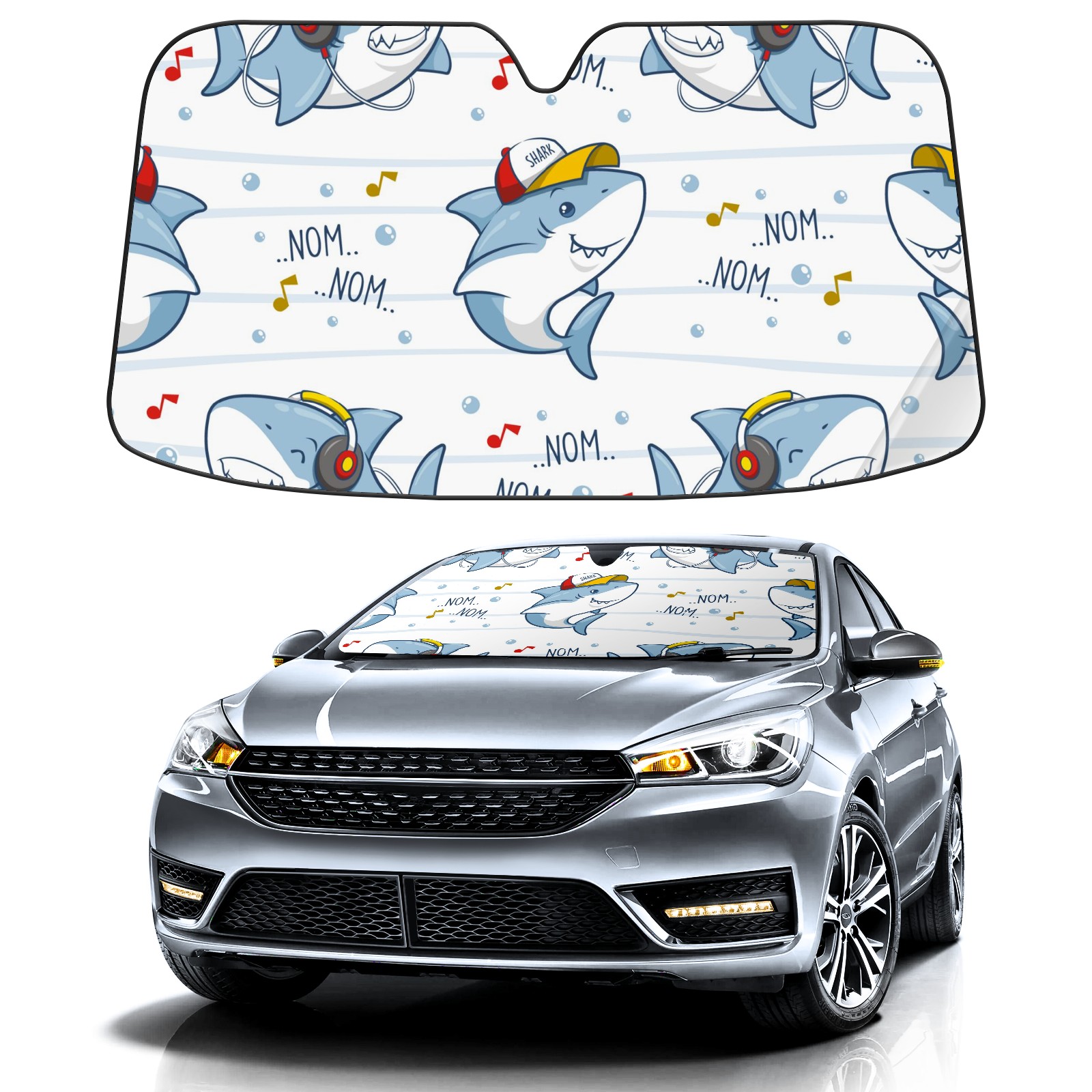 Car Windshield Sun Shade For Front Window Cute Shark Music Foldable Vehicle Windshield Car Sun Visor Covers Automotive Window Protector Car Camping Privacy Sun Blocker