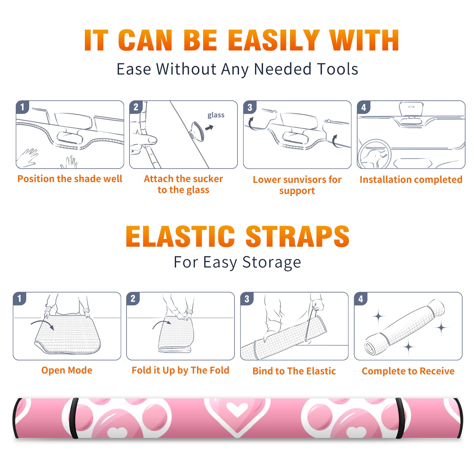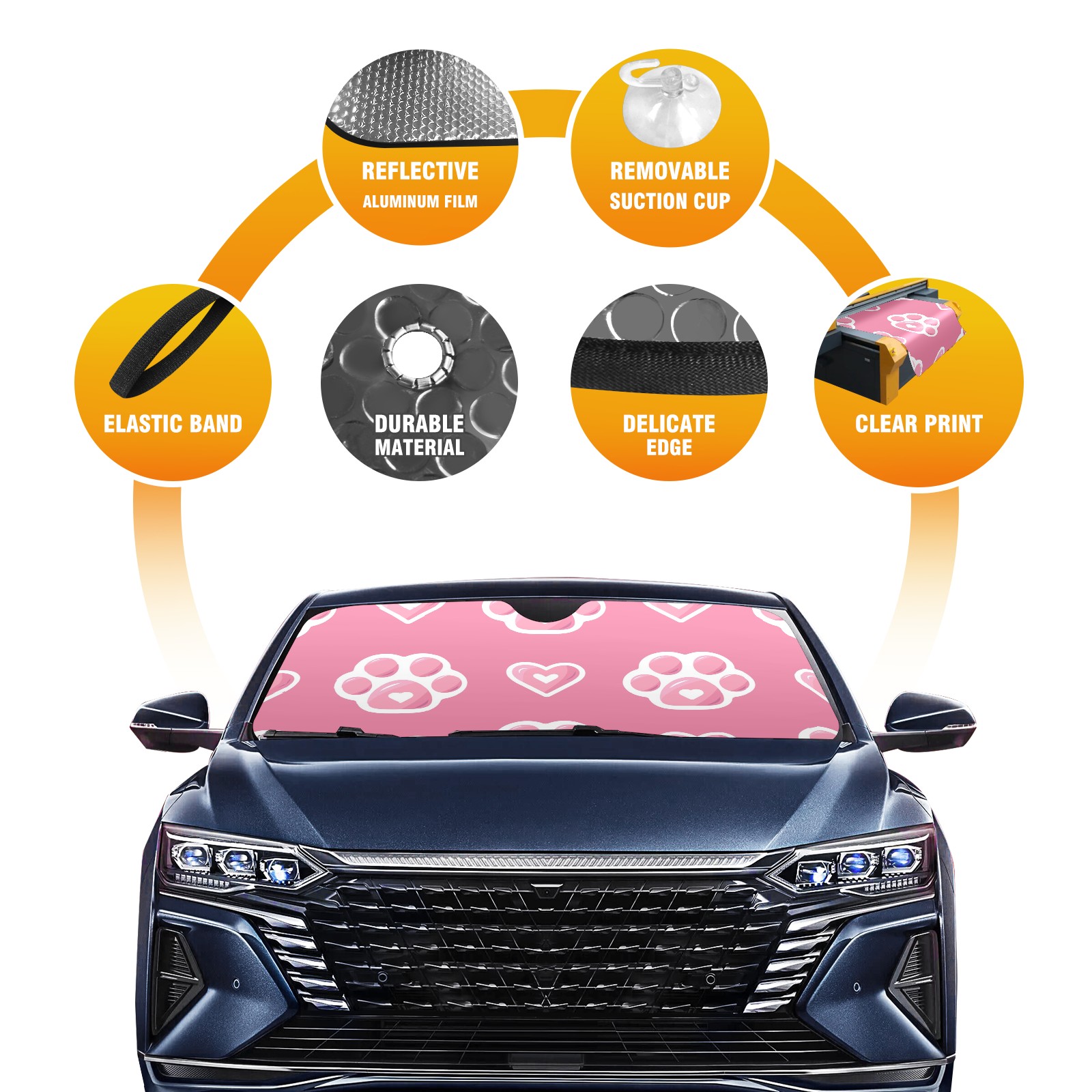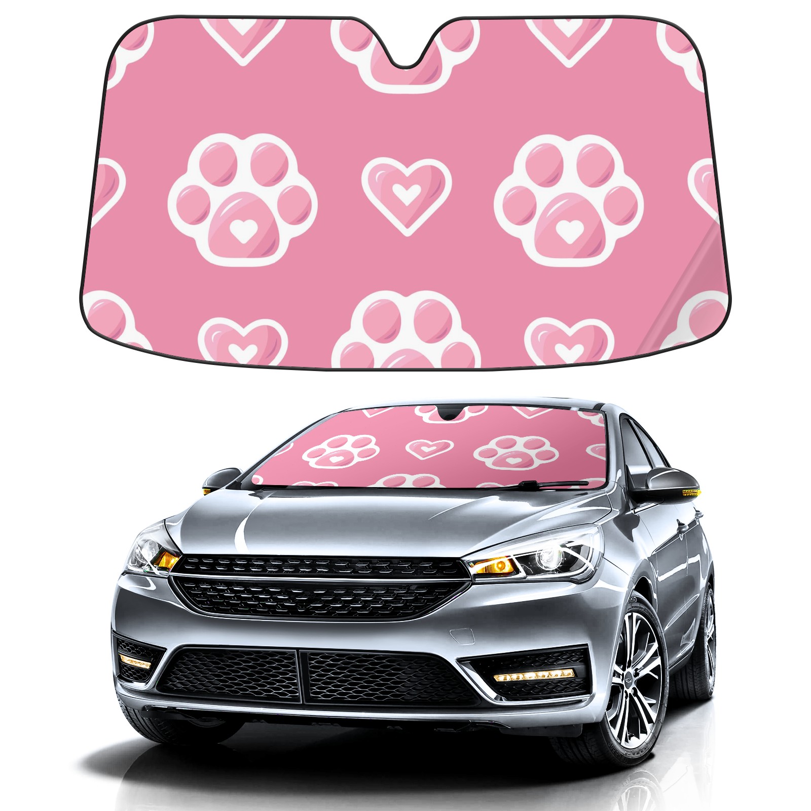 Car Windshield Sun Shade For Front Window Valentine's Day Pink Dog Paw Prints Foldable Vehicle Windshield Car Sun Visor Covers Automotive Window Protector Car Camping Privacy Sun Blocker