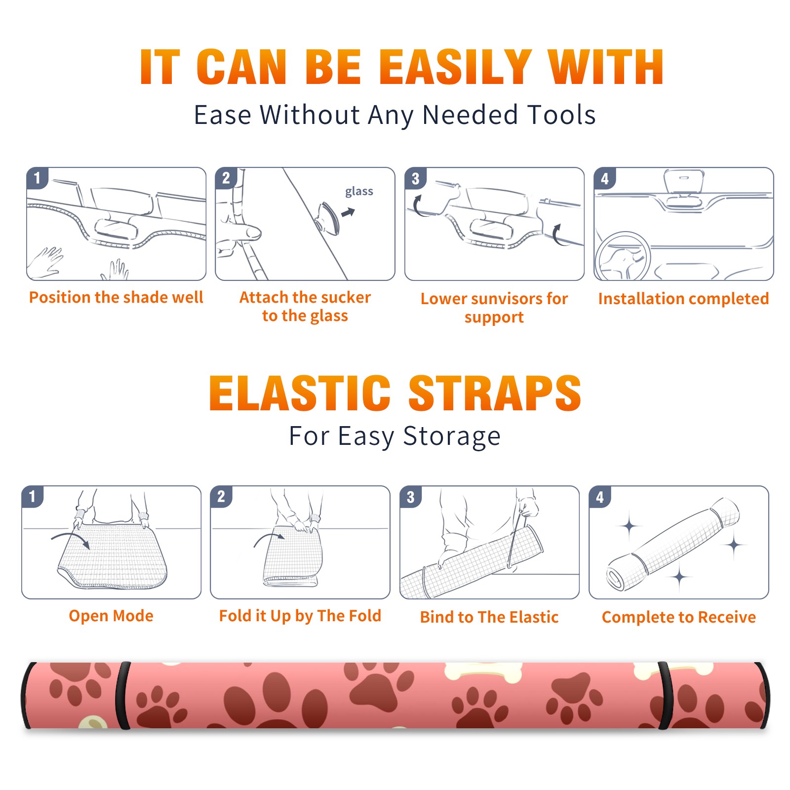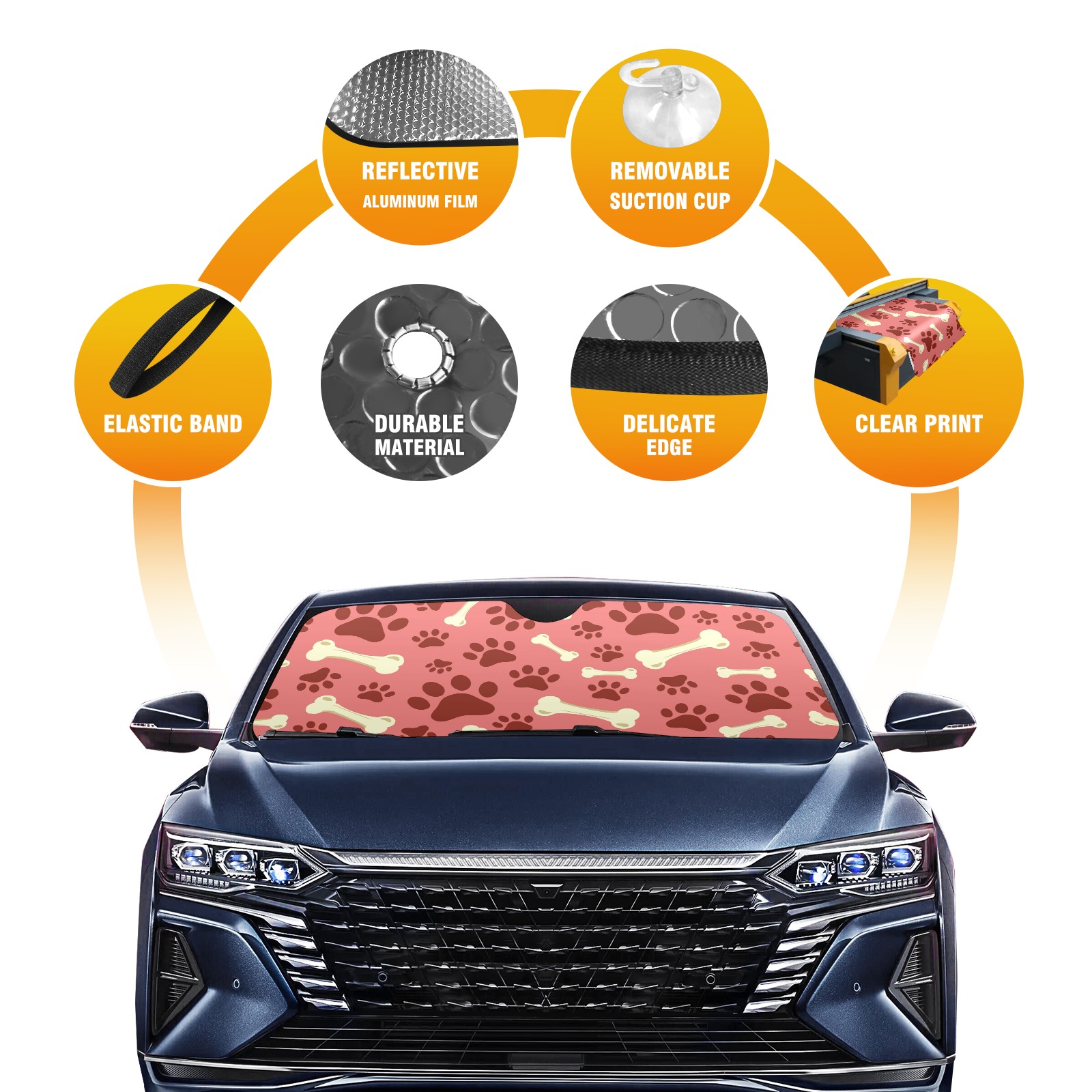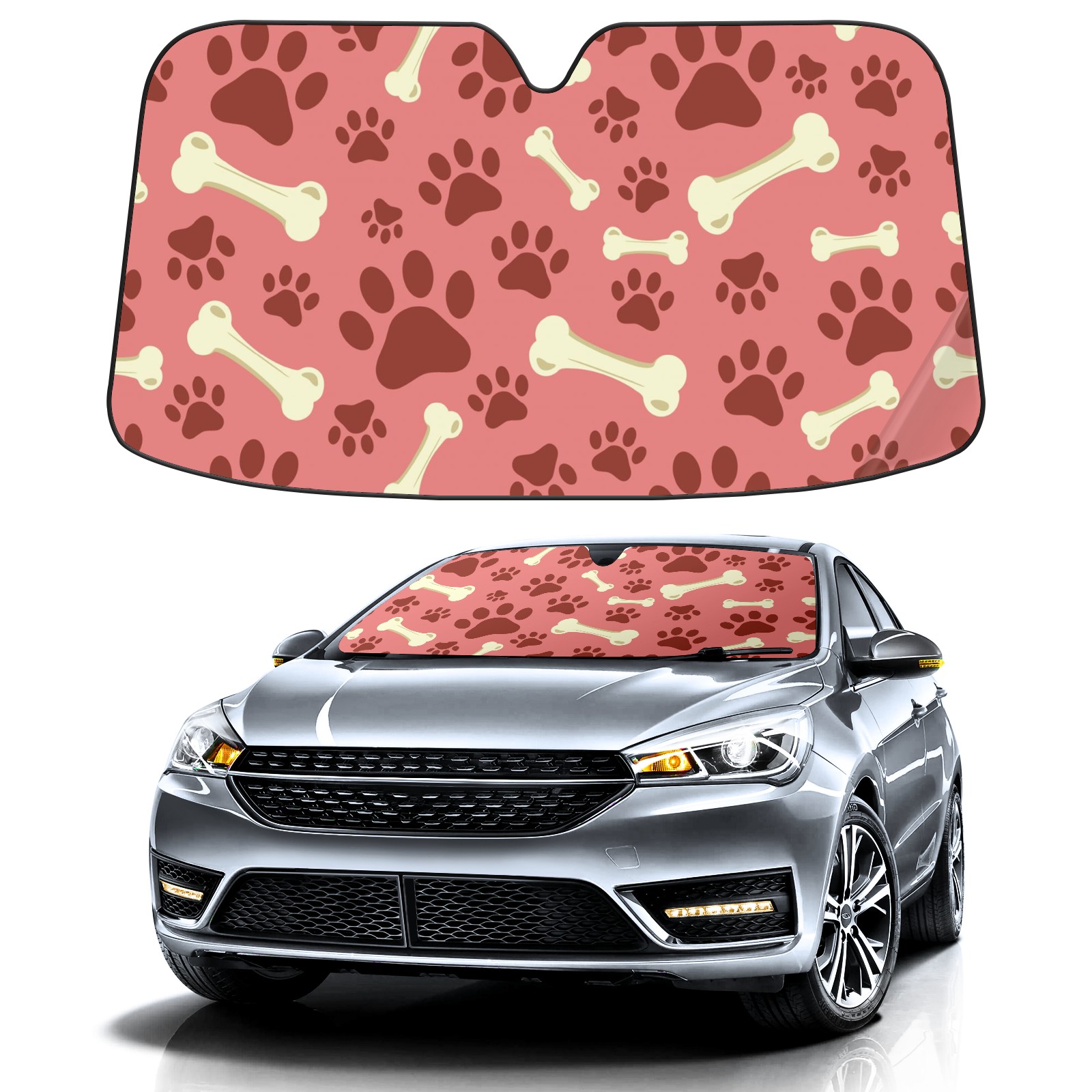 Car Windshield Sun Shade For Front Window Dog Paw Print Bone On Pink Background Foldable Vehicle Windshield Car Sun Visor Covers Automotive Window Protector Car Camping Privacy Sun Blocker