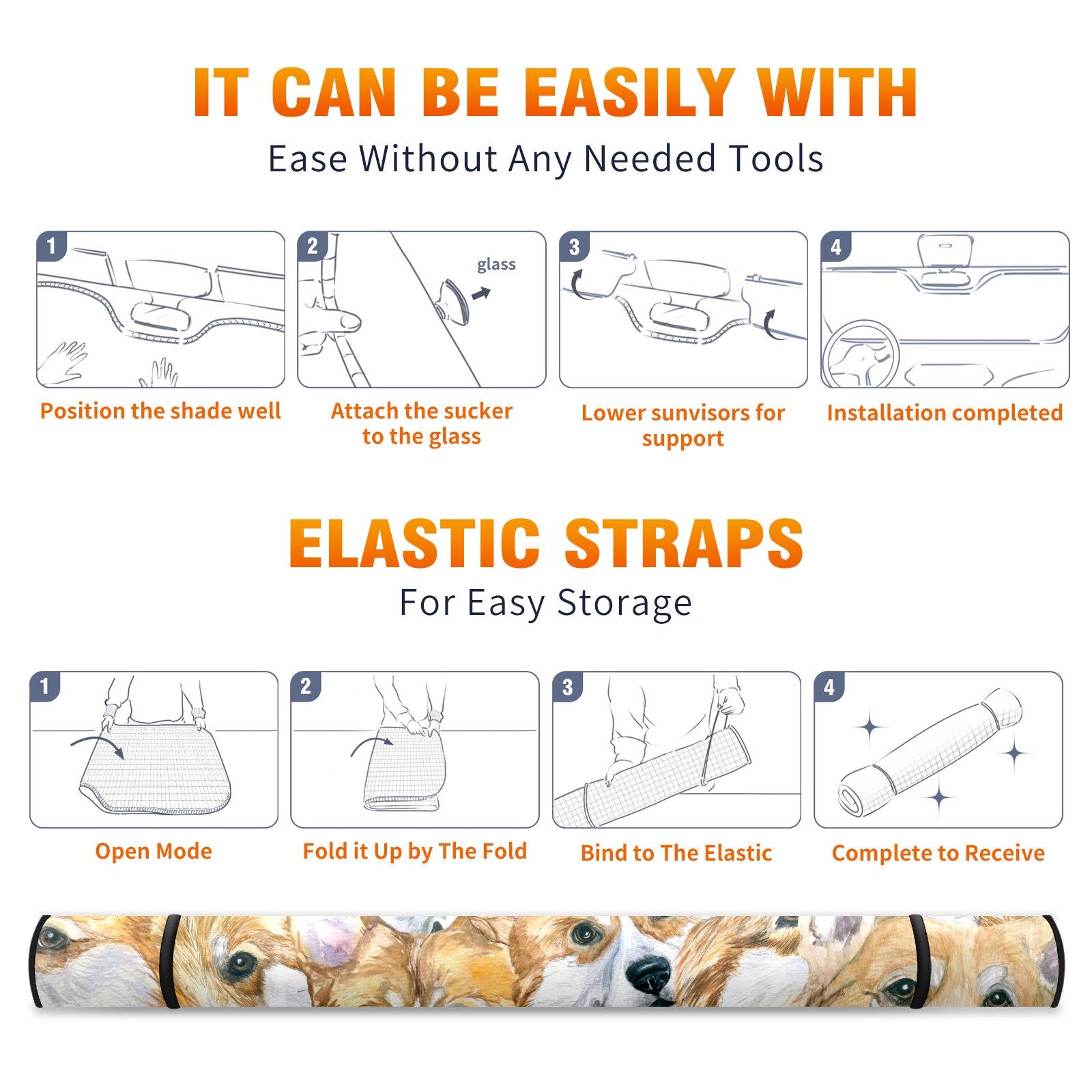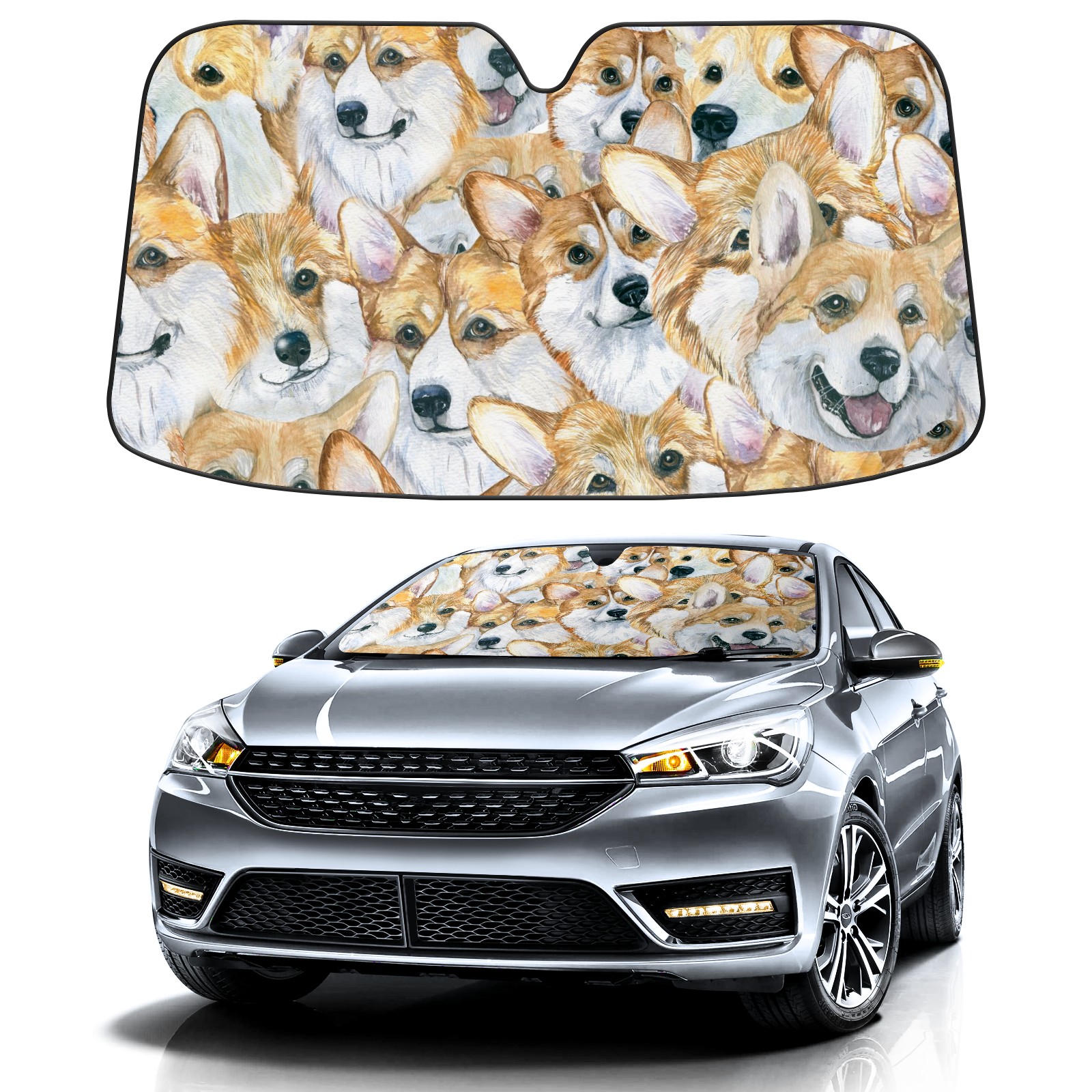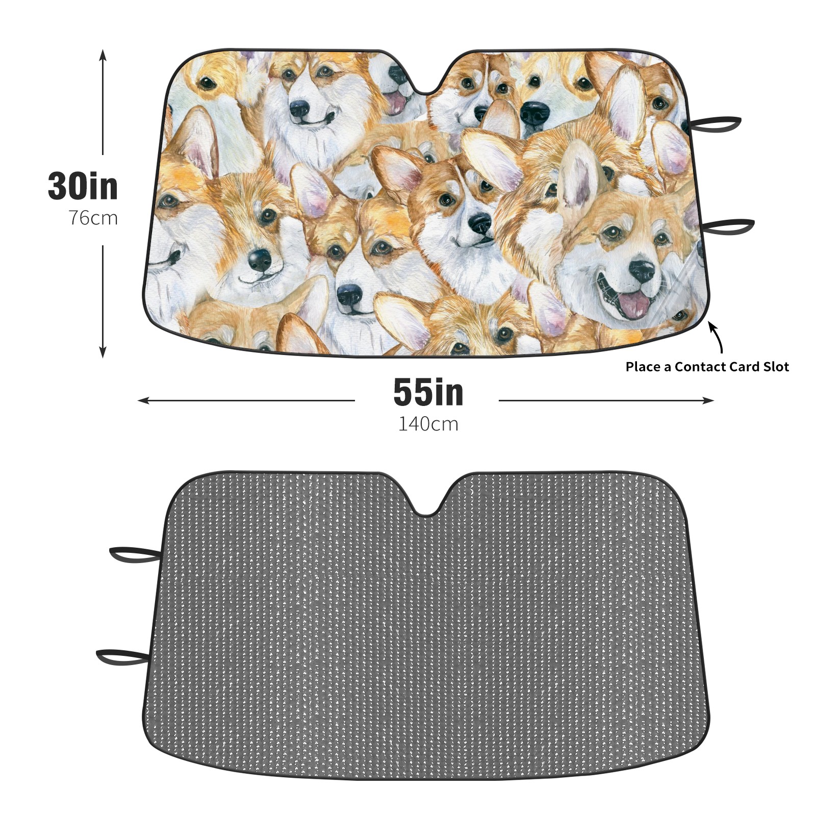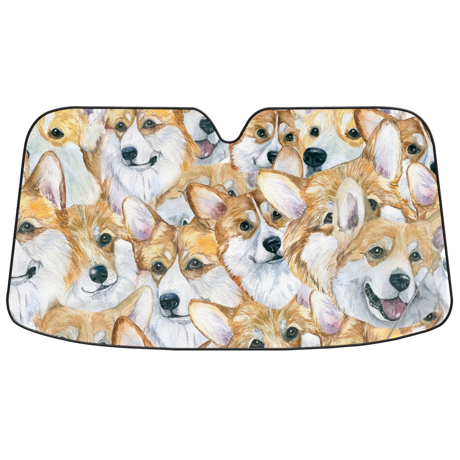 Car Windshield Sun Shade For Front Window Welsh Corgi Dog Watercolor Foldable Vehicle Windshield Car Sun Visor Covers Automotive Window Protector Car Camping Privacy Sun Blocker