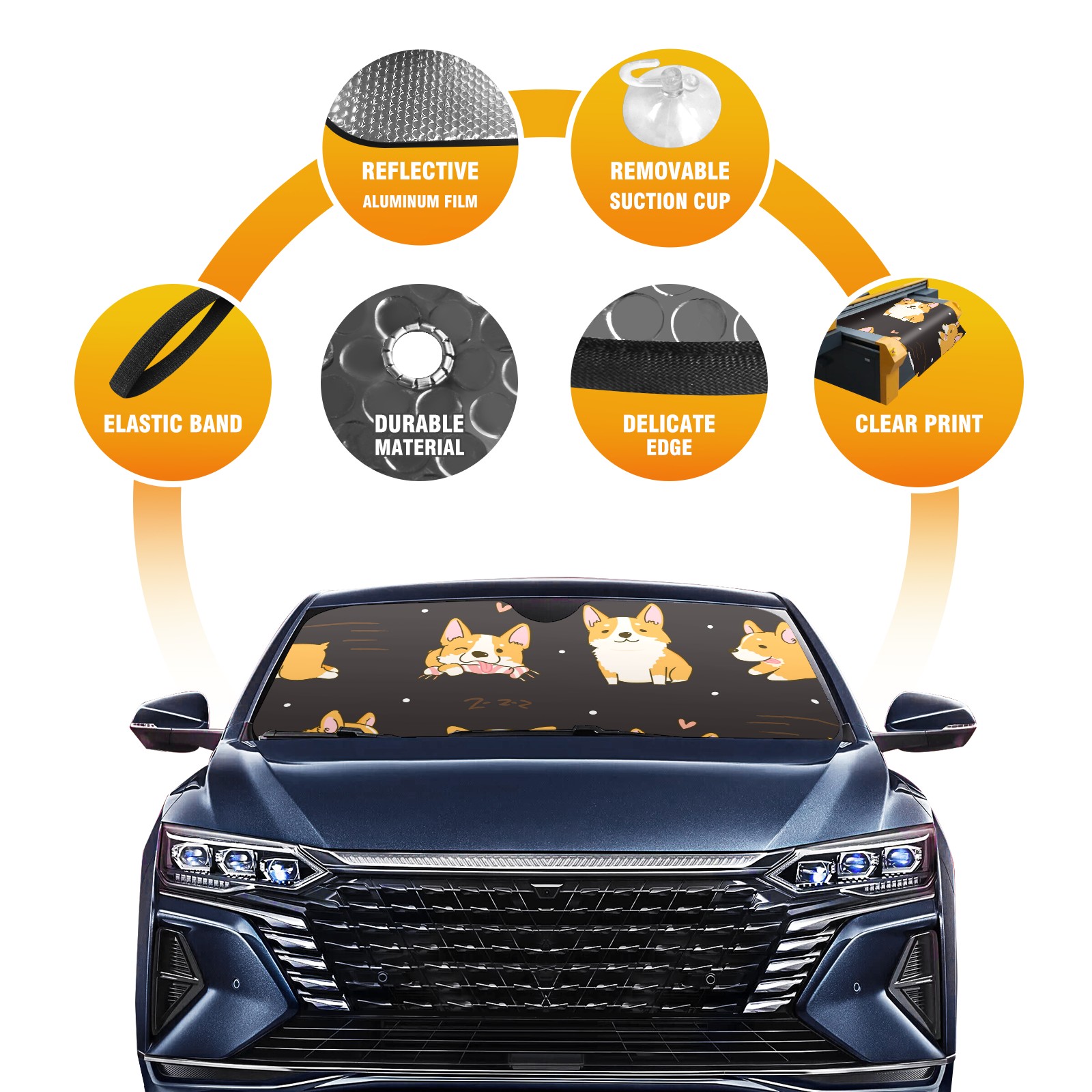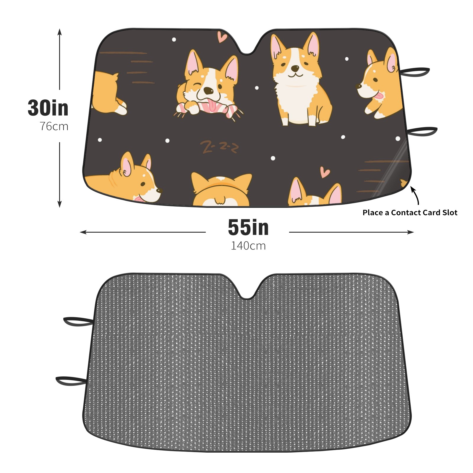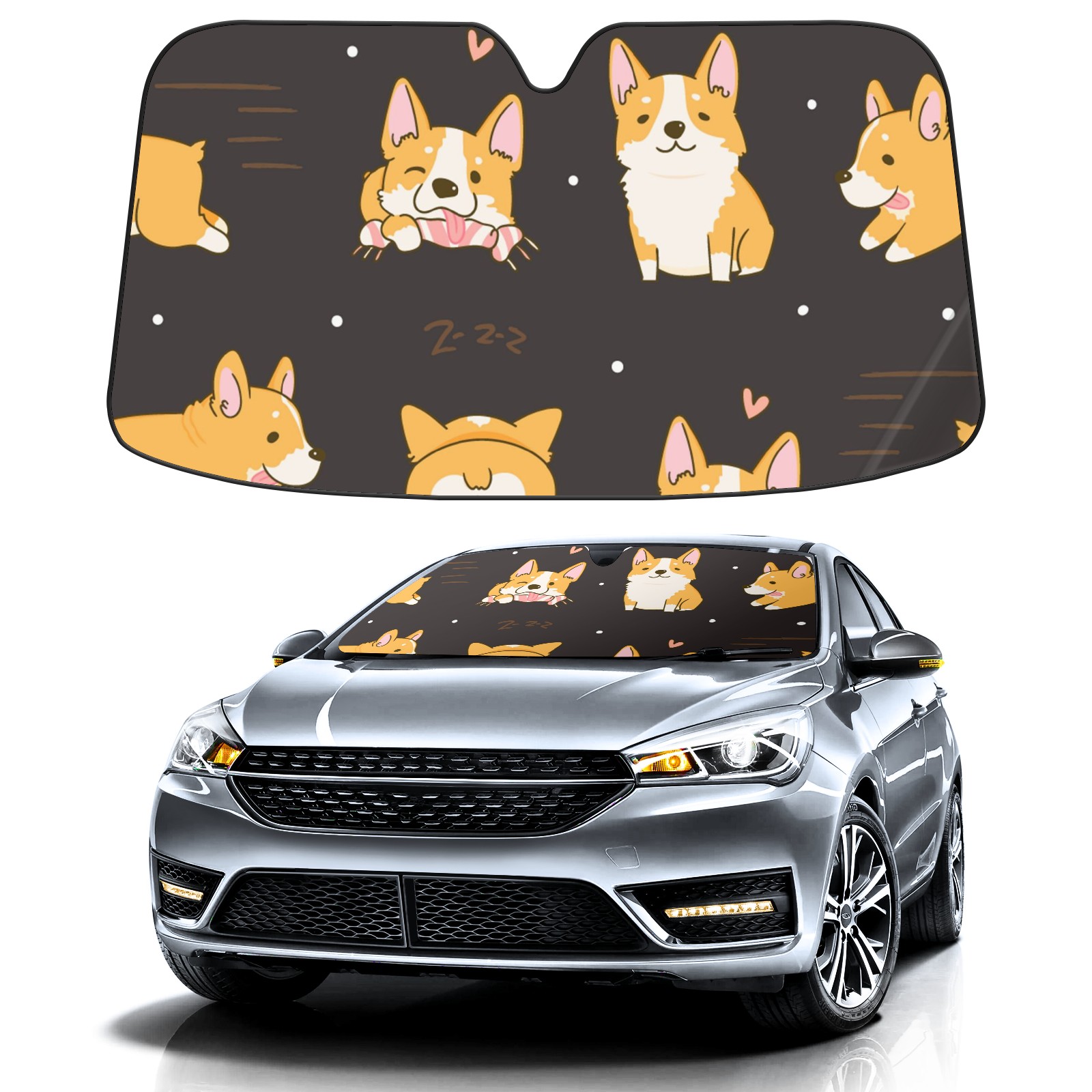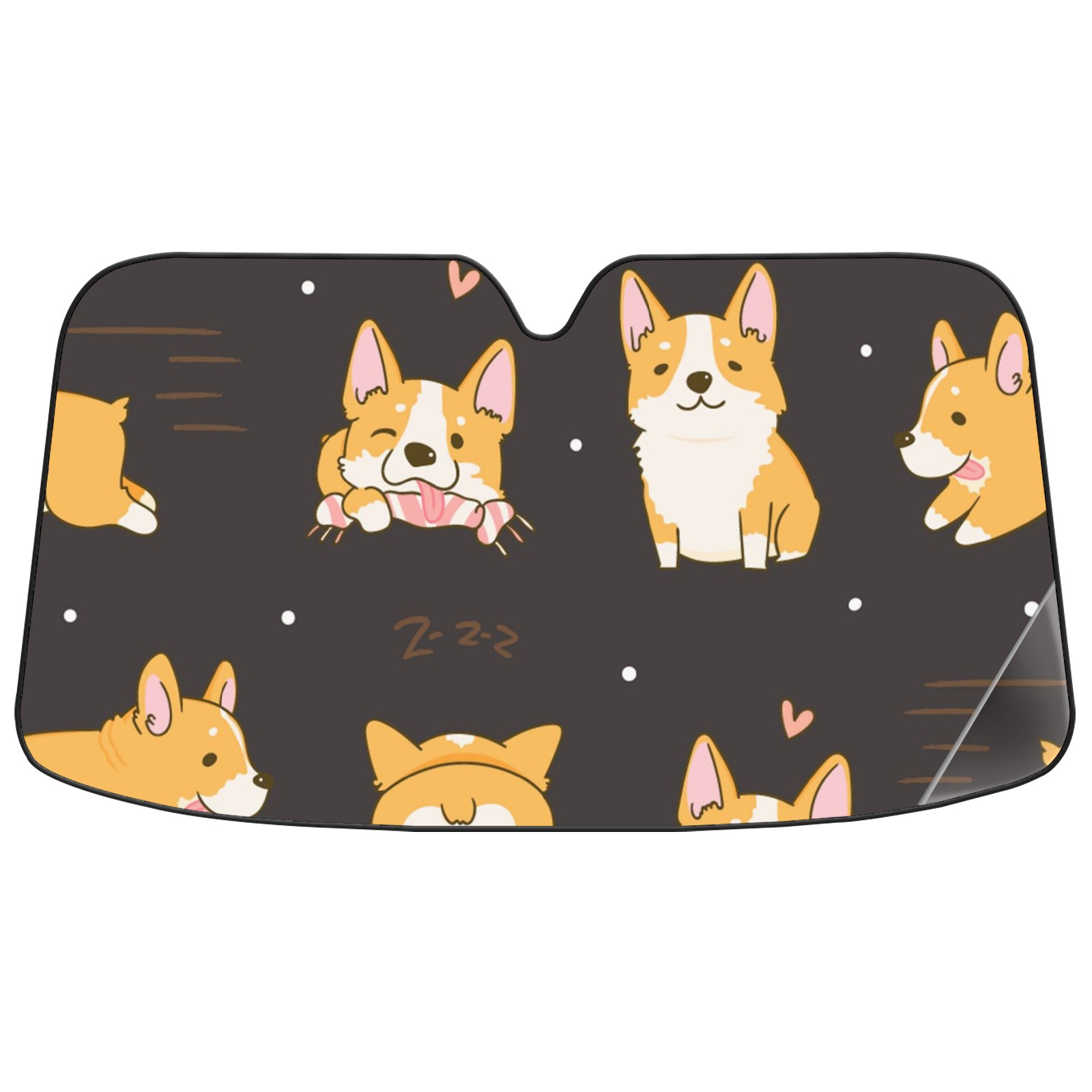 Car Windshield Sun Shade For Front Window Kawaii Corgi Dog Pattern Foldable Vehicle Windshield Car Sun Visor Covers Automotive Window Protector Car Camping Privacy Sun Blocker