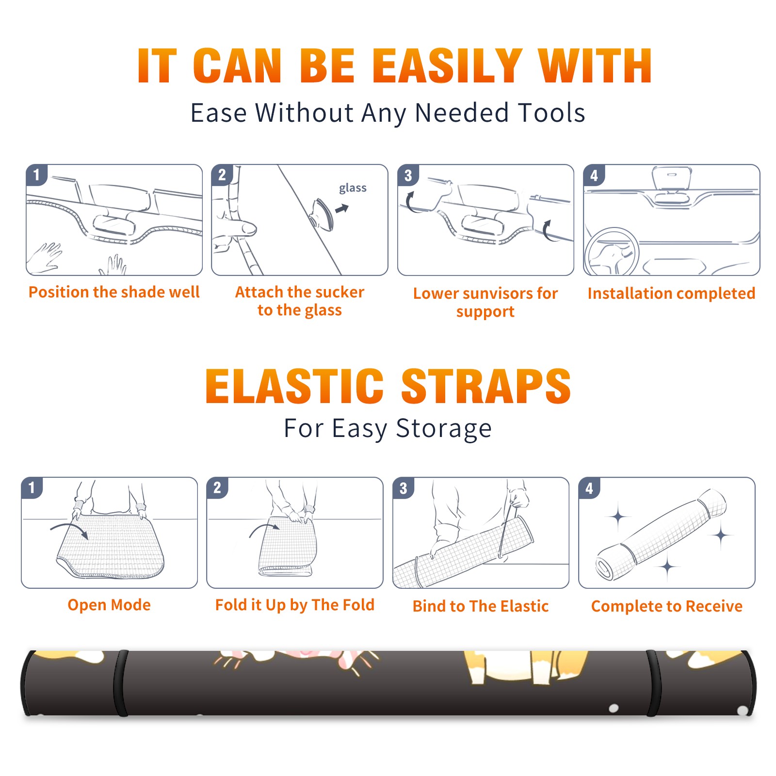 • Diameter /Size 63"L x 33.5"W Made from excellent materials which makes it sturdy and protects the car from the sun. Easy to use and pack. Makes the interior of the car cooler.You can easily stash the sunshade in the storage bag or store long term.It open and closes easy. Also the leather storage bag is durable and easy to put the umbrella back into.This windshield sunshade provides complete coverage and keeps your car interior cool under direct sun. It is easy to open and position under the windshield and around the rear-view mirror. Makes Your Car Easy To Identify, Perfect For Finding Your Car In Crowded Parking Lots And Garages.Great Choice: It Is A Great Gift For Dad, Boyfriend, Brother, Brother And Uncle, Friends, Classmates, Family And So On. Notice: Due To Difference Computer Monitors, The Color Maybe Slightly Different From Picture. As Different Measurement Methods, Measurement Data Will Float Within 2%.I Hope You Understand. If You Have Any Question About The Item Please Do Not Hesitate To Contact Us Immediately And We Will Give You A Satisfactory Reply Within 24 Hours.