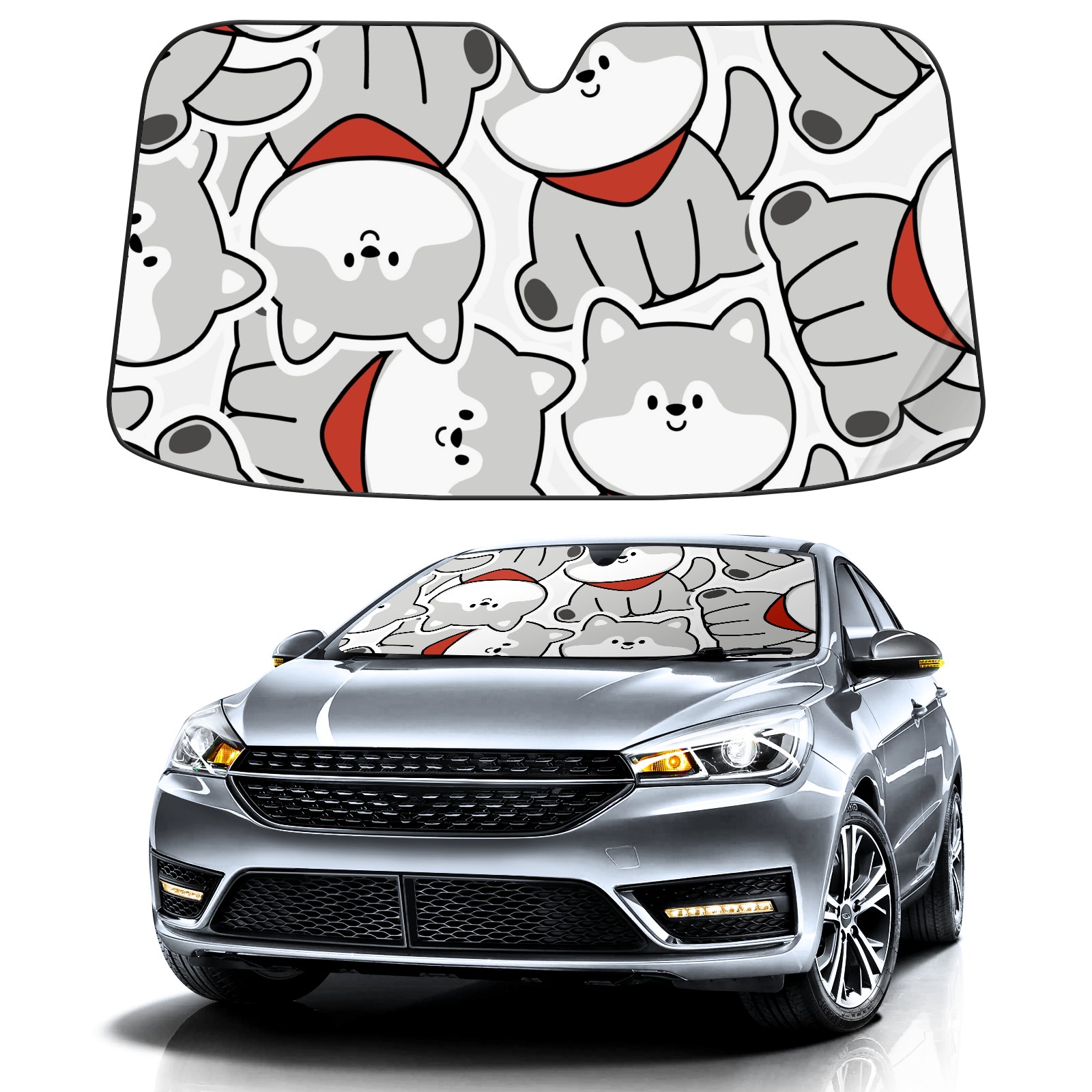 Car Windshield Sun Shade For Front Window Cute Syberia Dog Foldable Vehicle Windshield Car Sun Visor Covers Automotive Window Protector Car Camping Privacy Sun Blocker