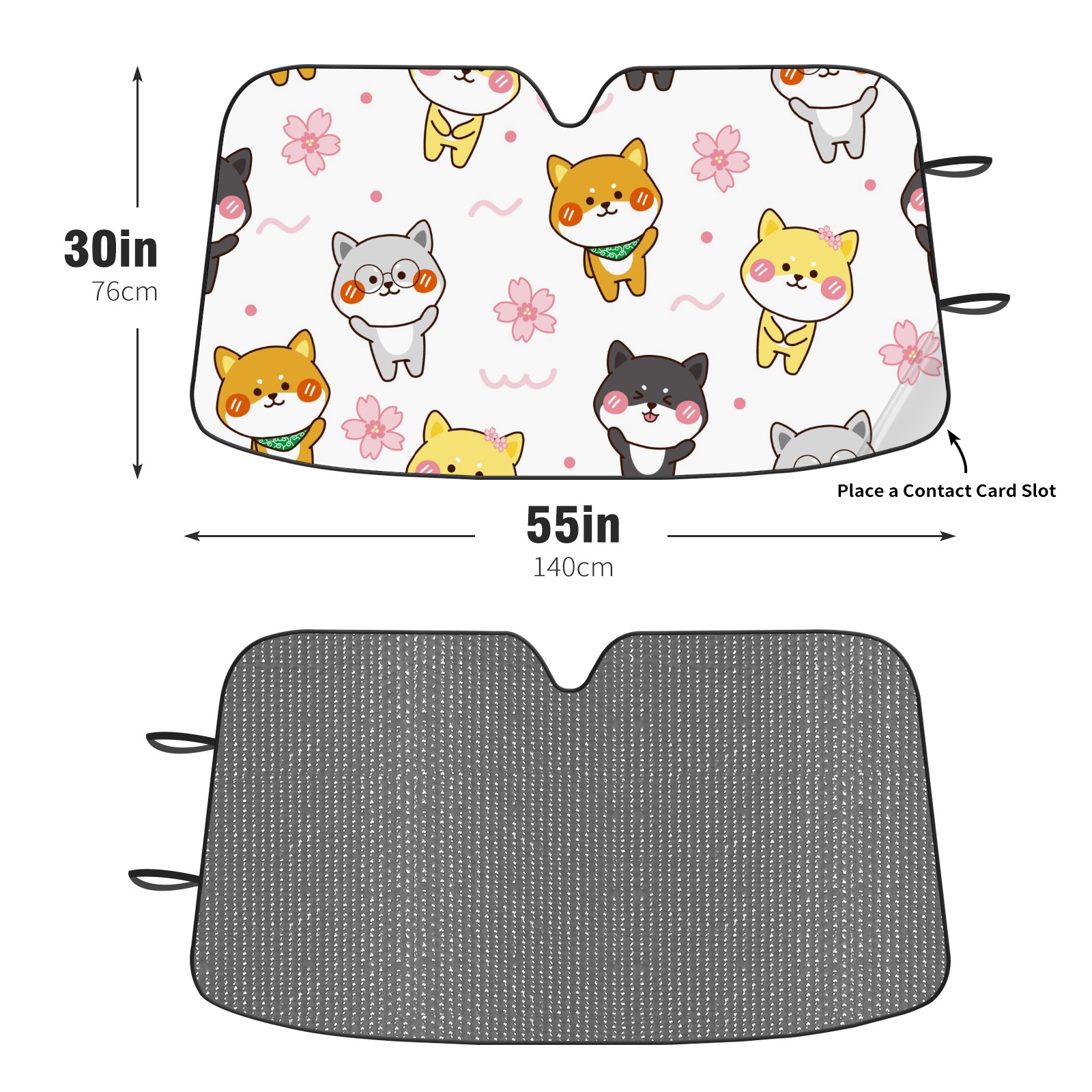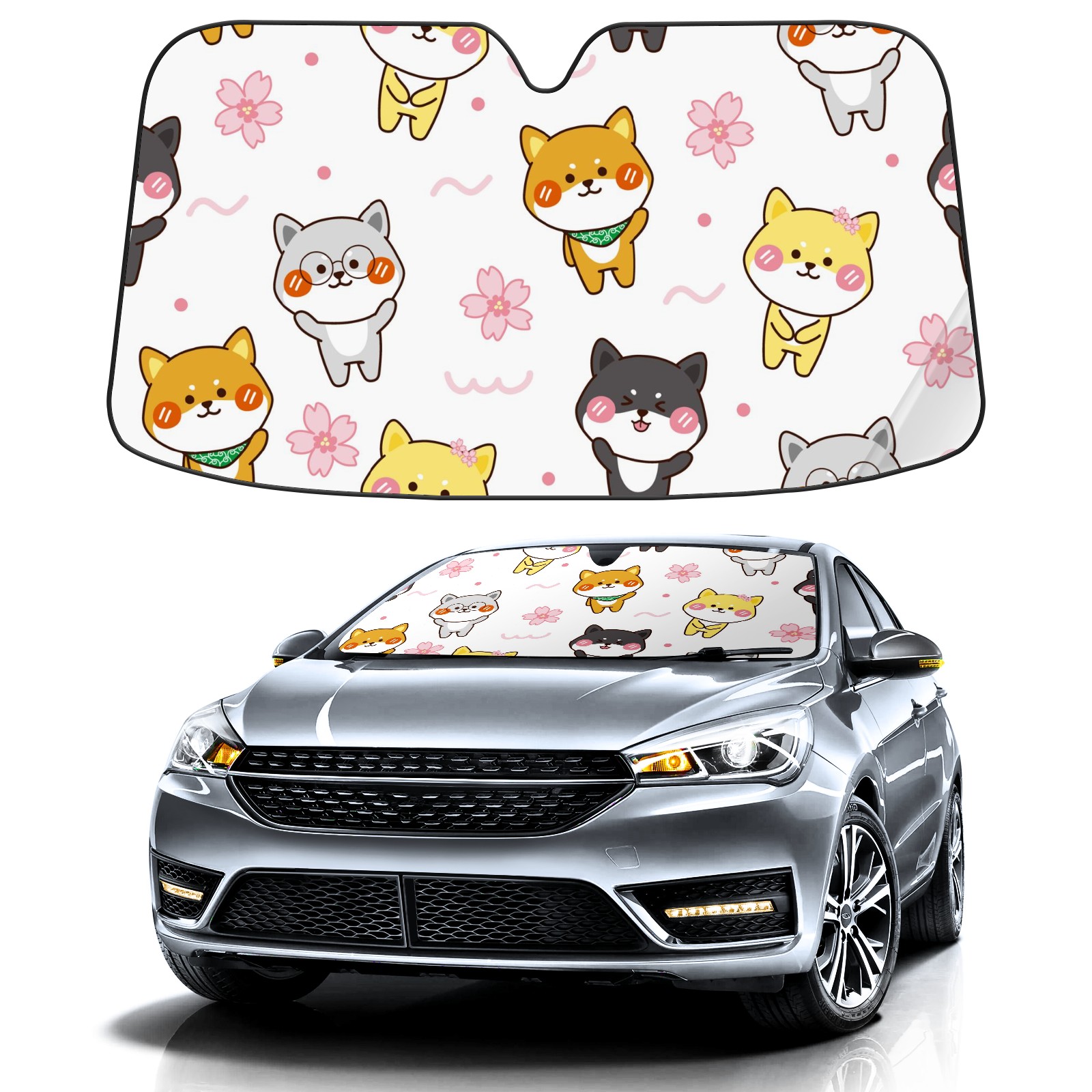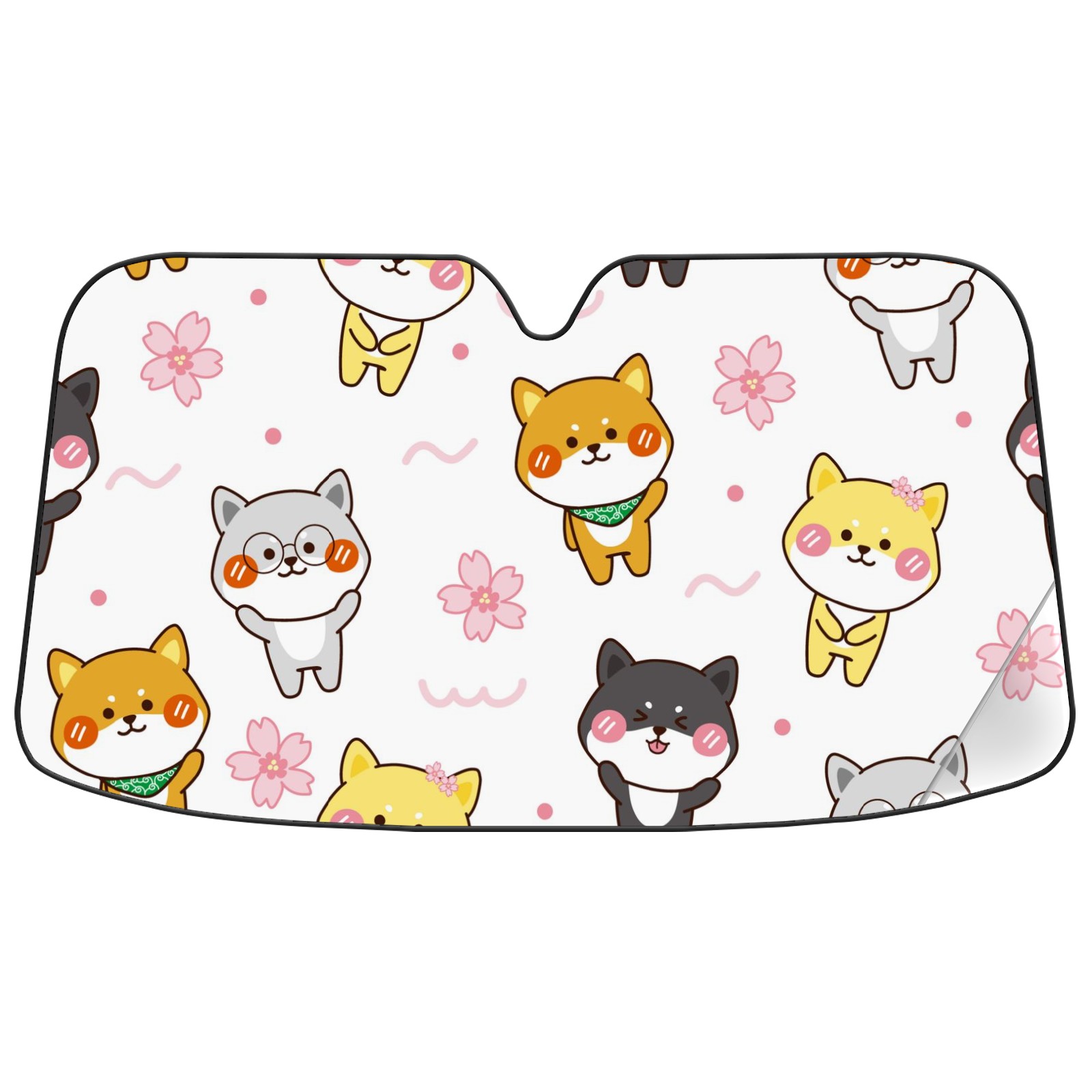 Car Windshield Sun Shade For Front Window Cute Shiba Inu Dog Sakura Flower Foldable Vehicle Windshield Car Sun Visor Covers Automotive Window Protector Car Camping Privacy Sun Blocker