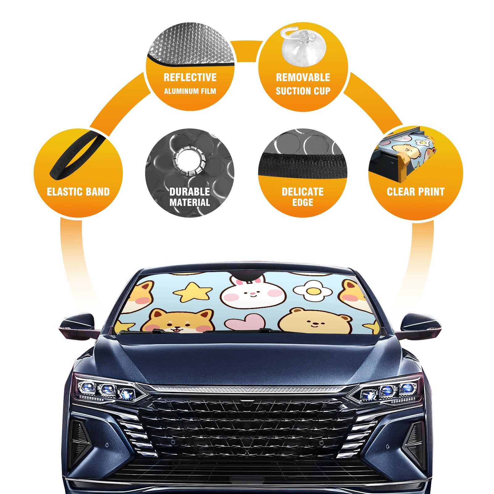Car Windshield Sun Shade For Front Window Cute Dog Rabbit Flower Star Foldable Vehicle Windshield Car Sun Visor Covers Automotive Window Protector Car Camping Privacy Sun Blocker