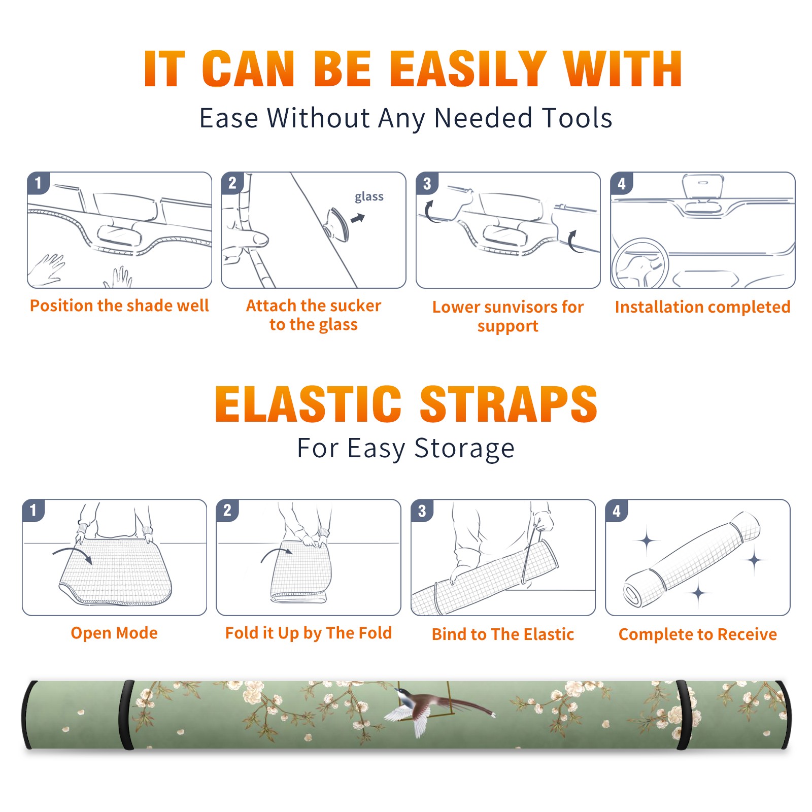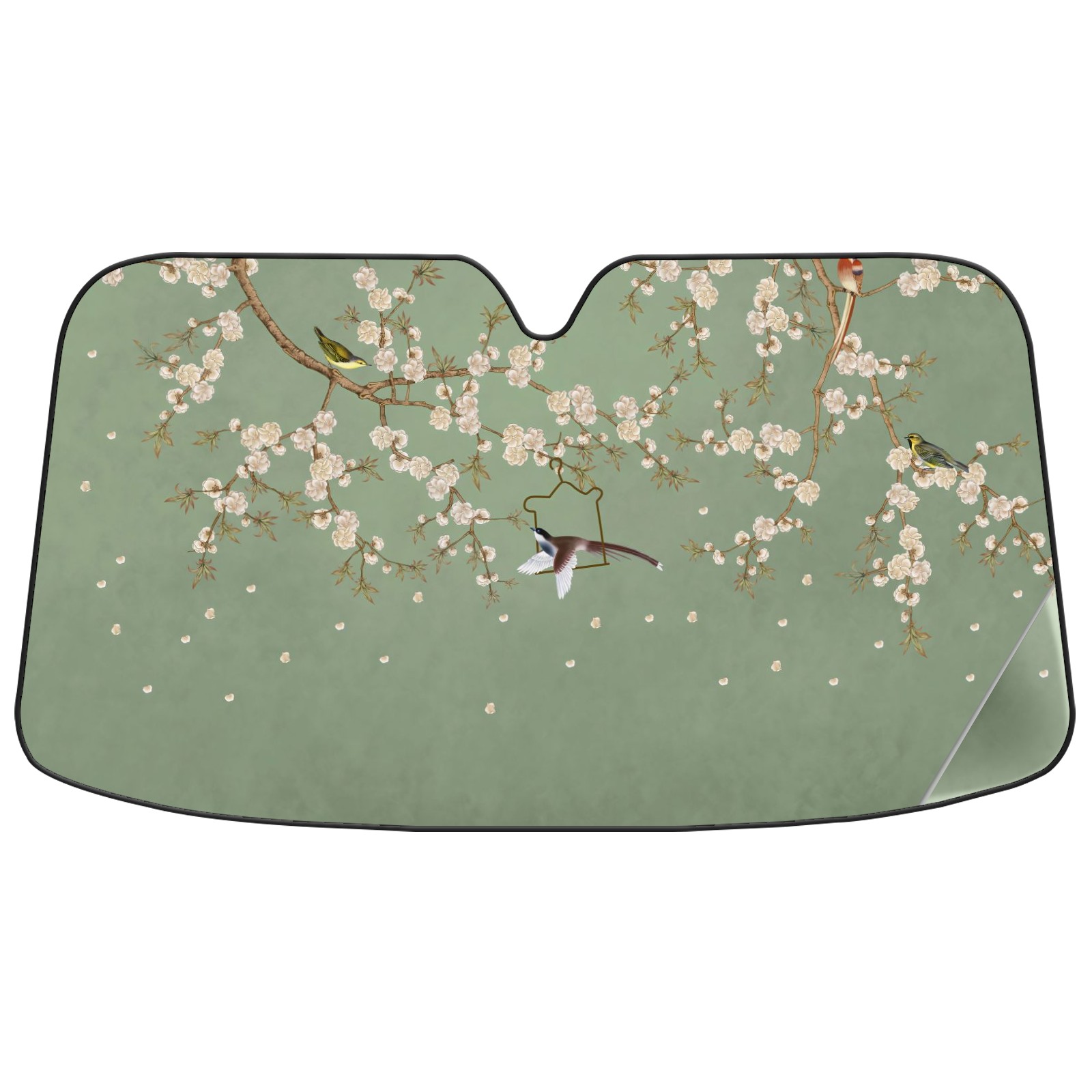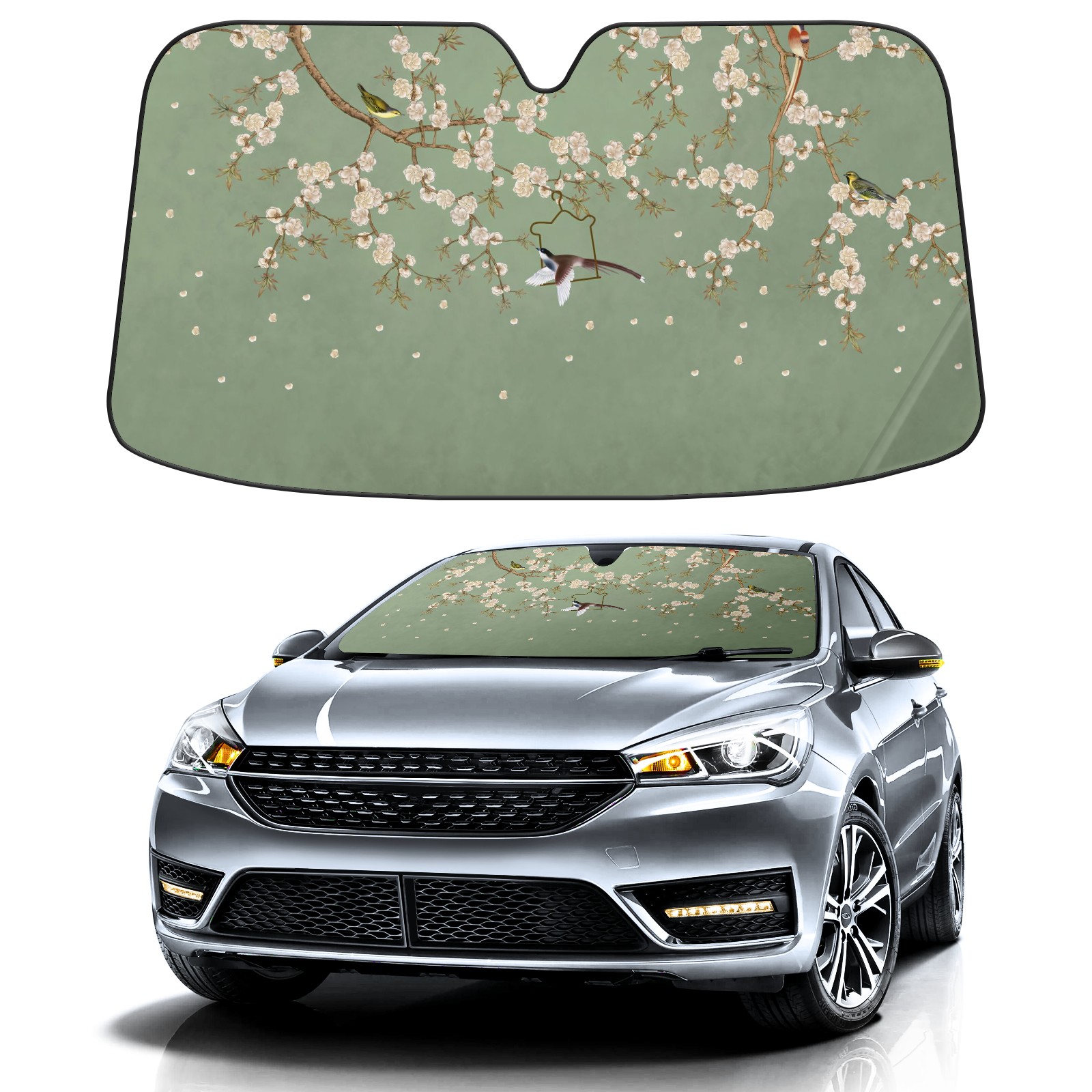 Car Windshield Sun Shade For Front Window Birds And Flower Green Background Foldable Vehicle Windshield Car Sun Visor Covers Automotive Window Protector Car Camping Privacy Sun Blocker