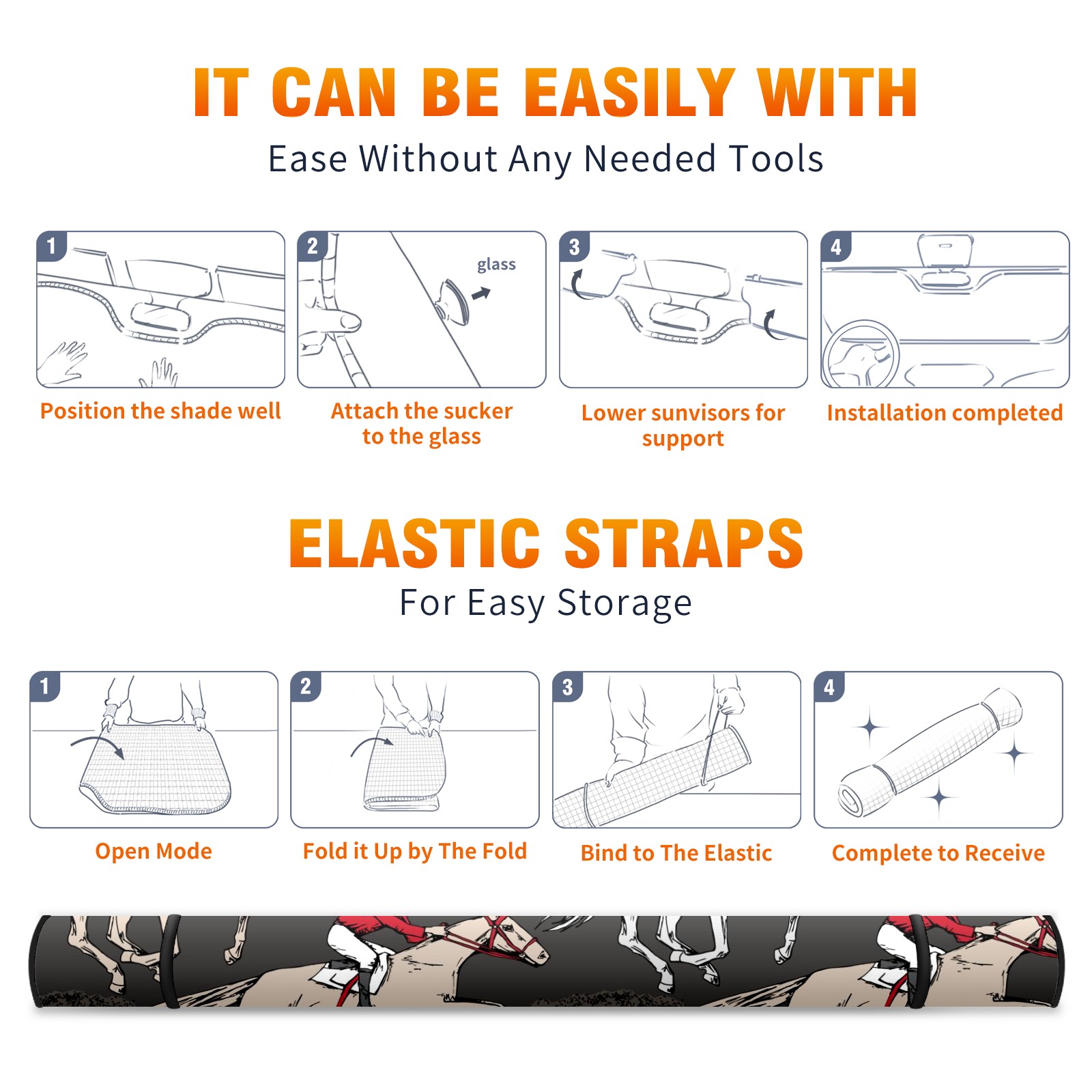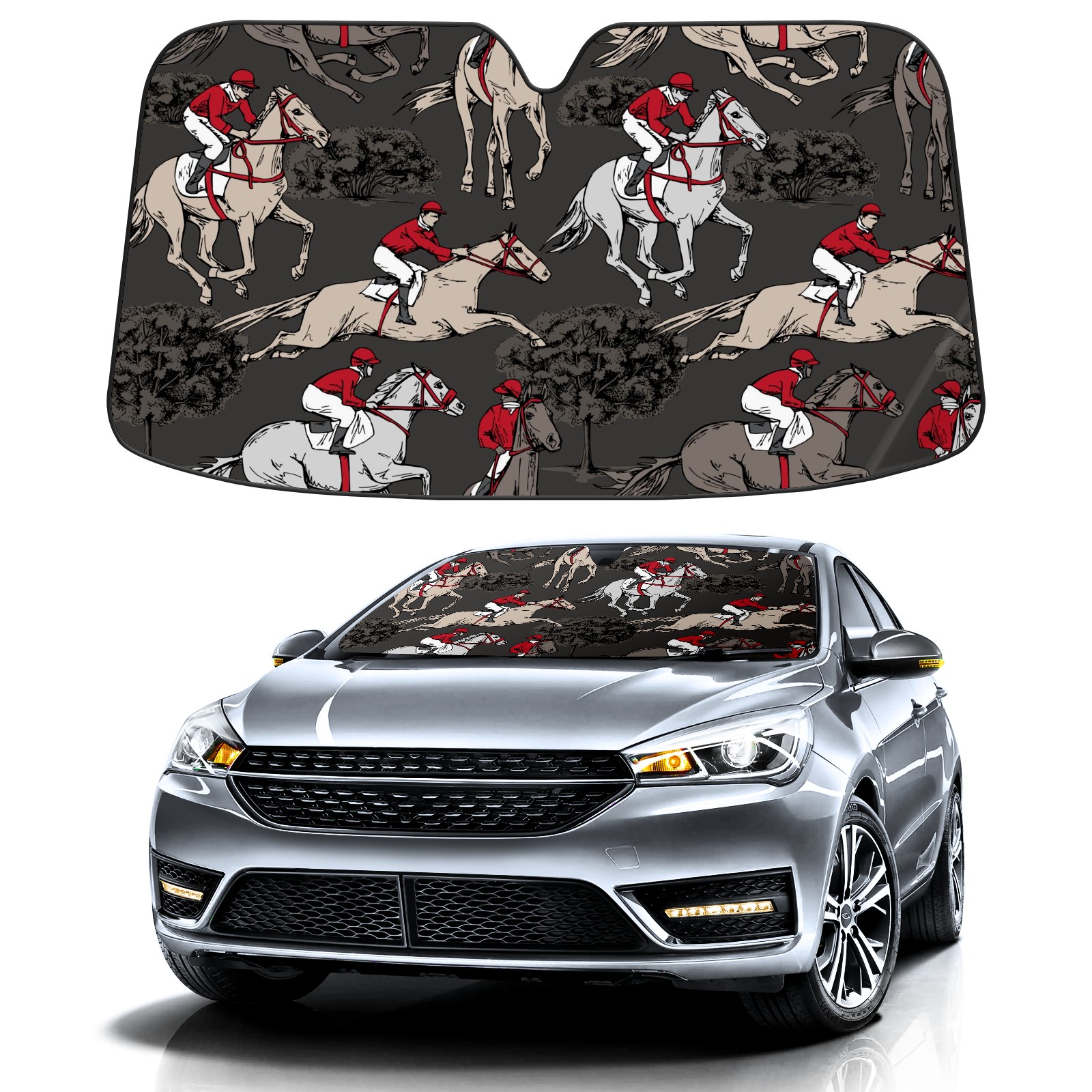 Car Windshield Sun Shade For Front Window Horses Riders Trees Foldable Vehicle Windshield Car Sun Visor Covers Automotive Window Protector Car Camping Privacy Sun Blocker