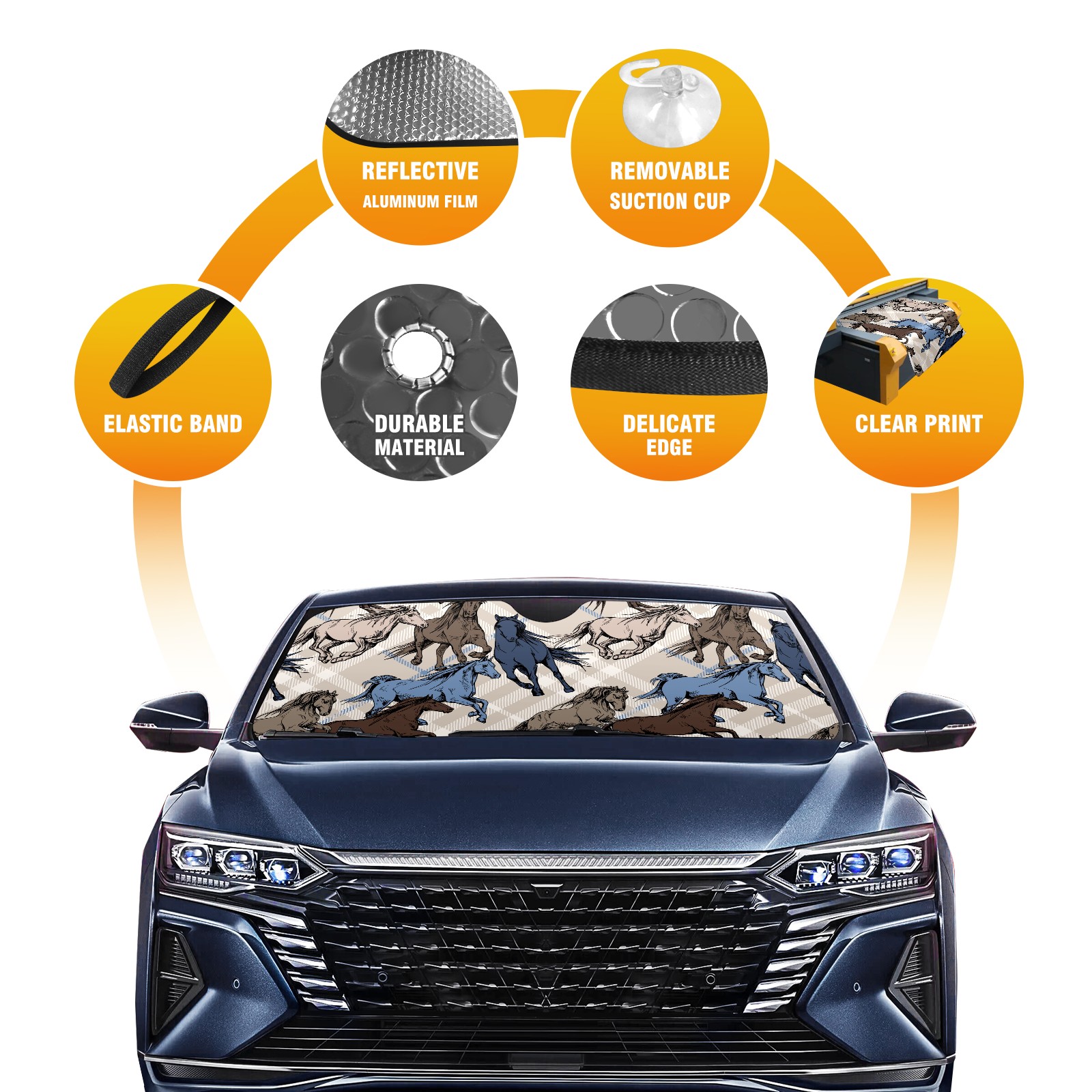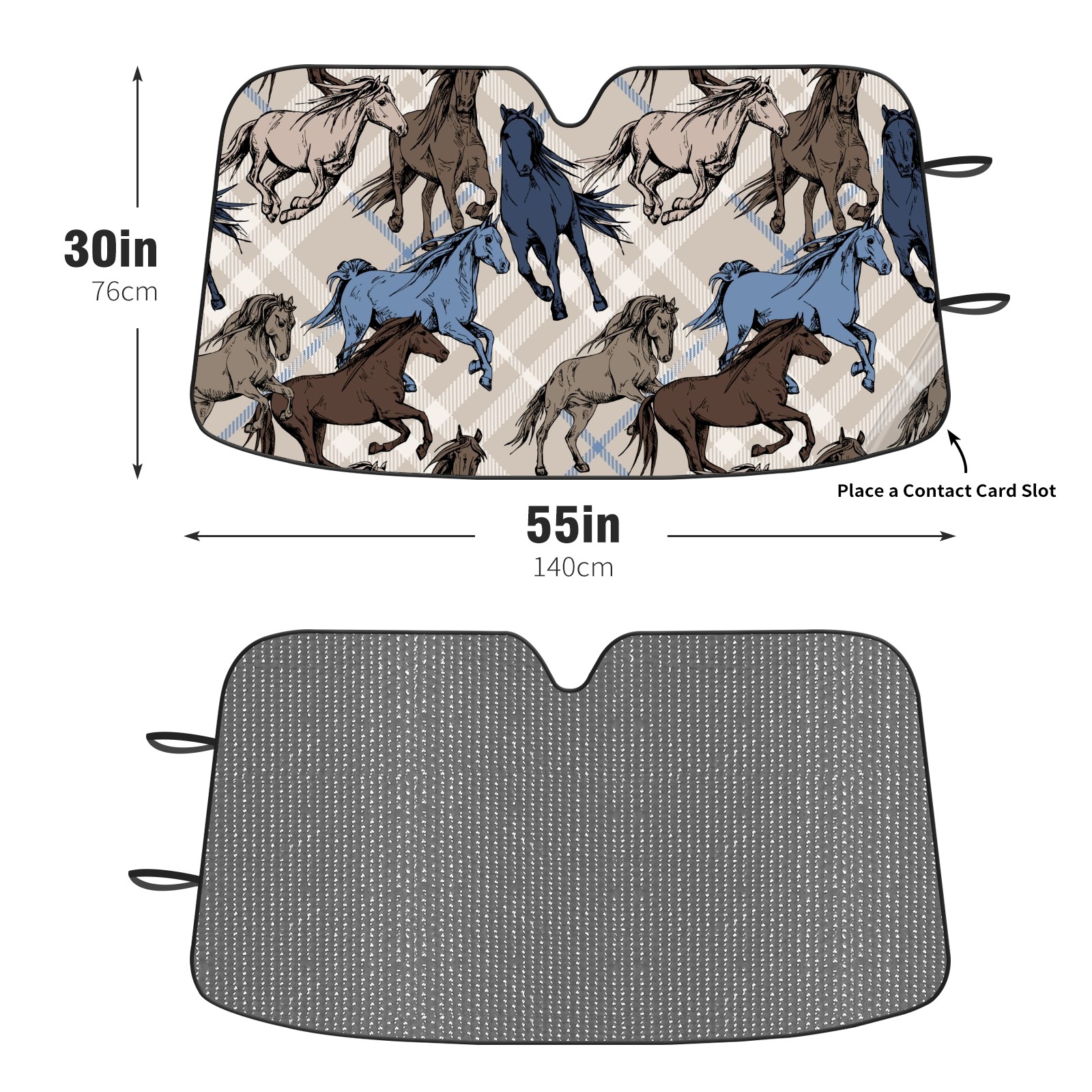 Car Windshield Sun Shade For Front Window Brown And Blue Horses On Checkered Background Foldable Vehicle Windshield Car Sun Visor Covers Automotive Window Protector Car Camping Privacy Sun Blocker