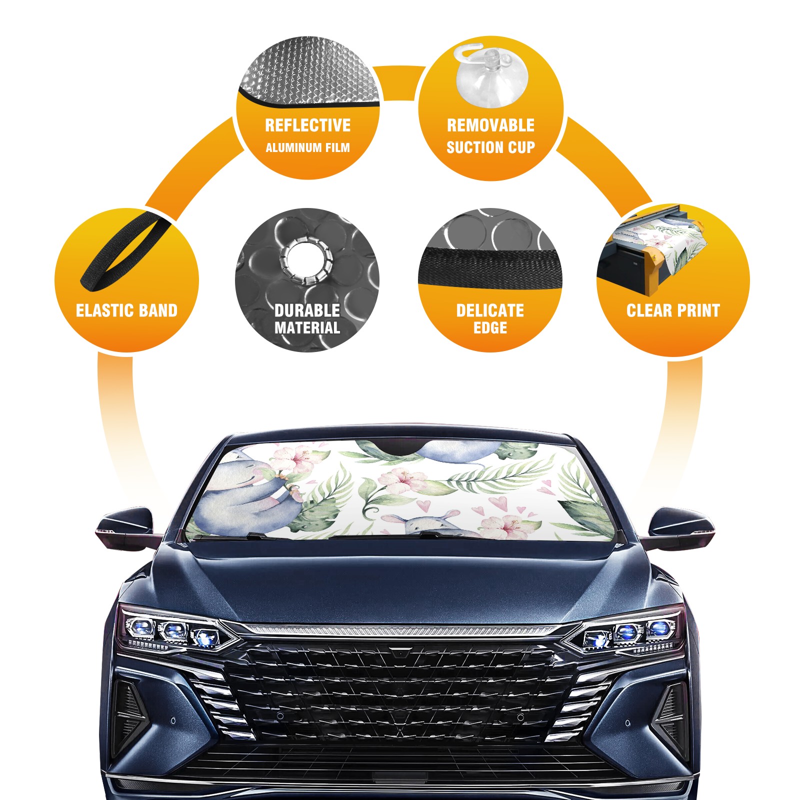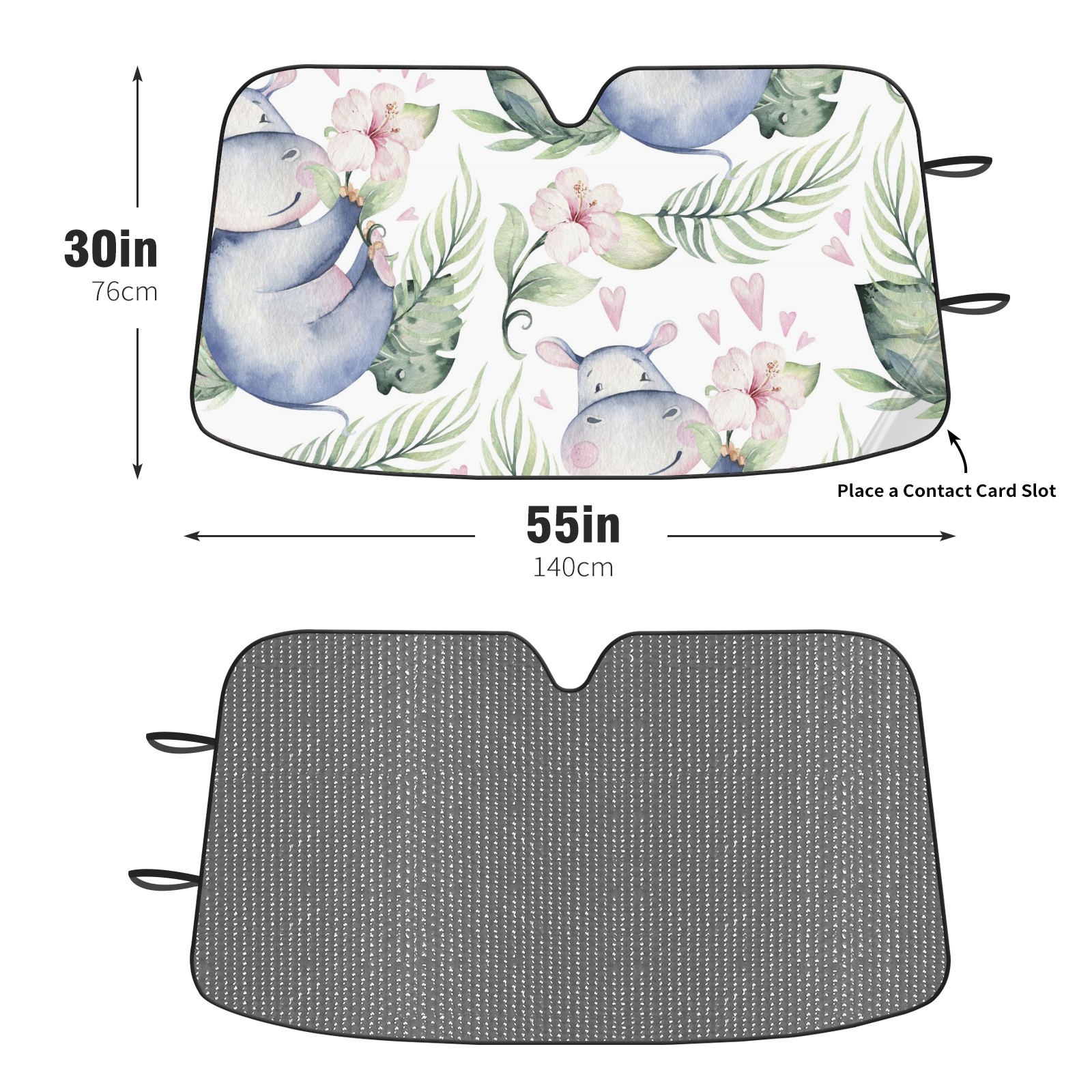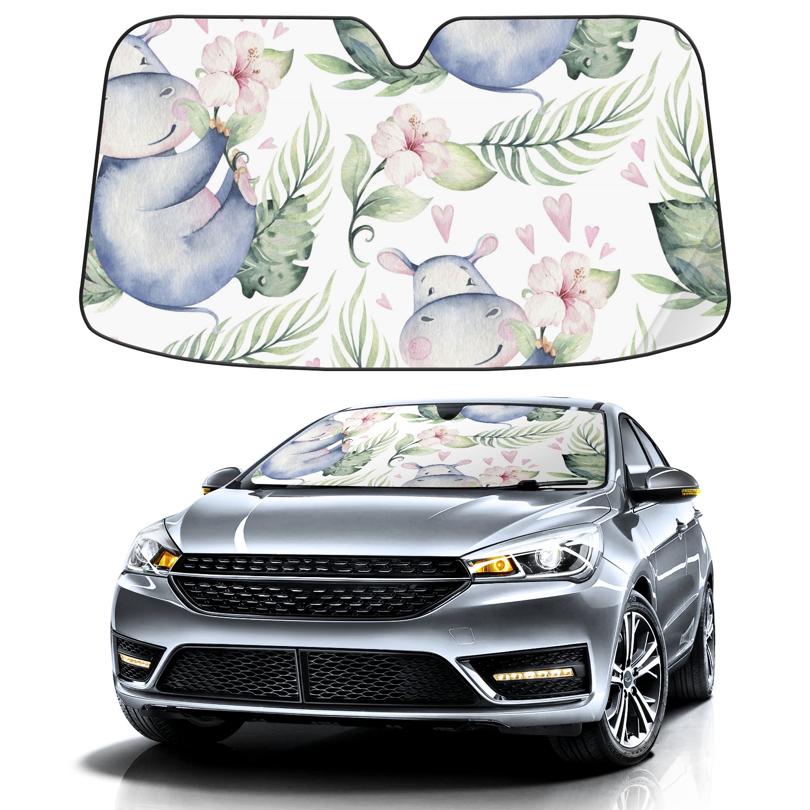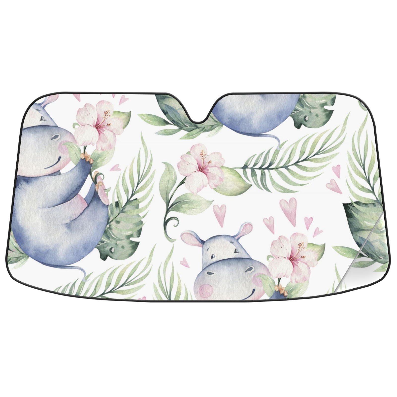 Car Windshield Sun Shade For Front Window Tropical Cute Hippo Flower Foldable Vehicle Windshield Car Sun Visor Covers Automotive Window Protector Car Camping Privacy Sun Blocker