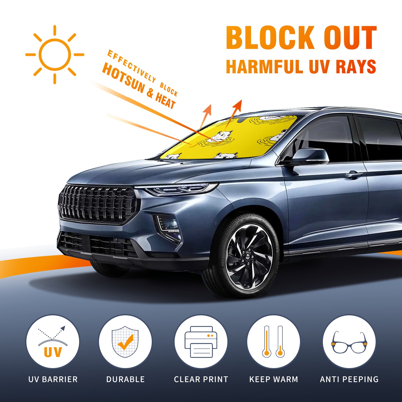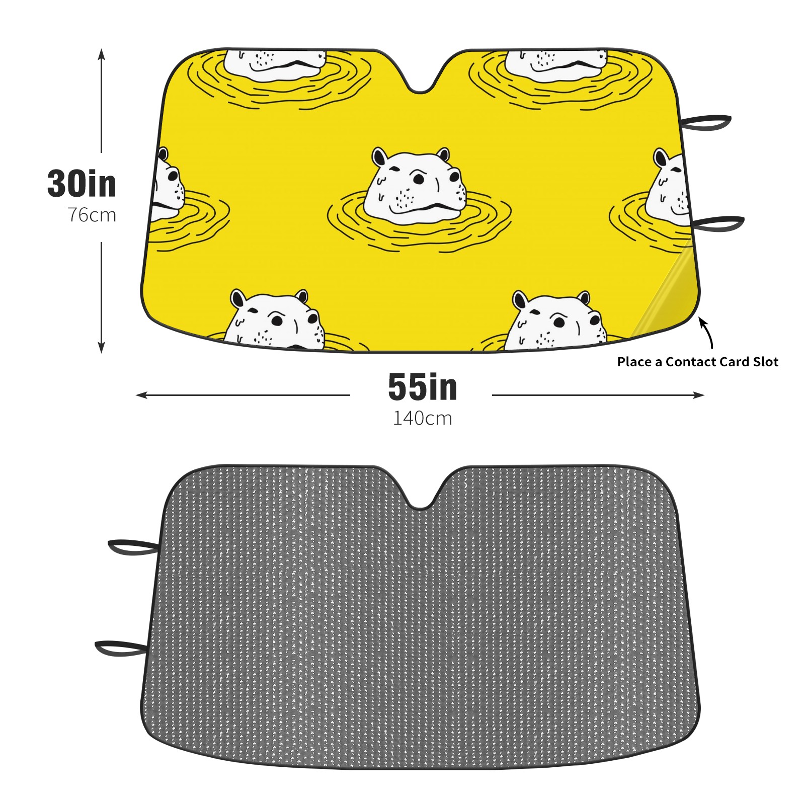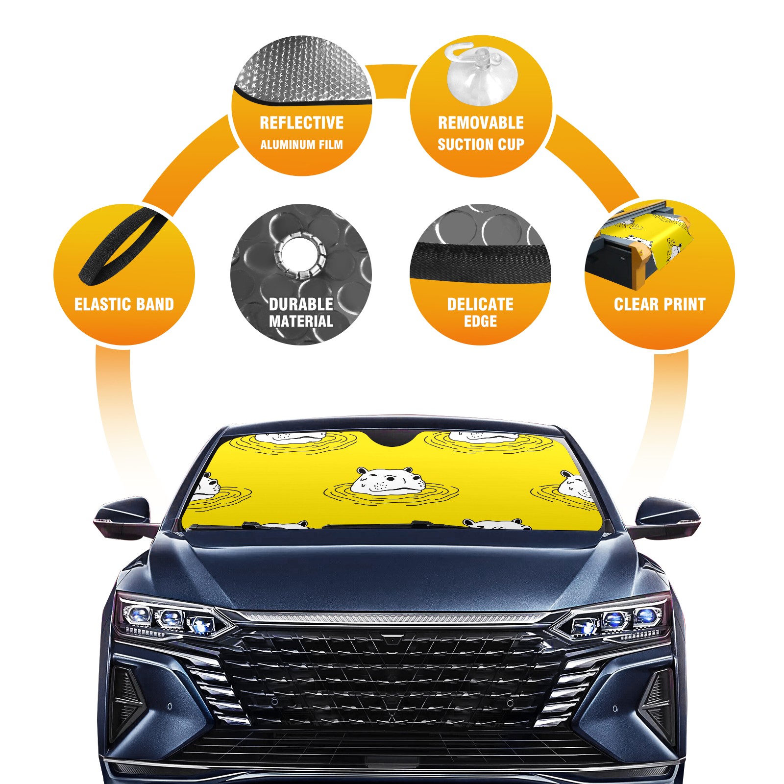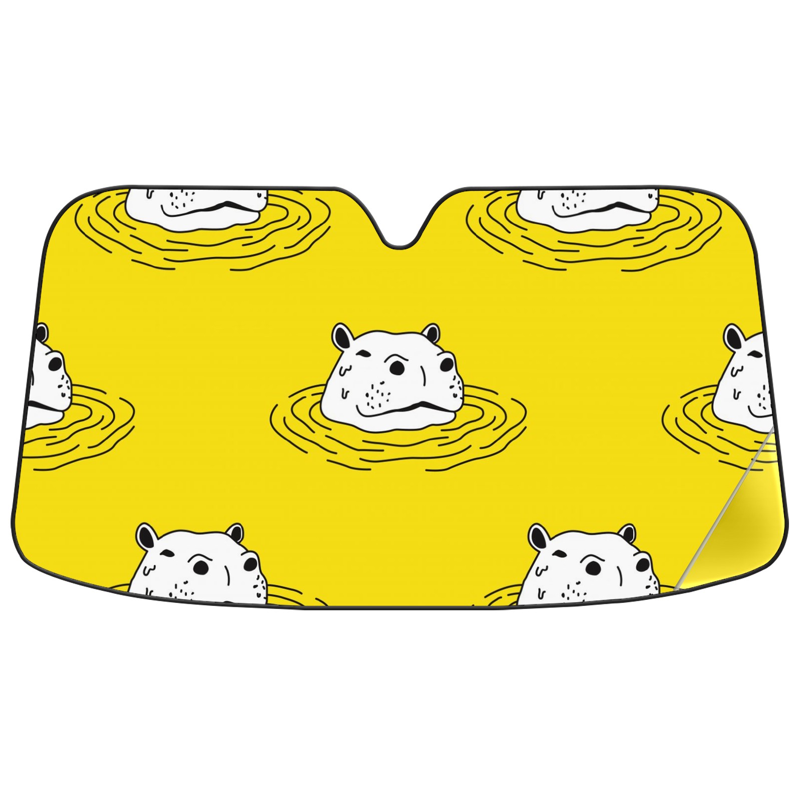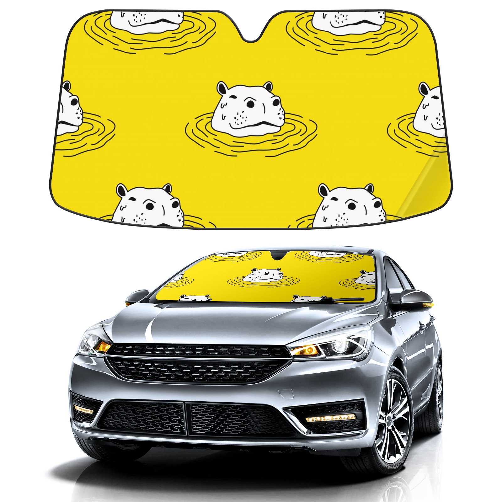 Car Windshield Sun Shade For Front Window Cute Hippo On Yellow Background Foldable Vehicle Windshield Car Sun Visor Covers Automotive Window Protector Car Camping Privacy Sun Blocker