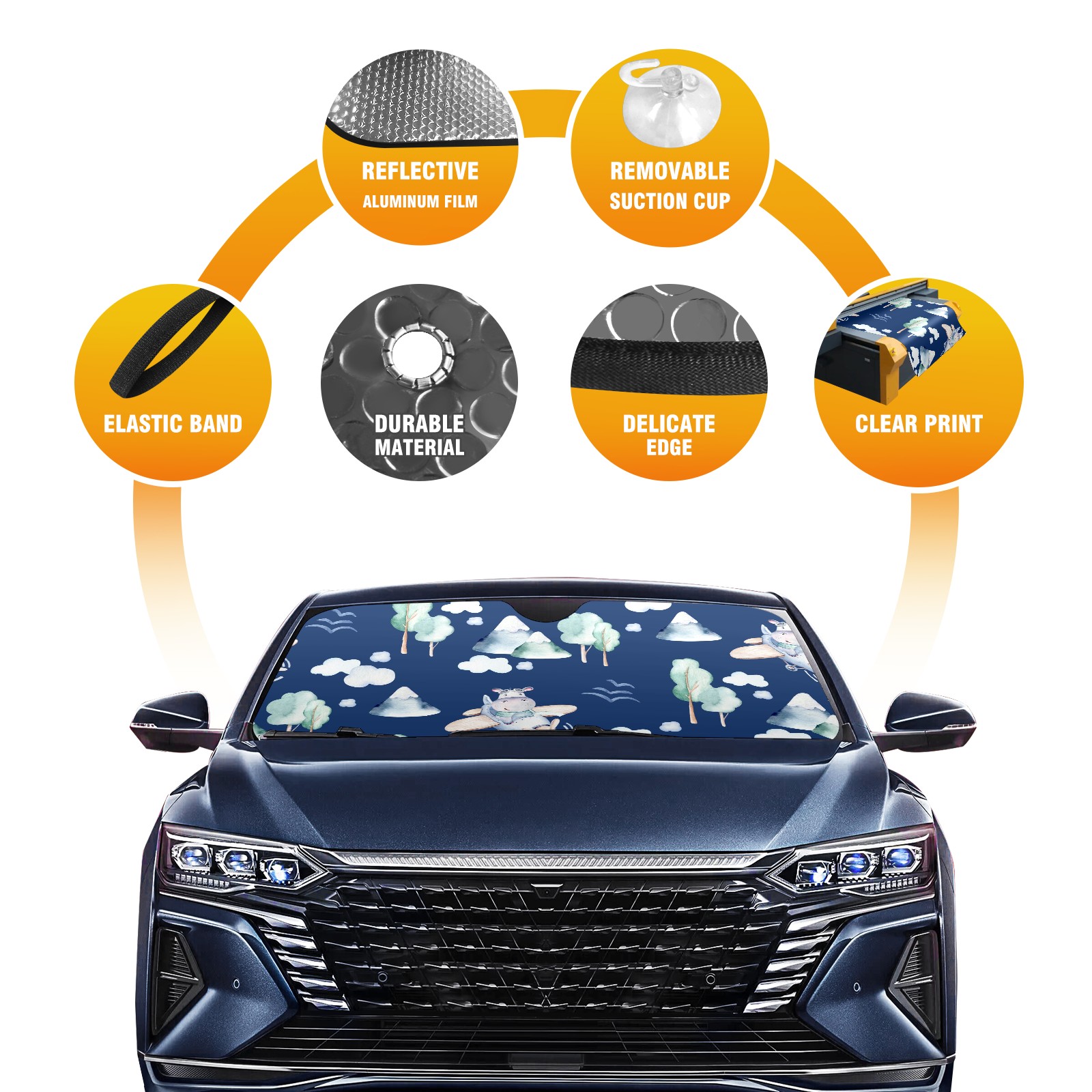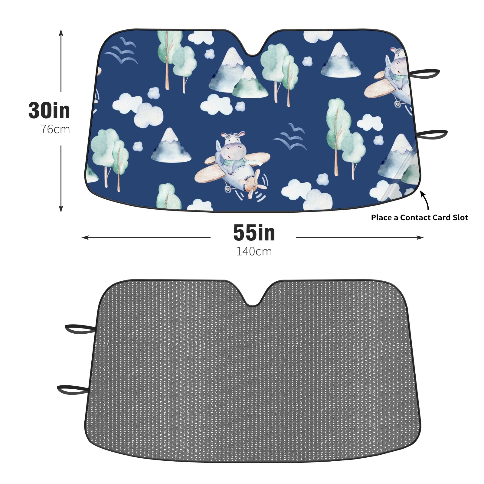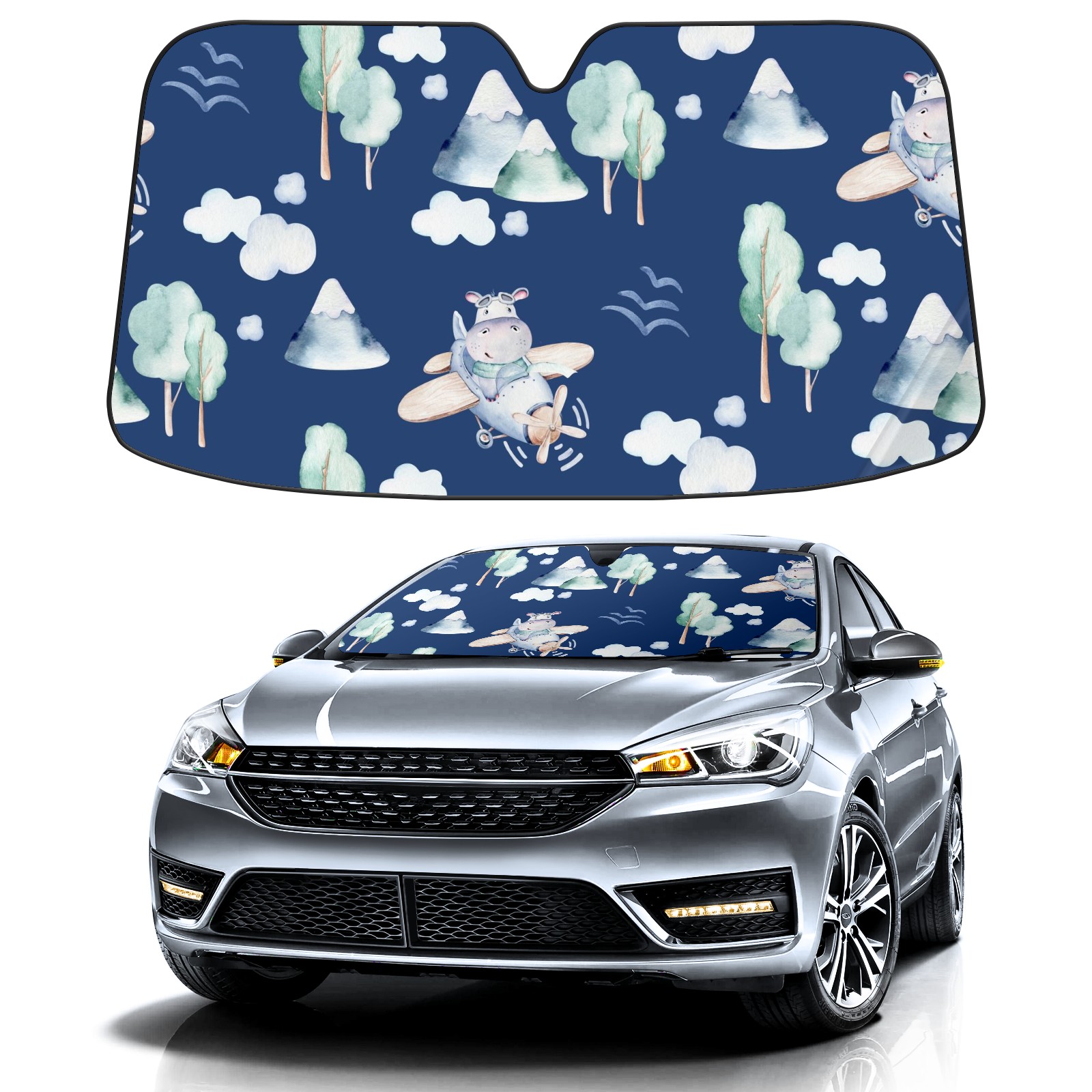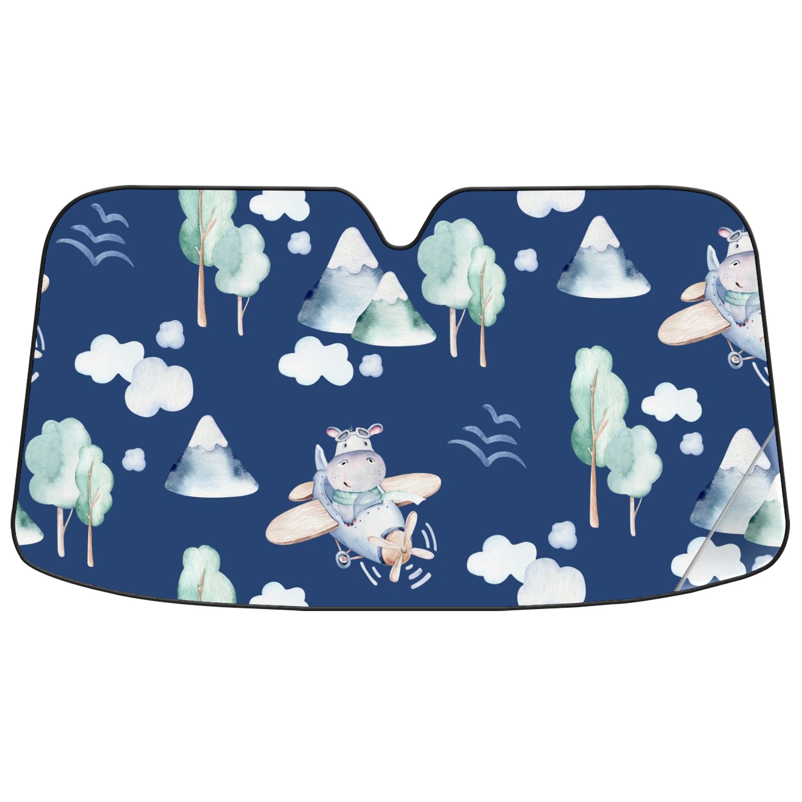 Car Windshield Sun Shade For Front Window Cute Hippo Plane Foldable Vehicle Windshield Car Sun Visor Covers Automotive Window Protector Car Camping Privacy Sun Blocker