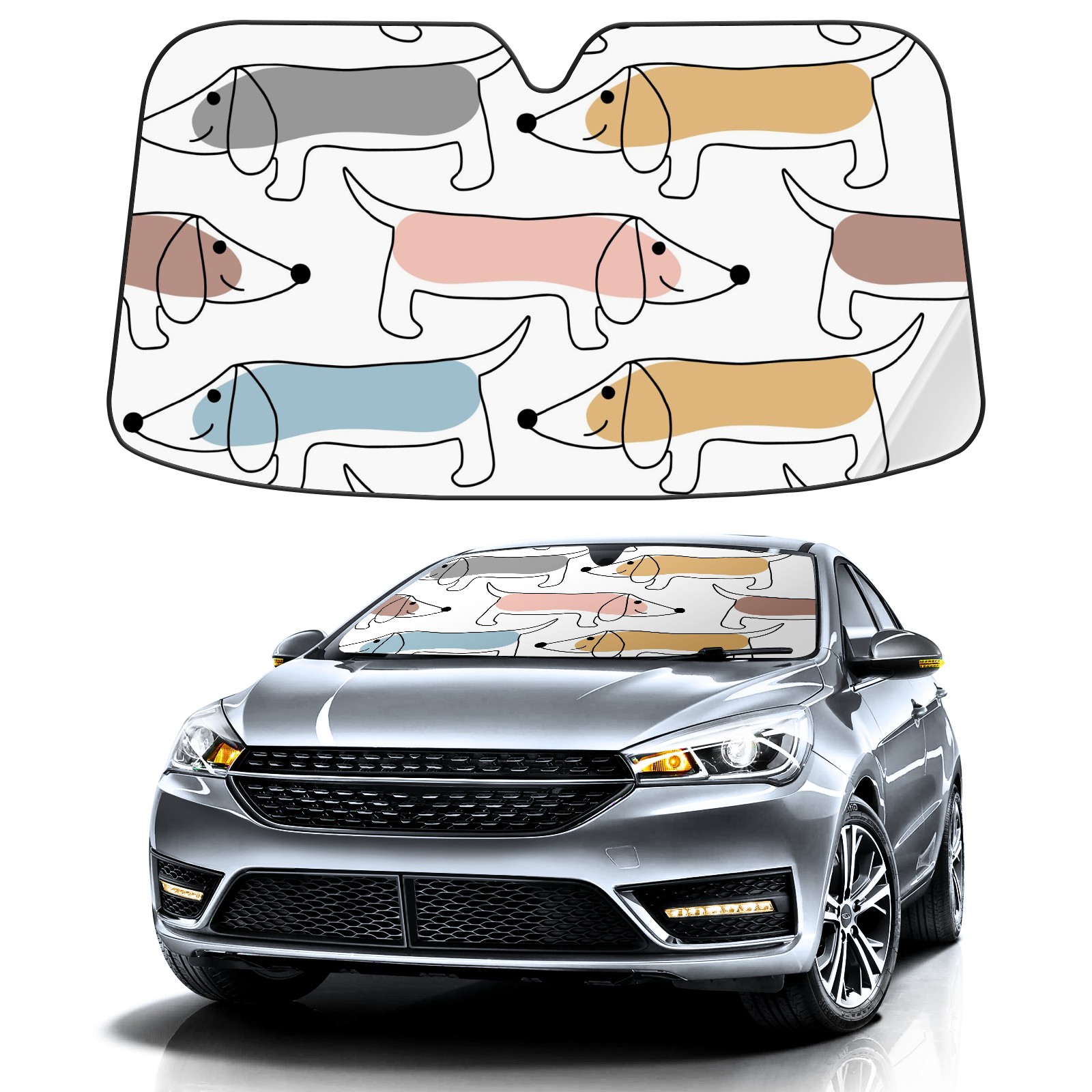 Car Windshield Sun Shade For Front Window Cute Abstract Dachshund Dog Foldable Vehicle Windshield Car Sun Visor Covers Automotive Window Protector Car Camping Privacy Sun Blocker