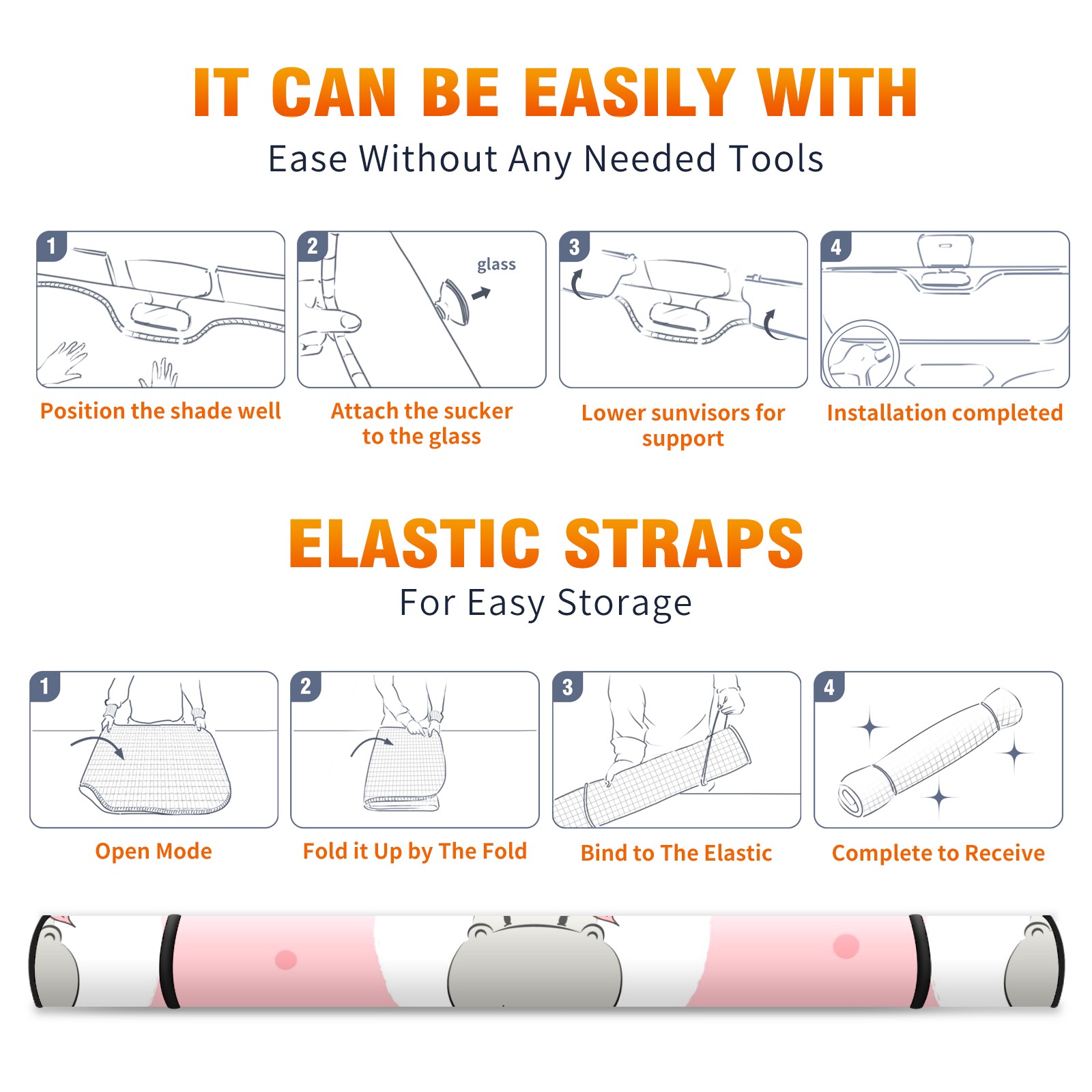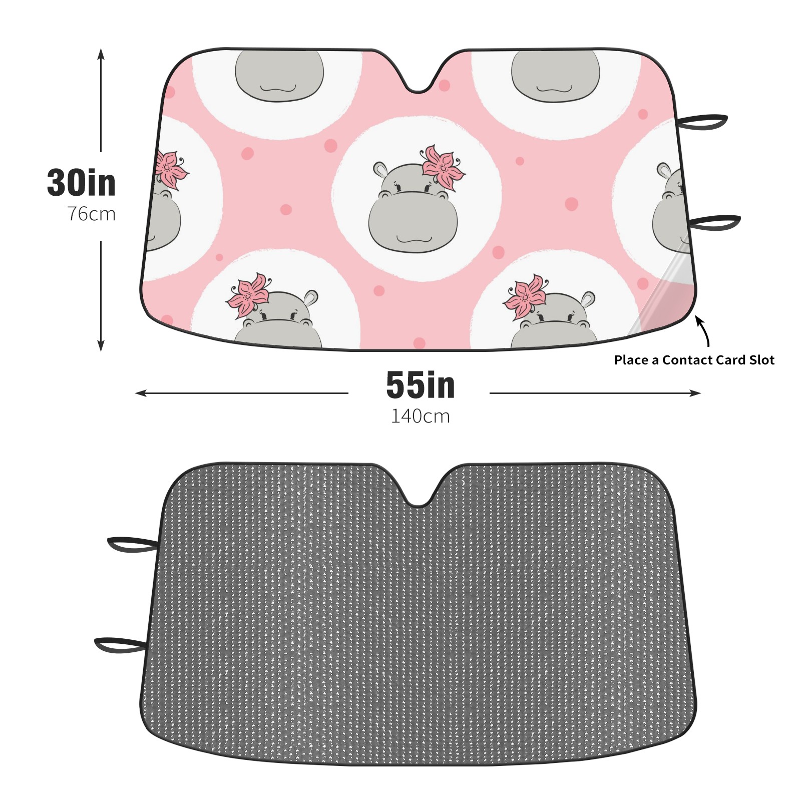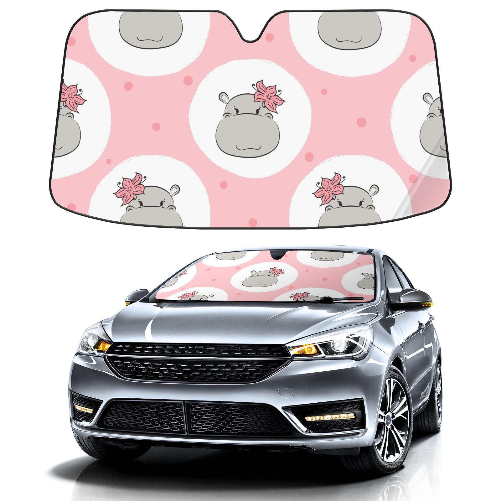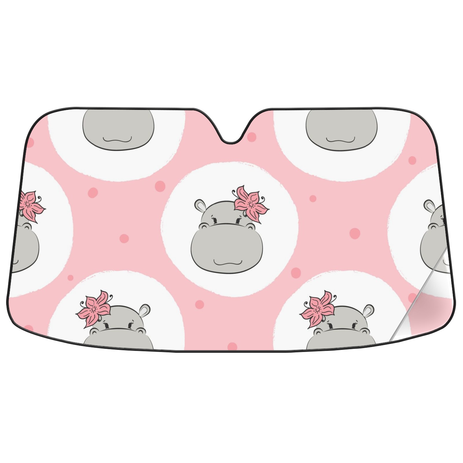 Car Windshield Sun Shade For Front Window Cute Hippo Flower On Pink Background Foldable Vehicle Windshield Car Sun Visor Covers Automotive Window Protector Car Camping Privacy Sun Blocker