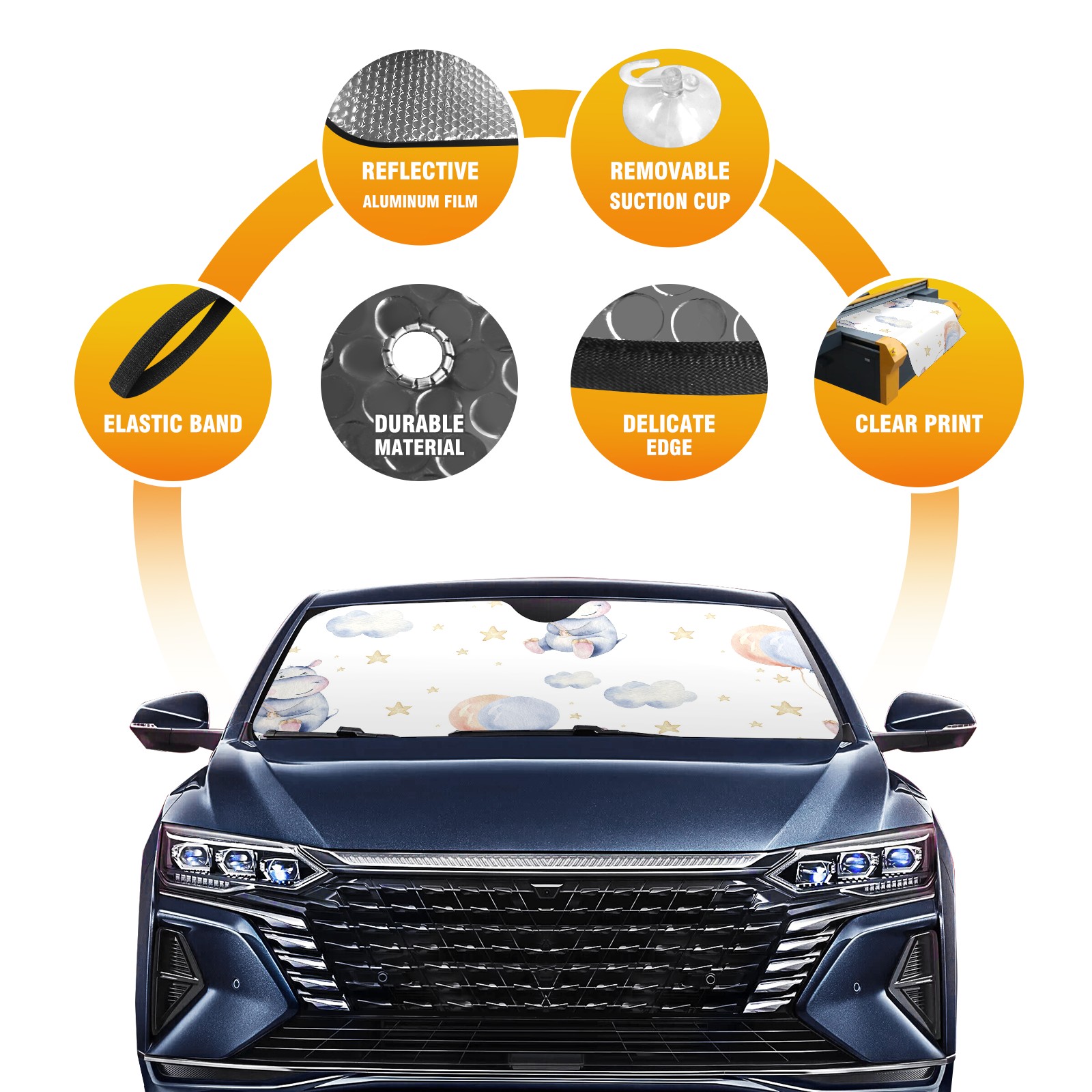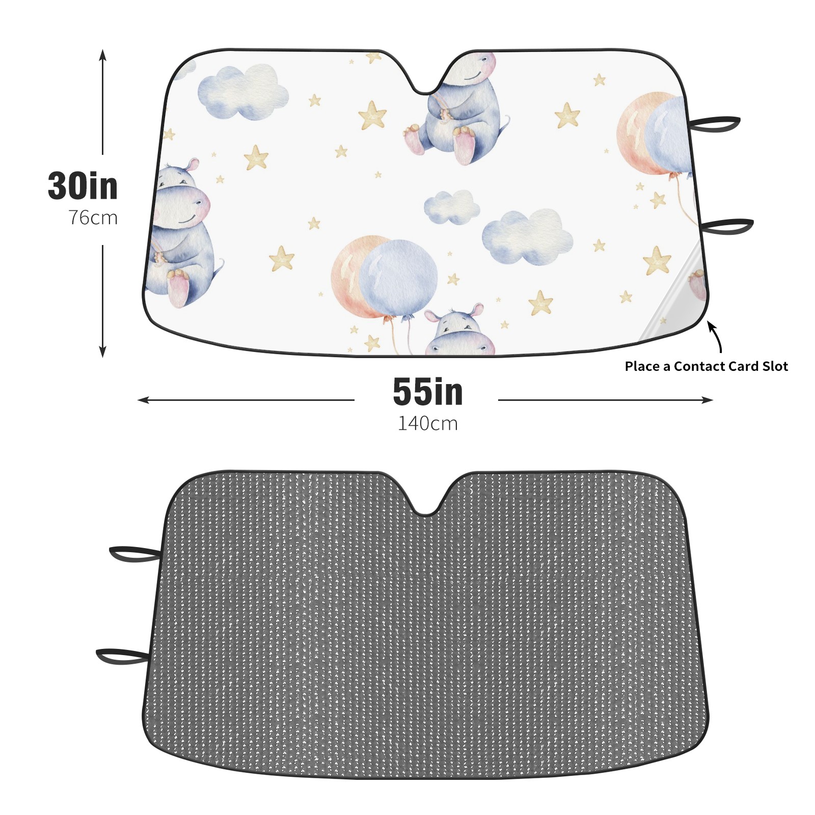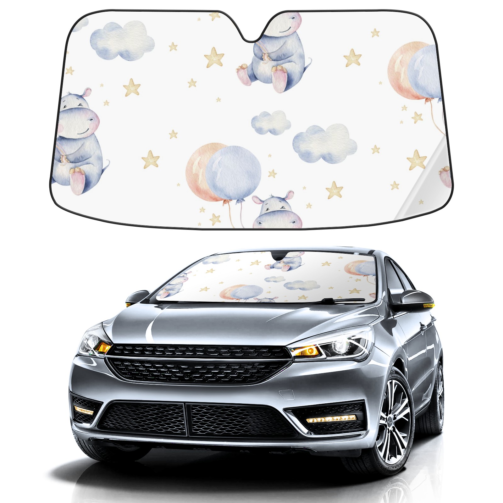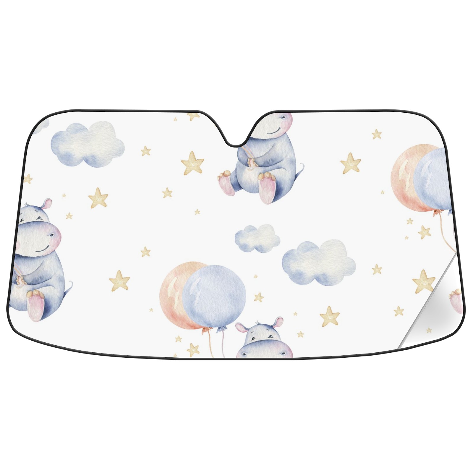 Car Windshield Sun Shade For Front Window Cute Hippo Balloon Stars Foldable Vehicle Windshield Car Sun Visor Covers Automotive Window Protector Car Camping Privacy Sun Blocker